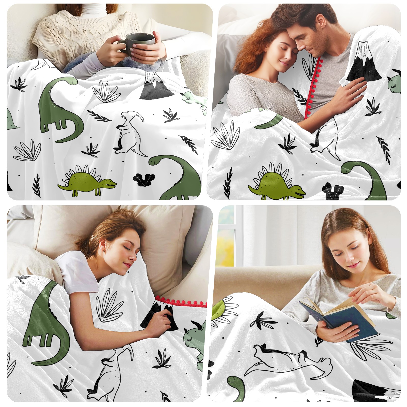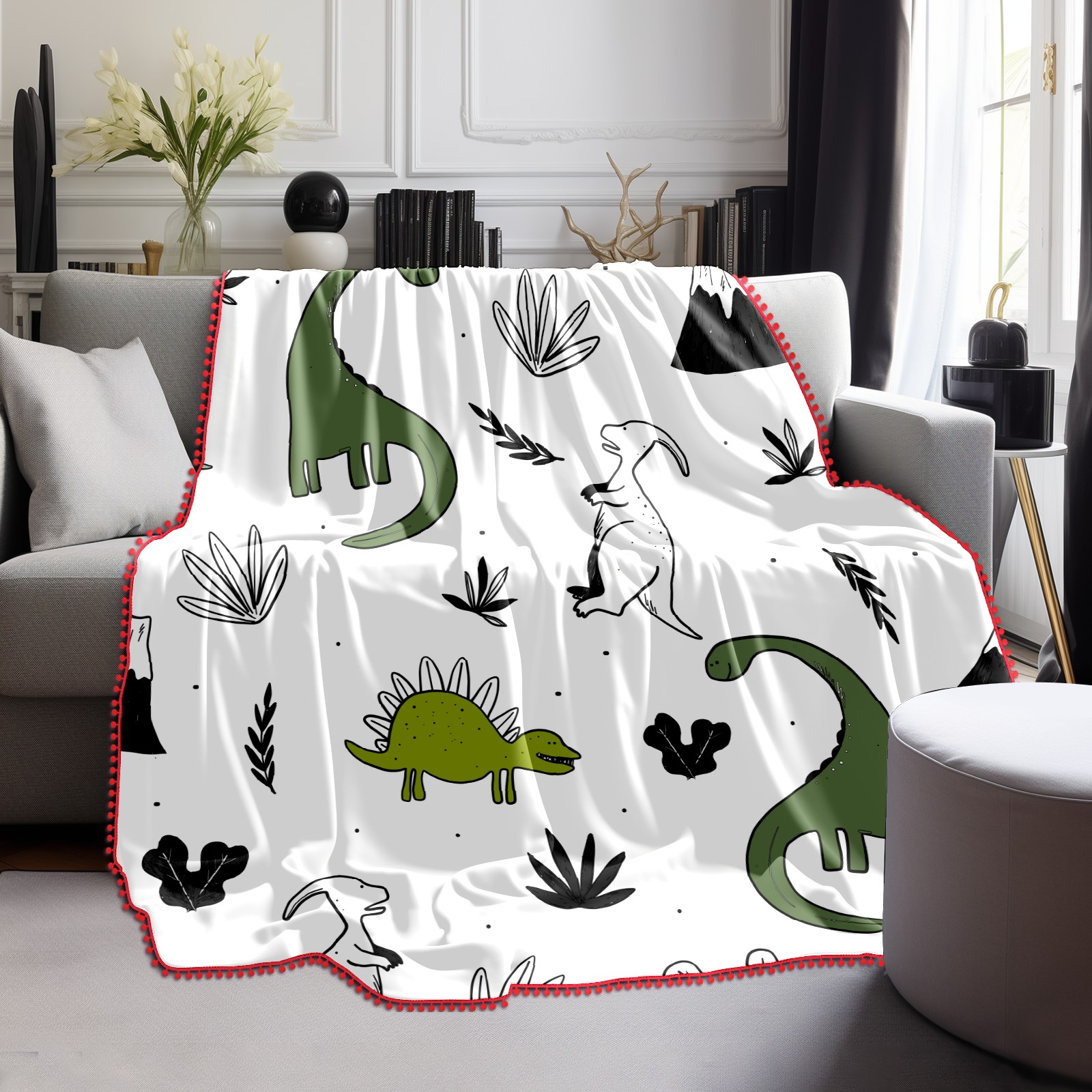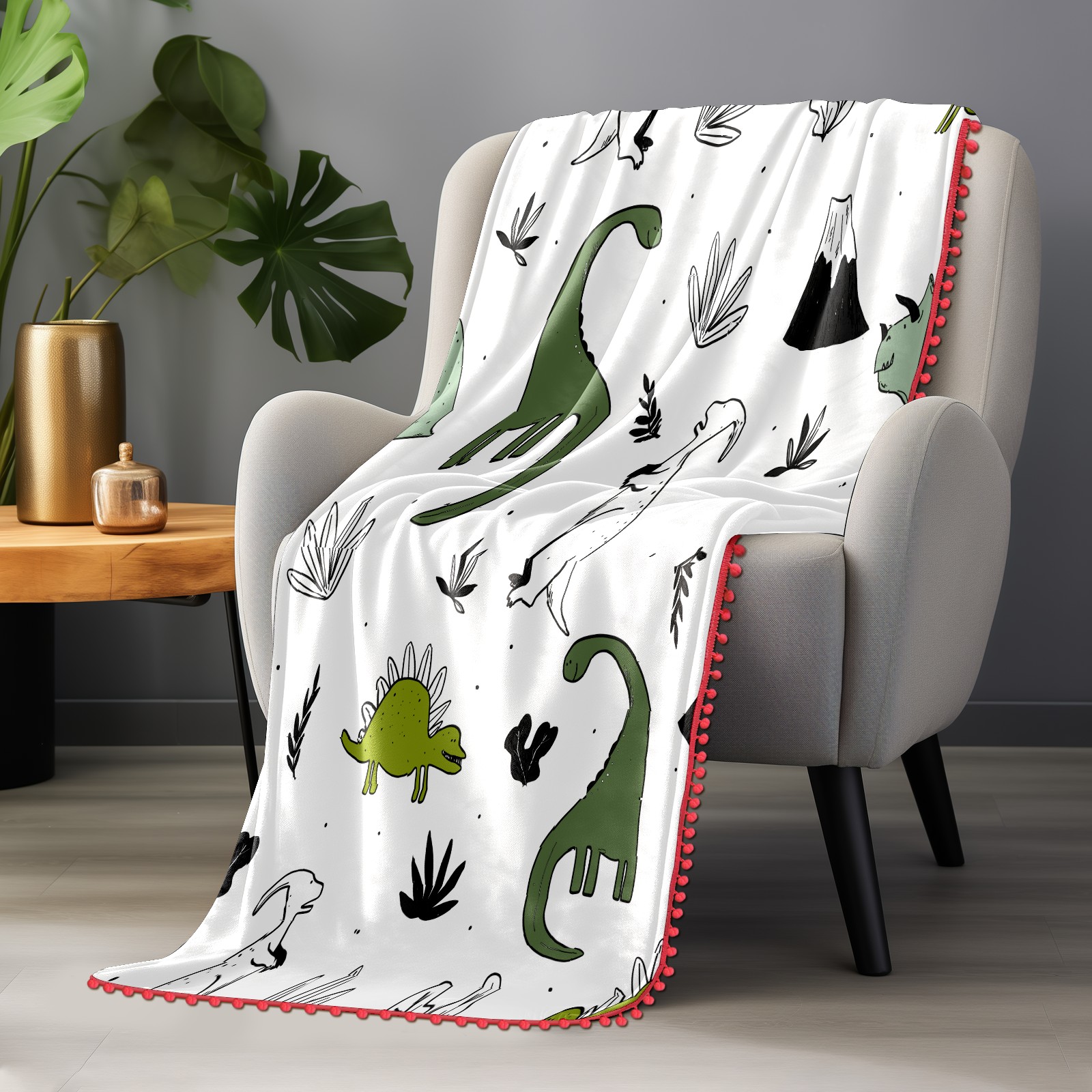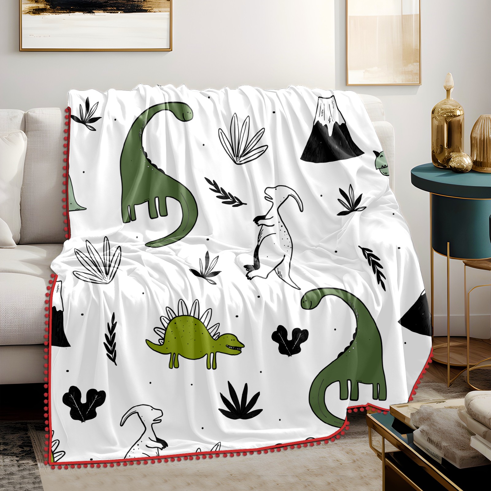 流苏毛毯 Hand Drawn Cute Dinosaur
