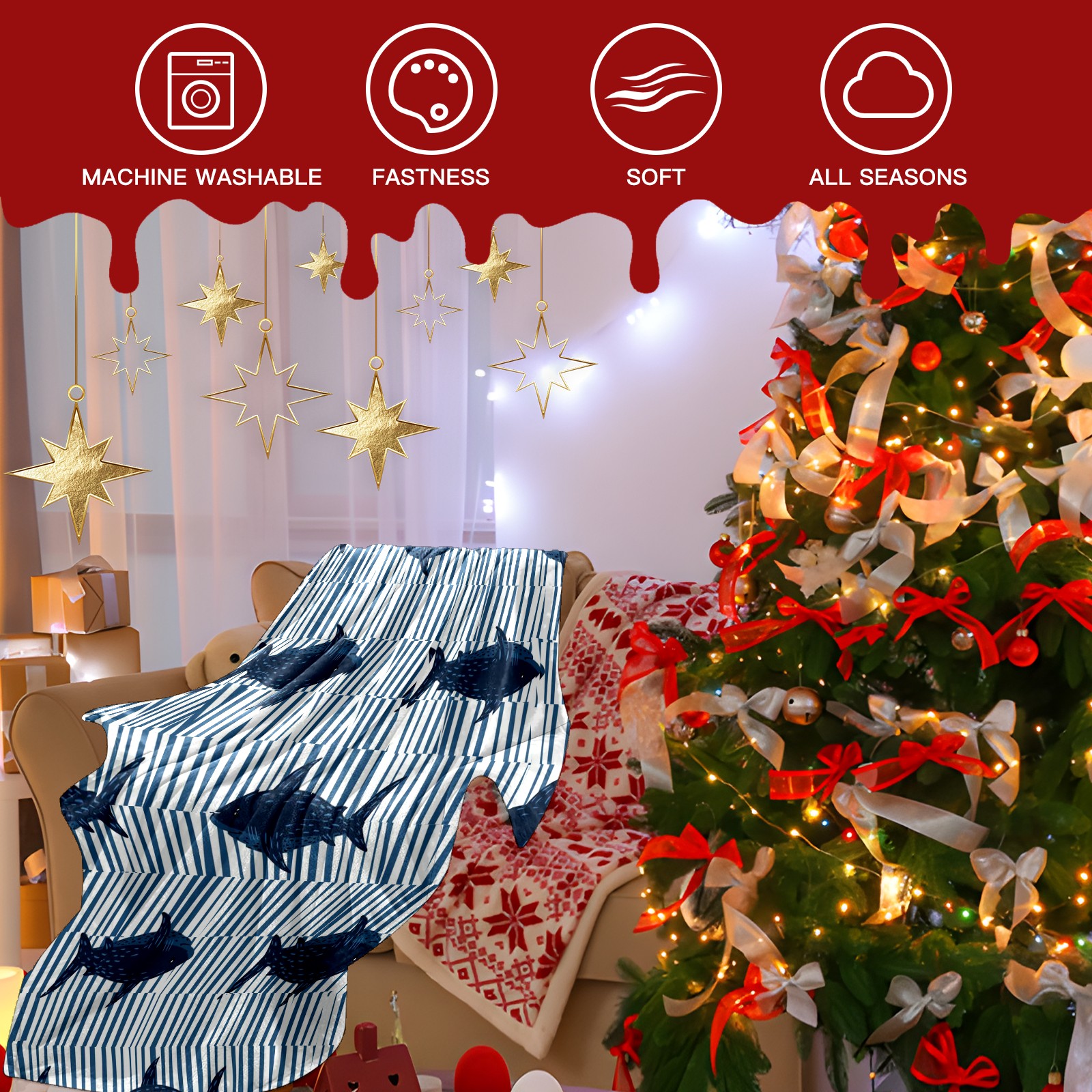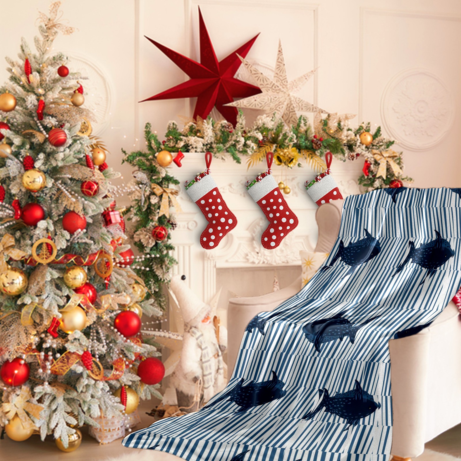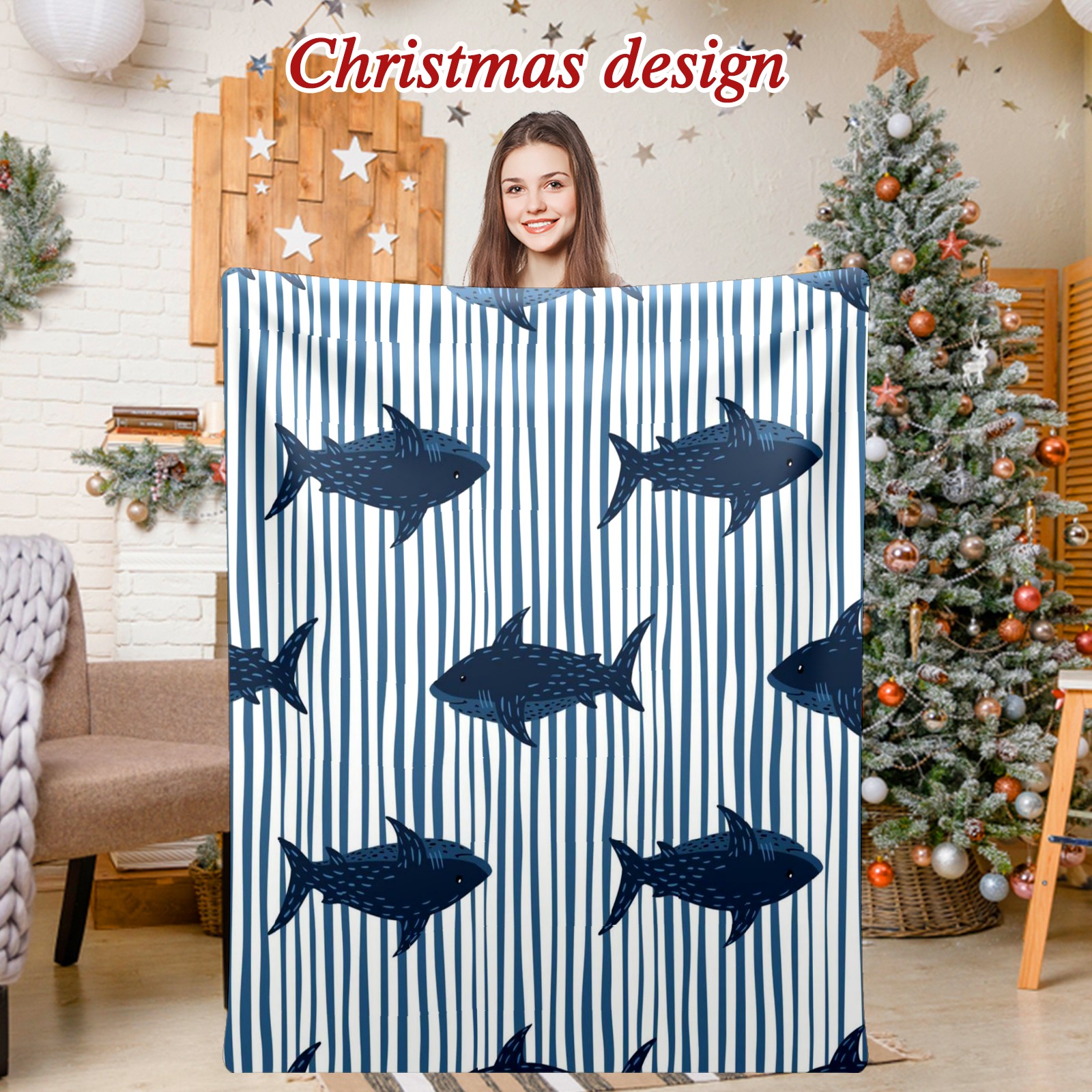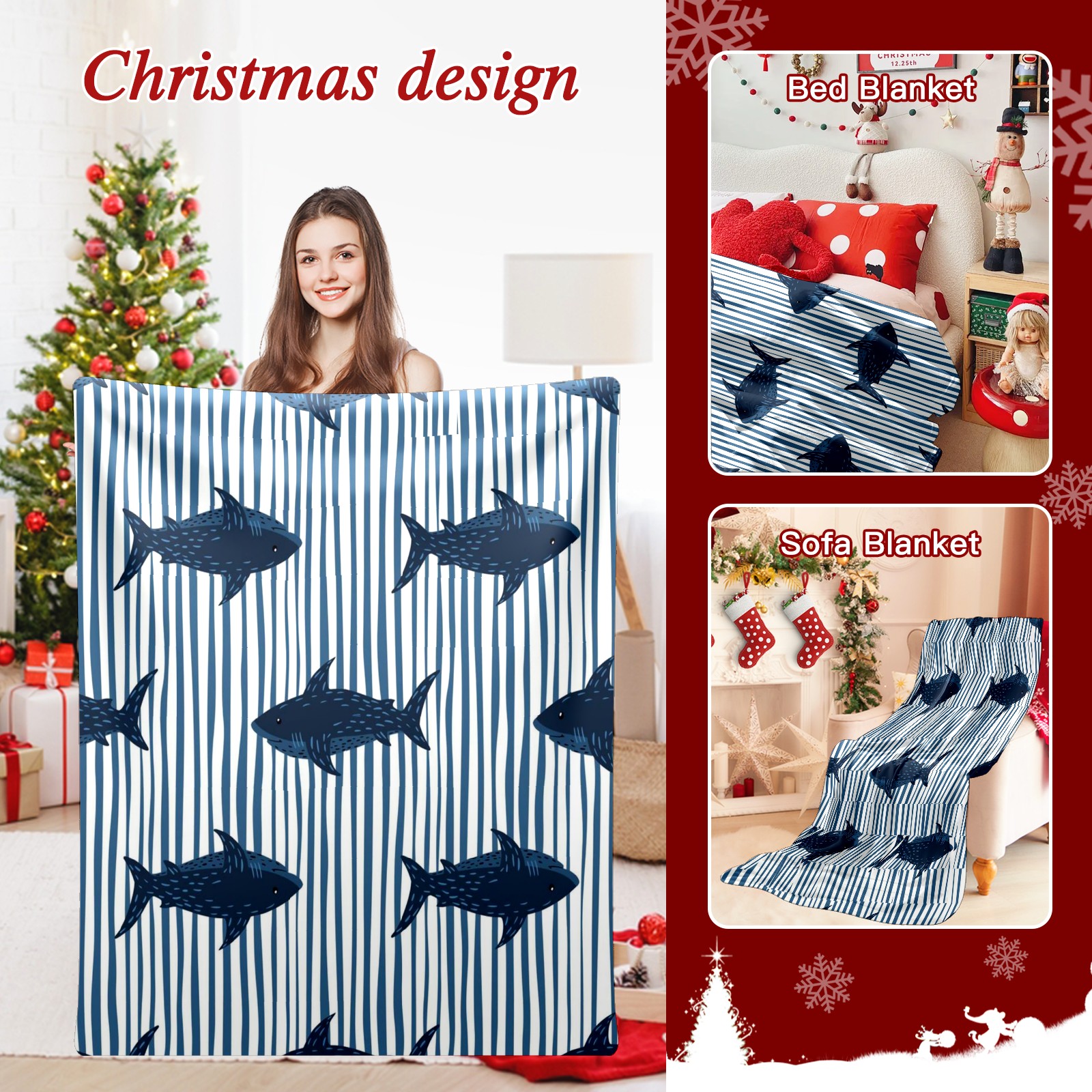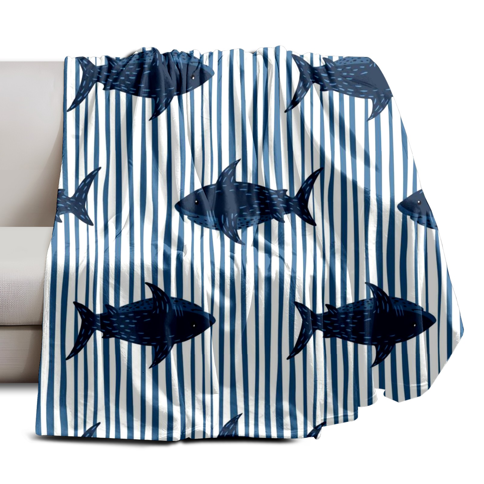 Премиальная фланелевая одеяло Navy Blue Shark Stripe