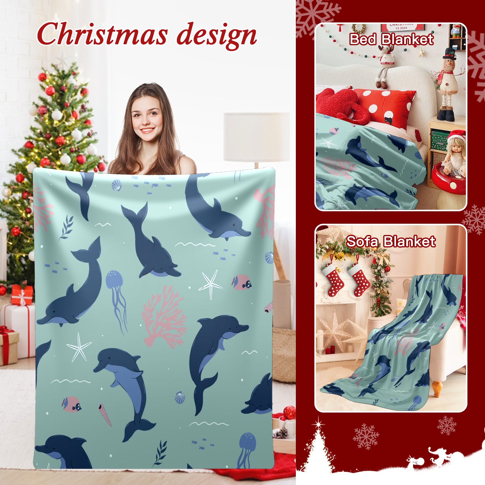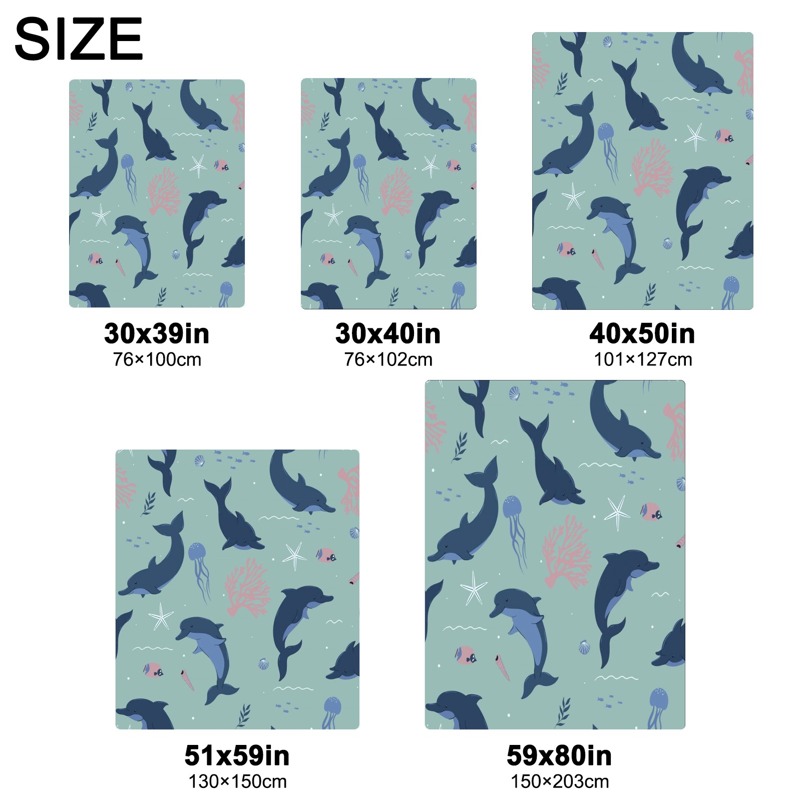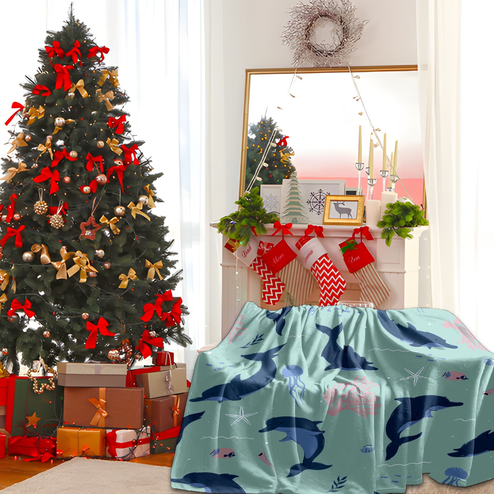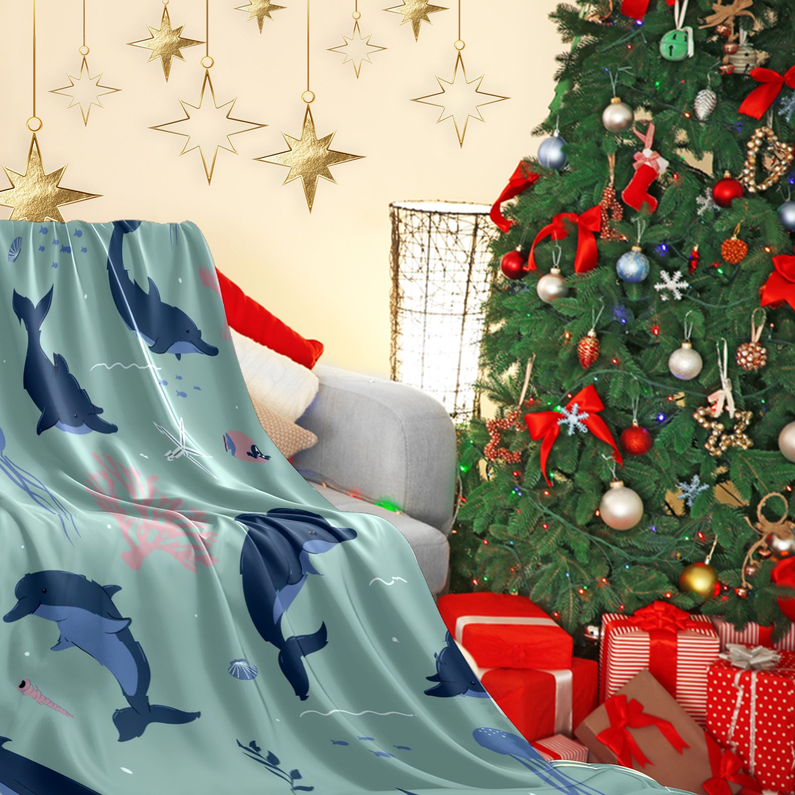 Премиальная фланелевая одеяло Navy Blue Dolphins