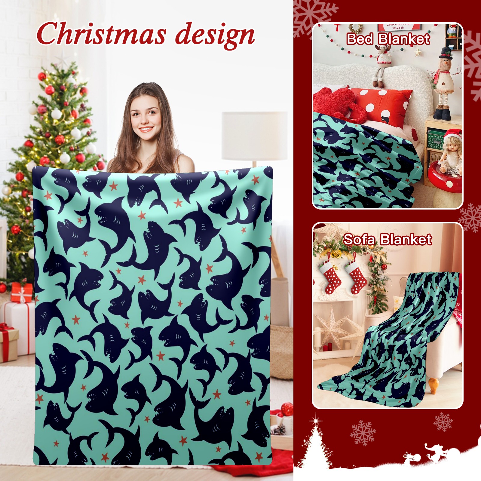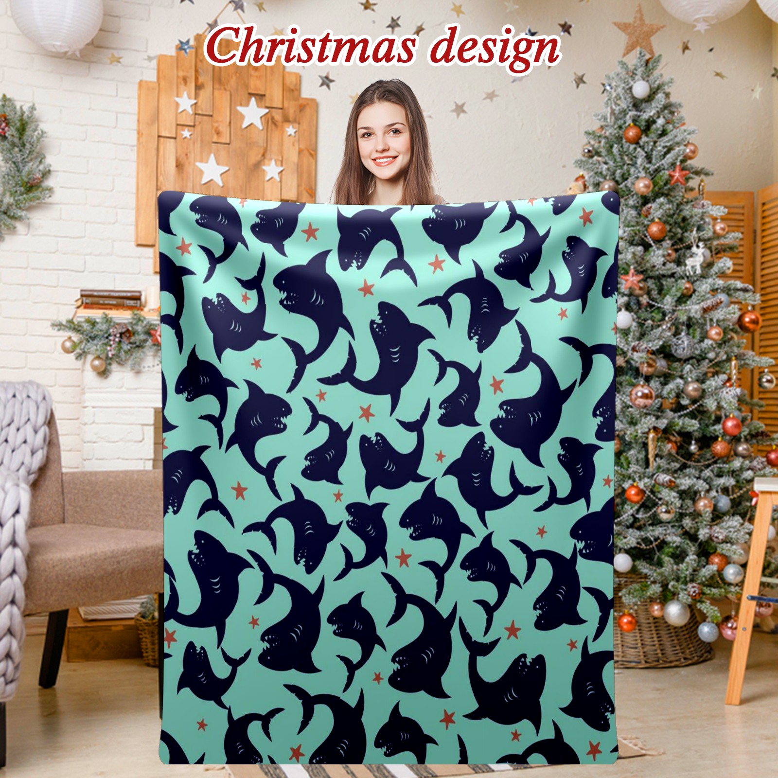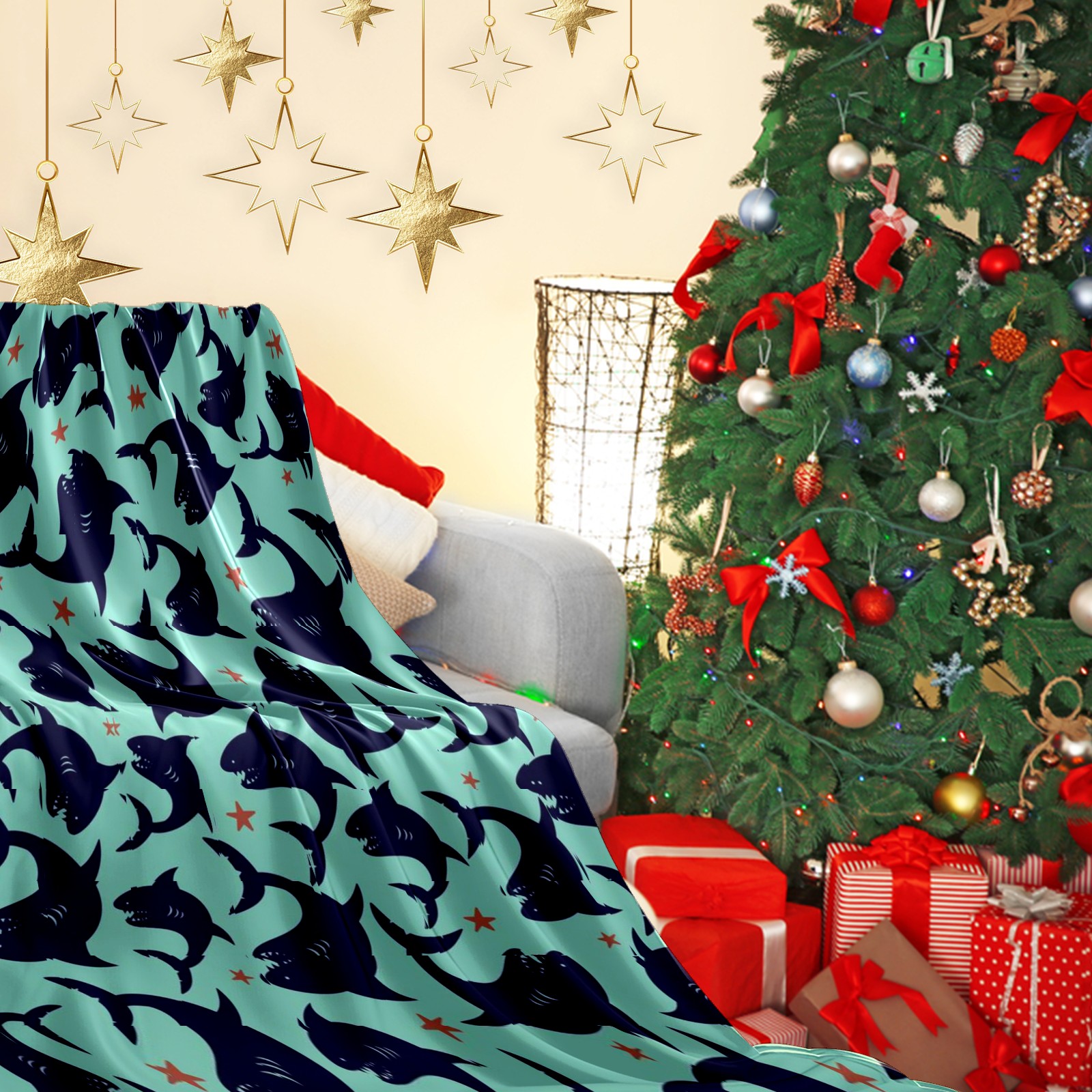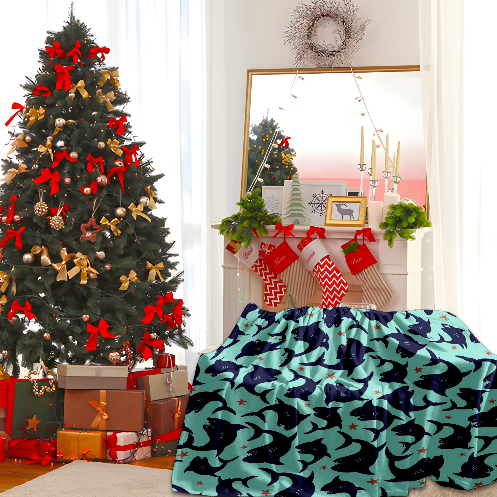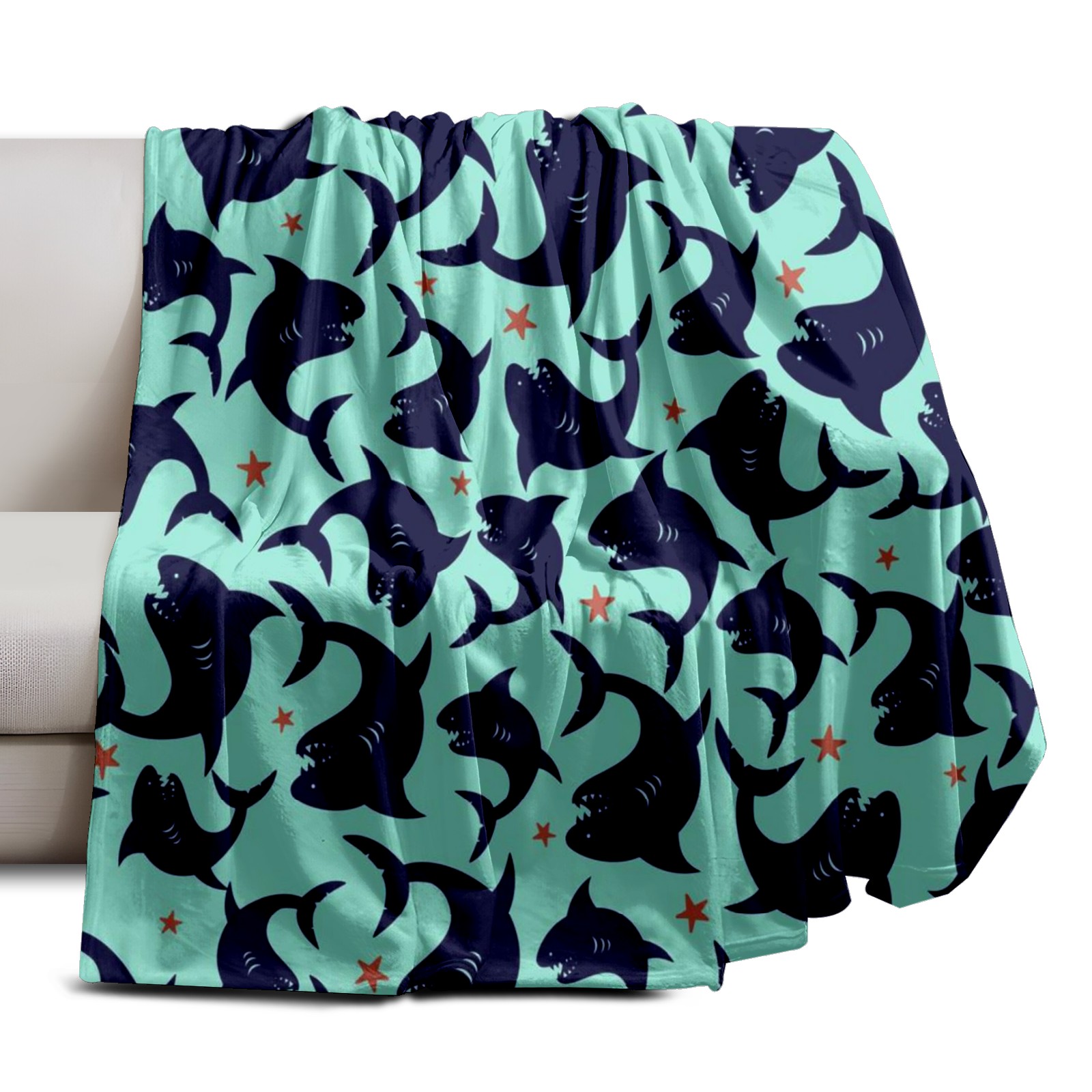 Премиальная фланелевая одеяло Green Dark Shark Star