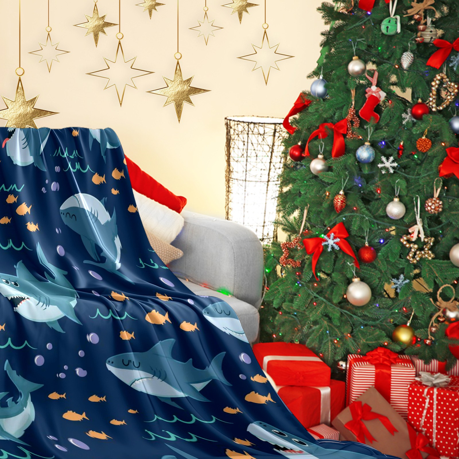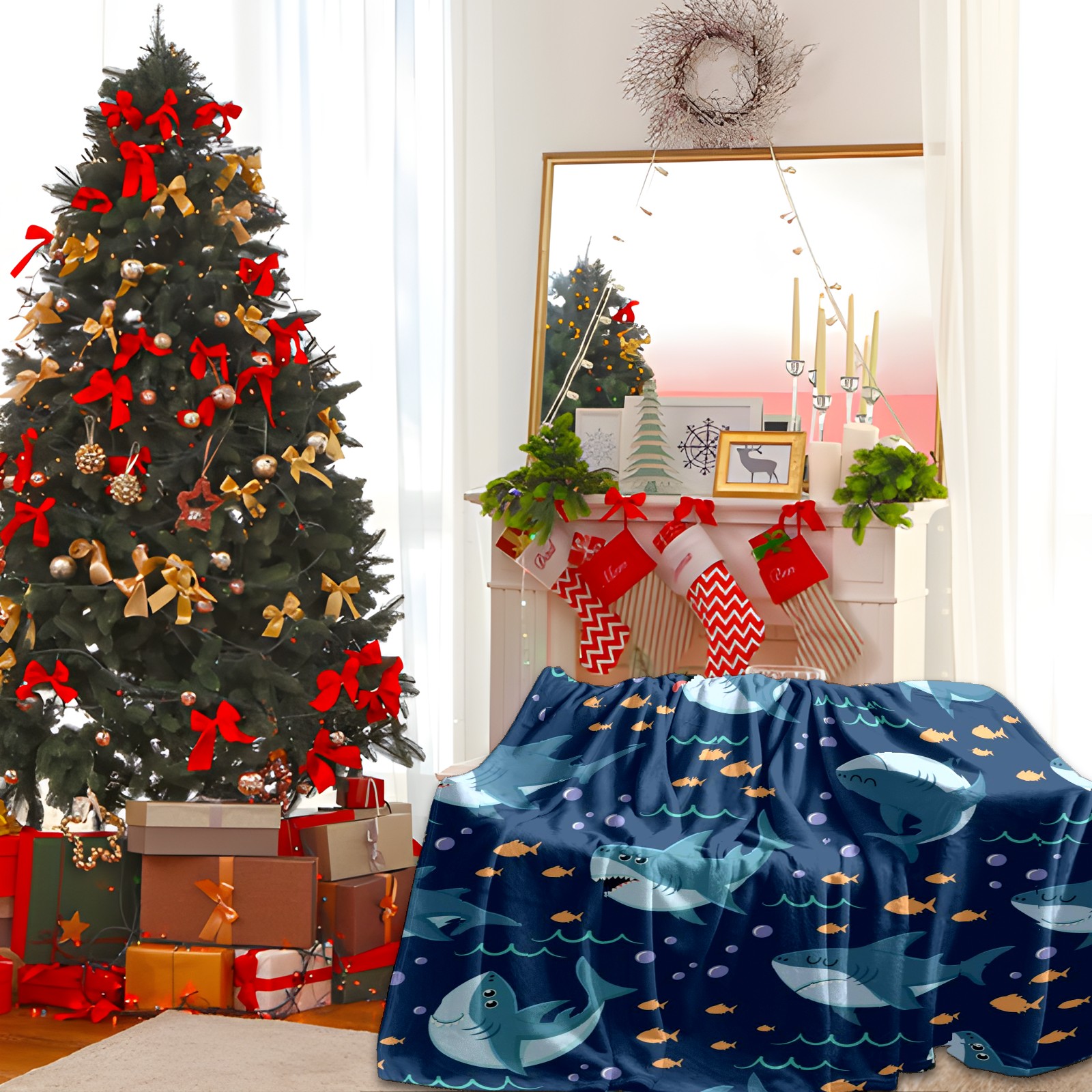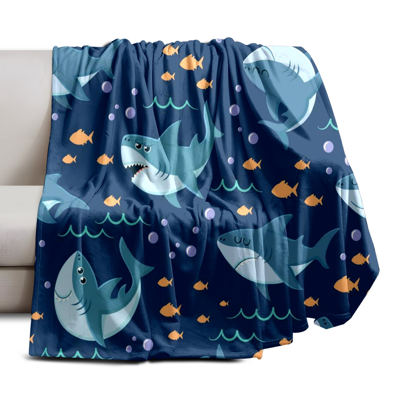 Премиальная фланелевая одеяло Dark Blue Sharks Fishes
