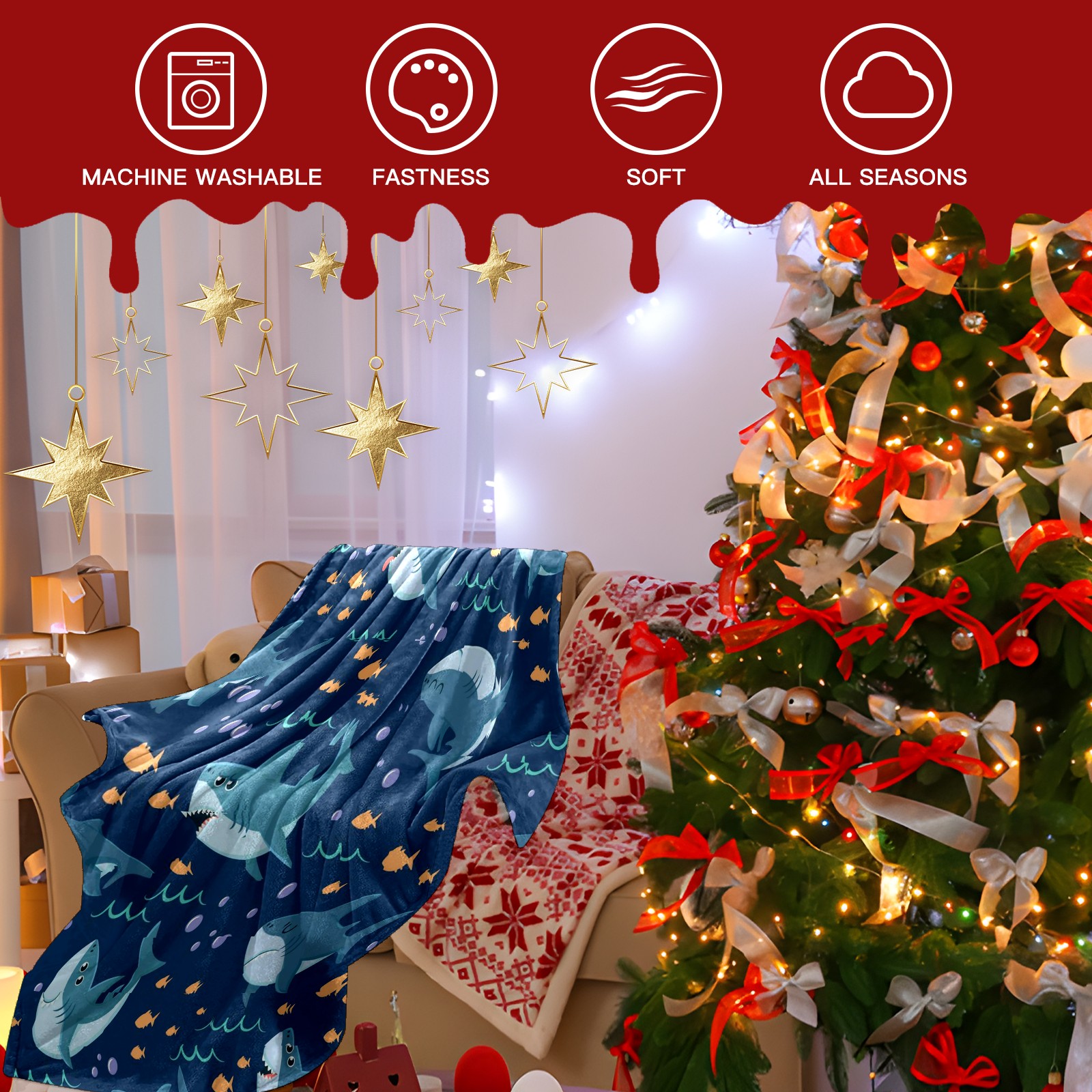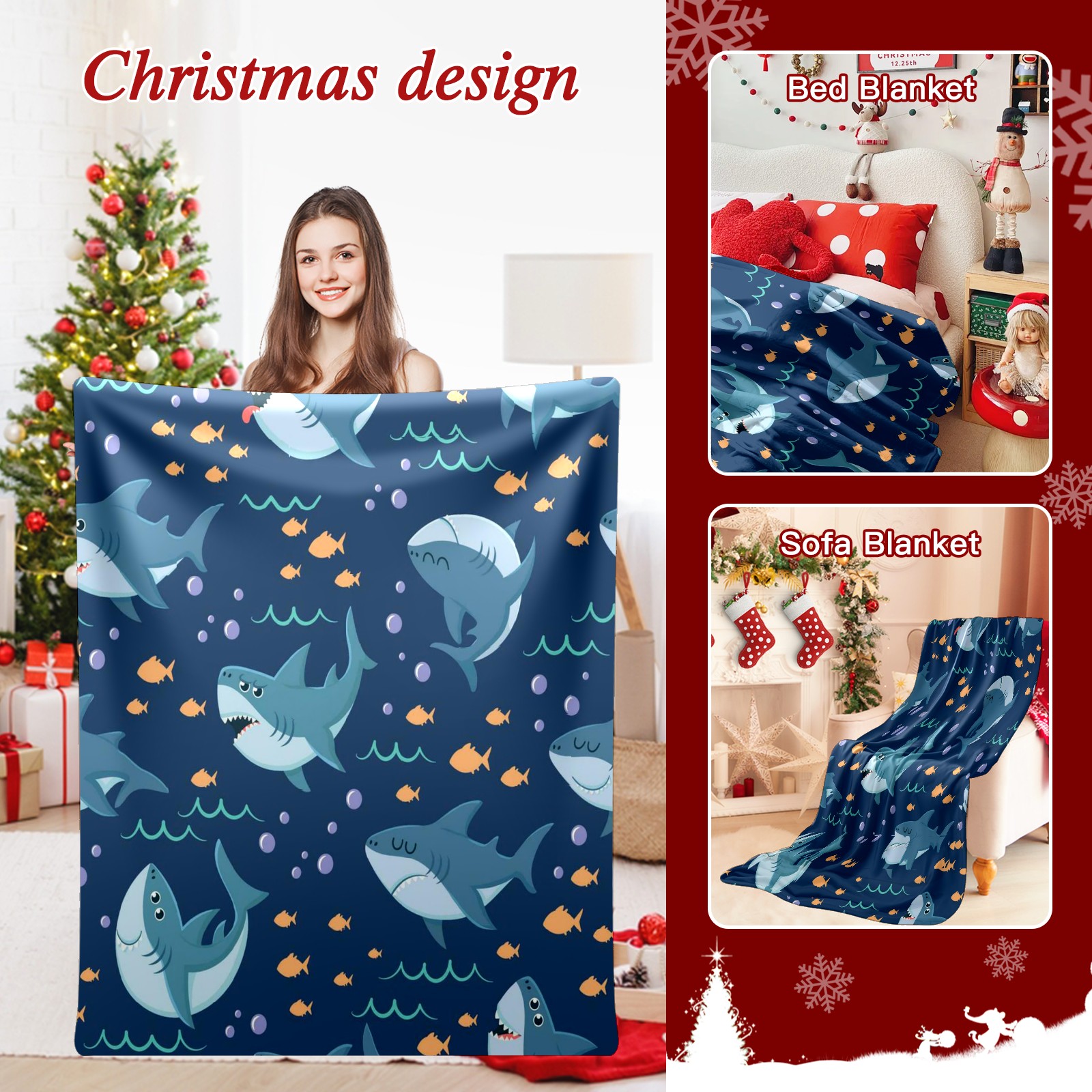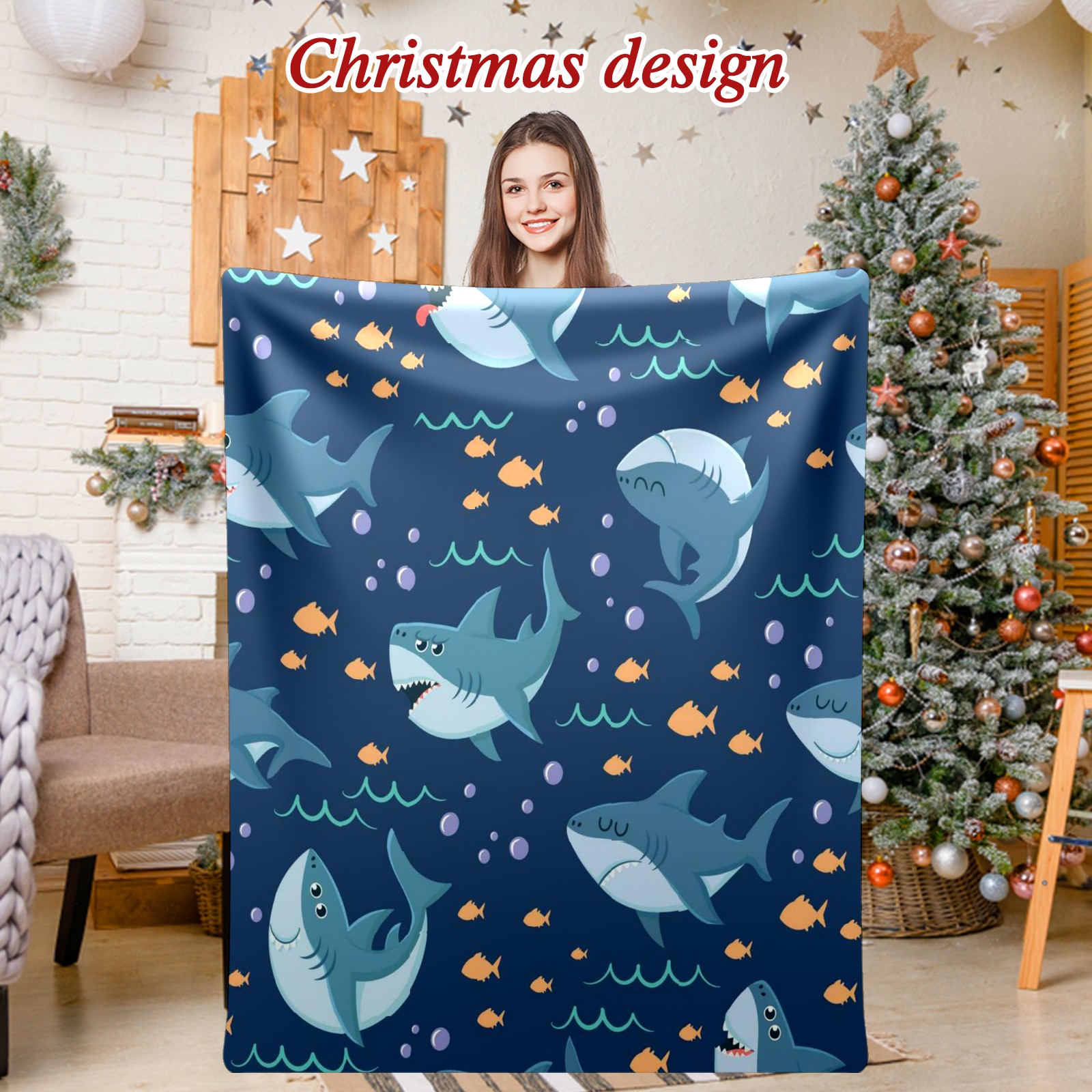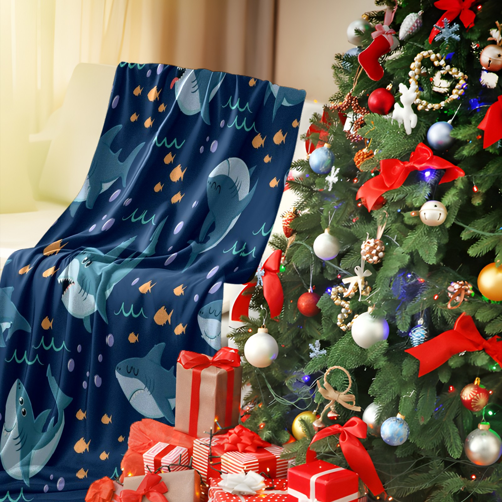 Премиальная фланелевая одеяло Dark Blue Sharks Fishes