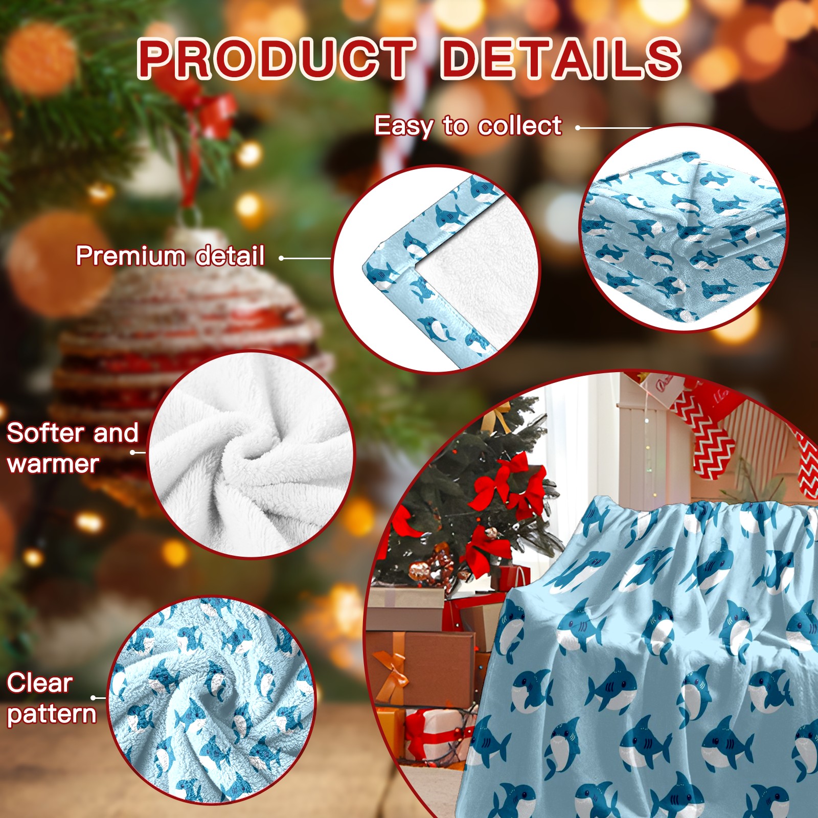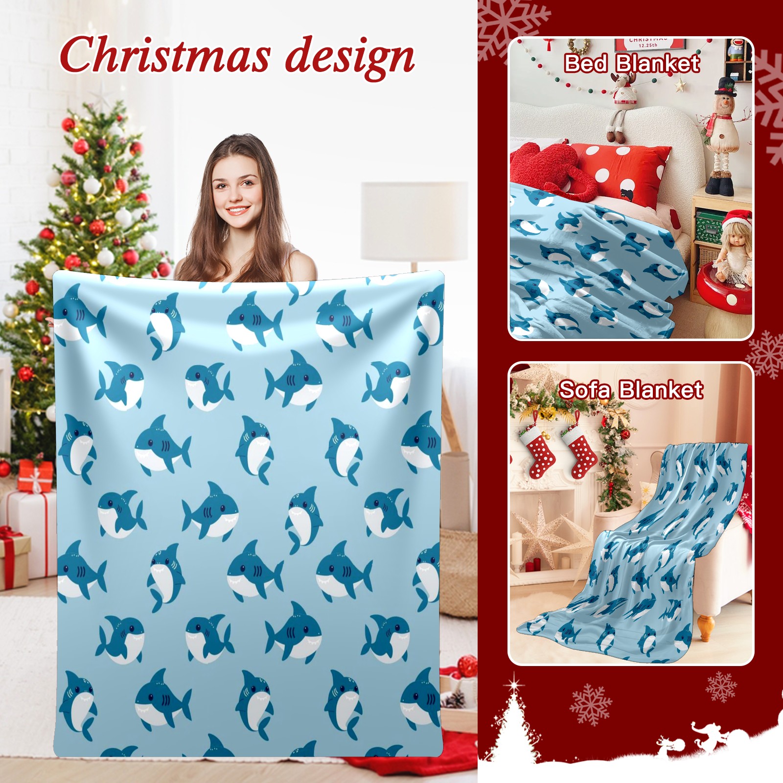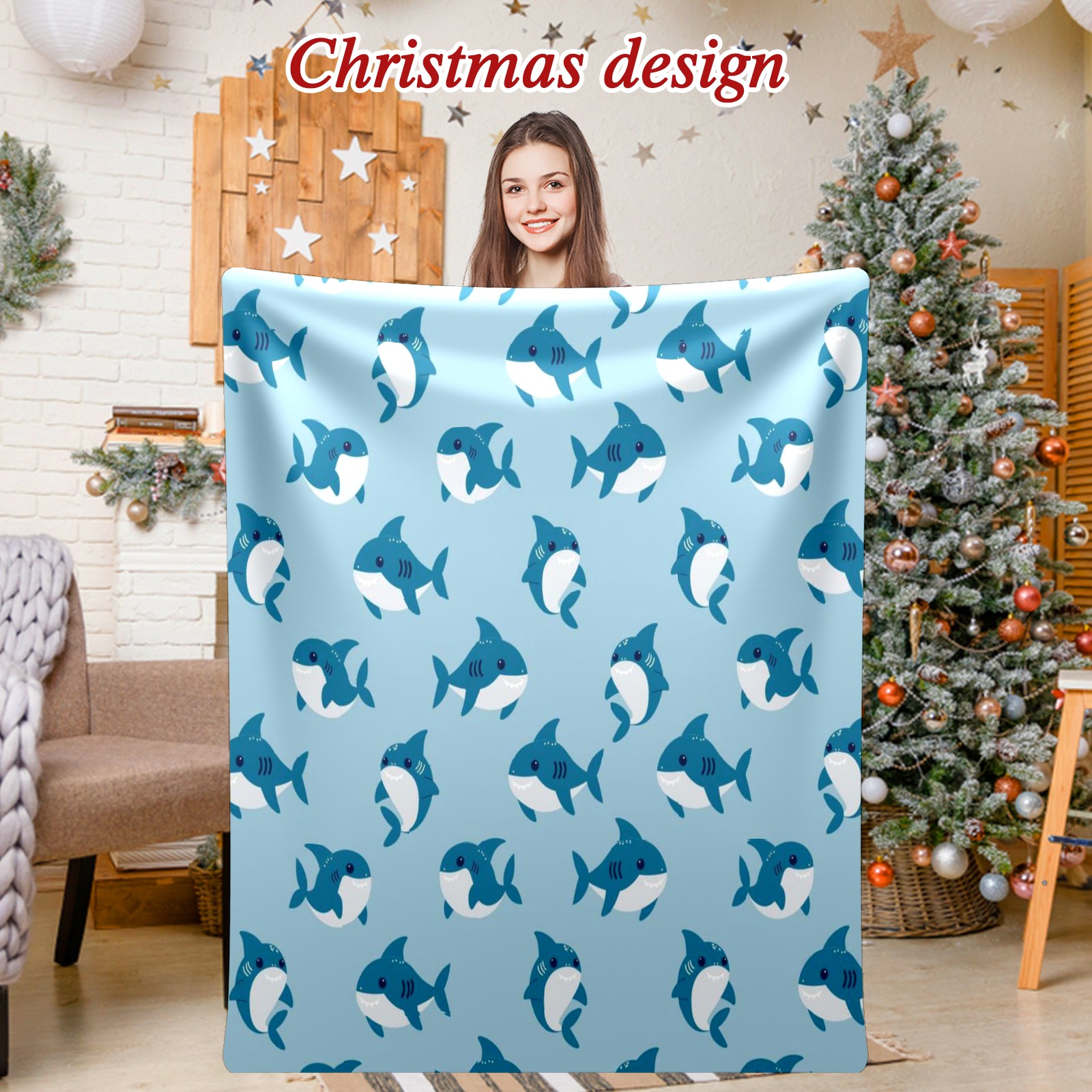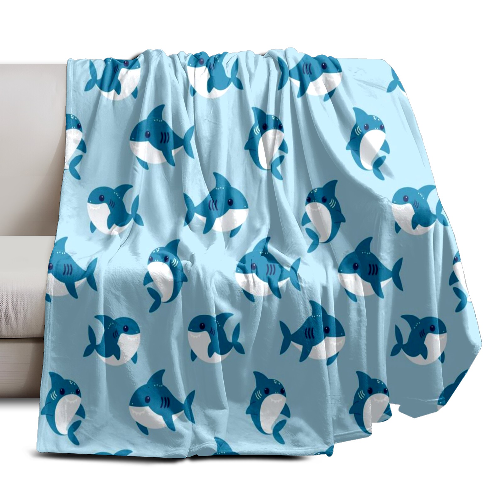 Премиальная фланелевая одеяло Blue Sharks Print