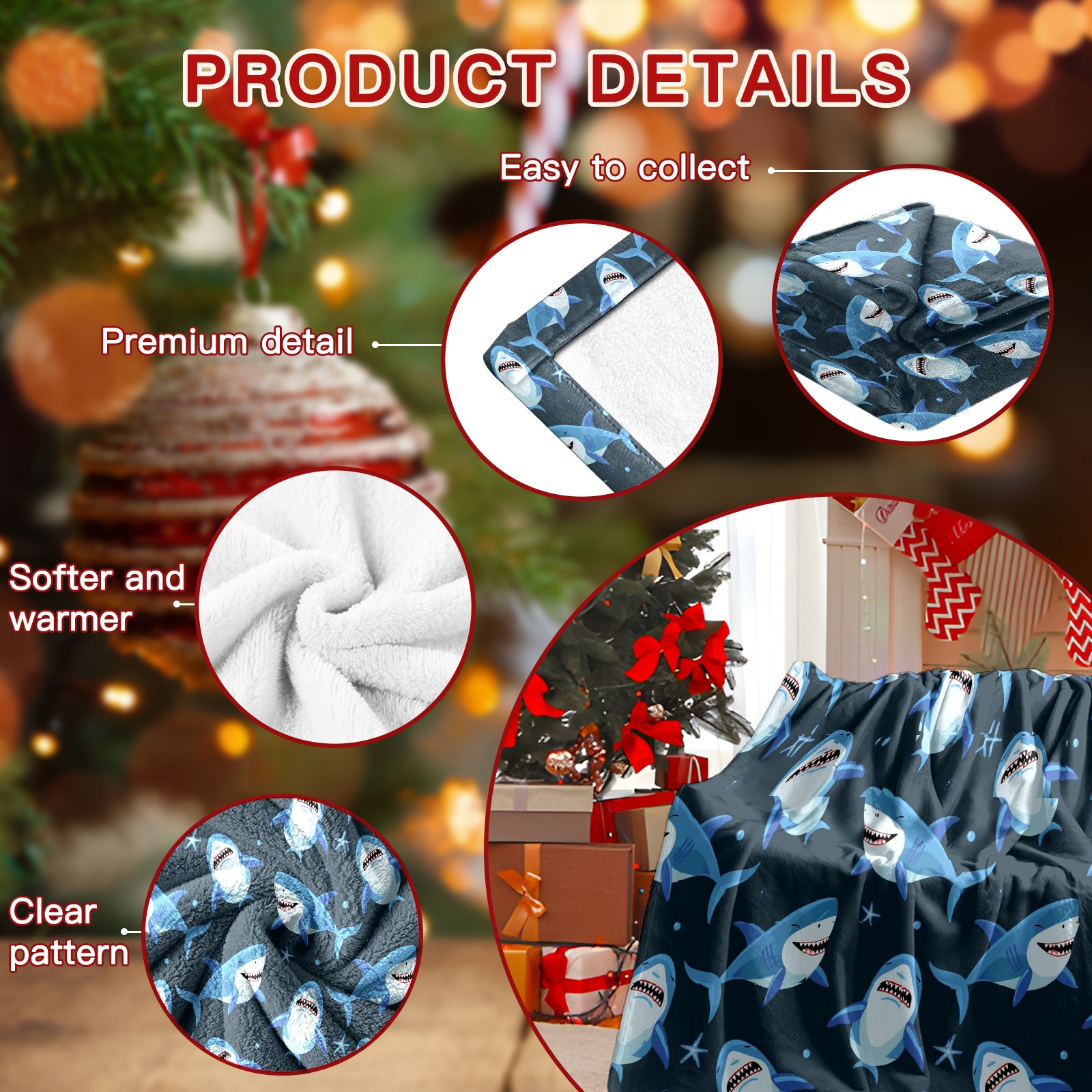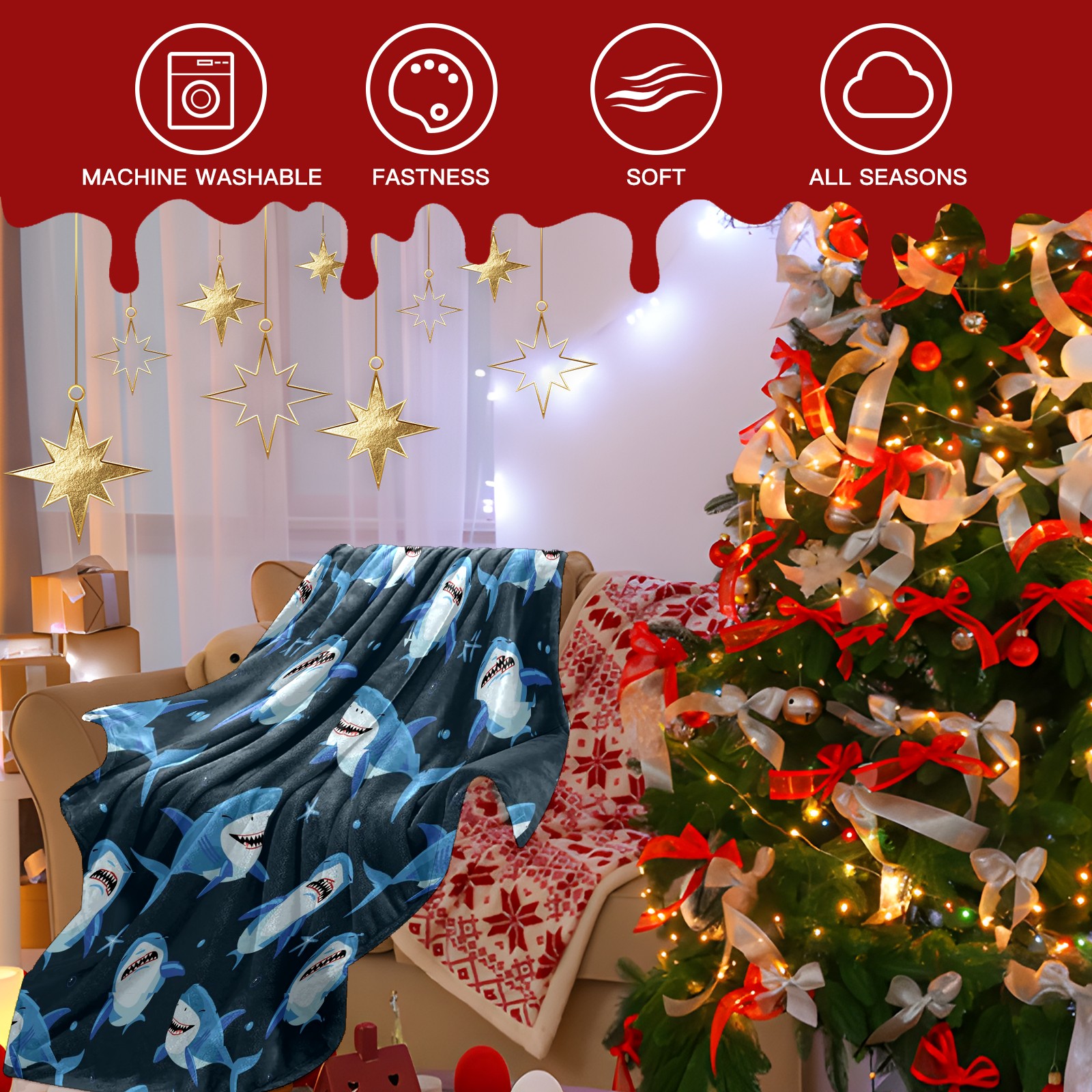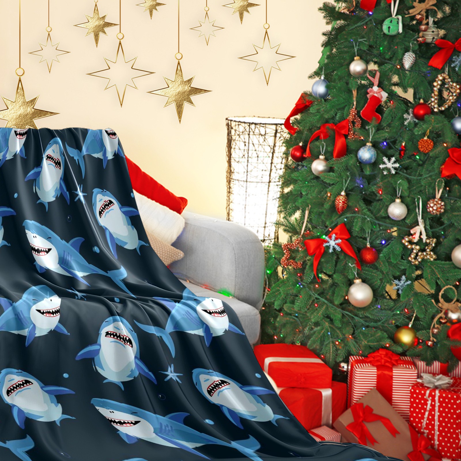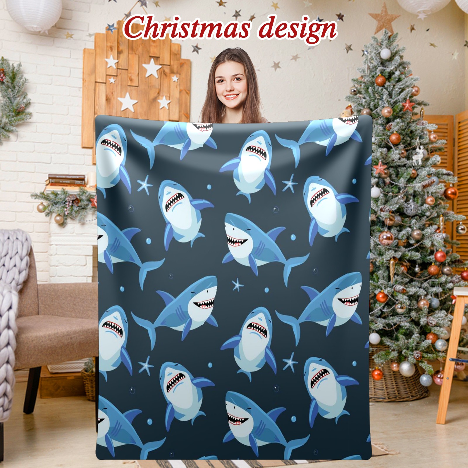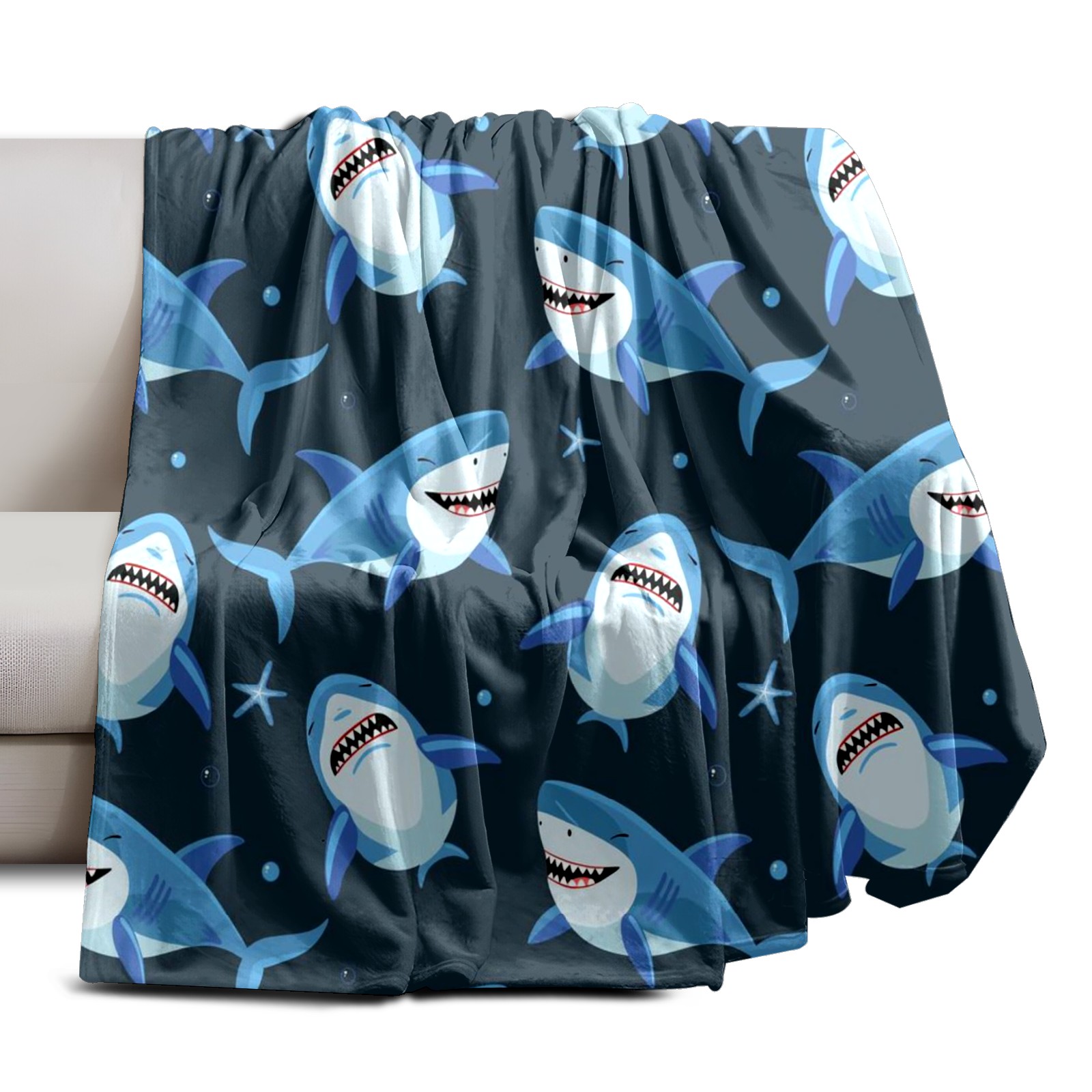 Премиальная фланелевая одеяло Blue Shark Fishes
