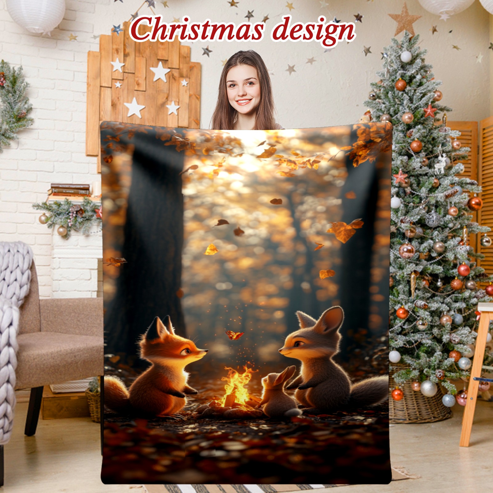 Премиальная фланелевая одеяло Fox Rabbit Pattern