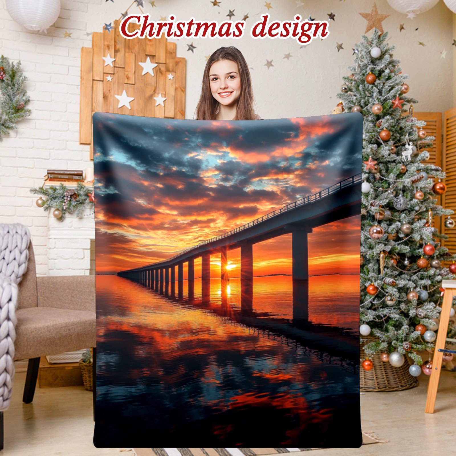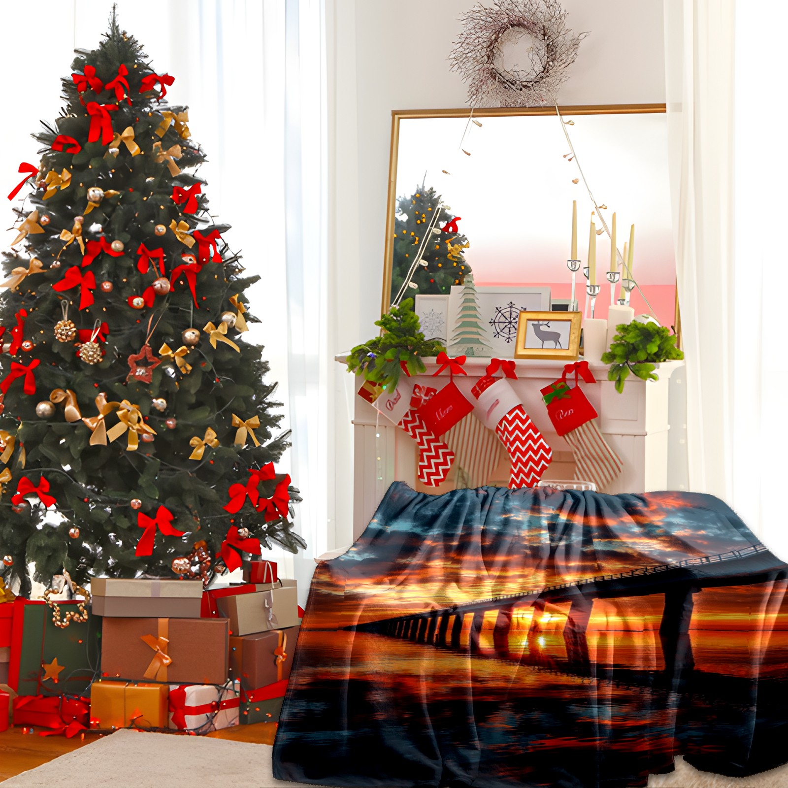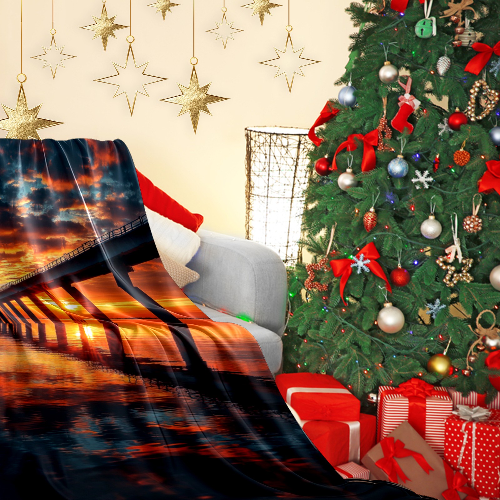 Премиальная фланелевая одеяло Sunset Pattern