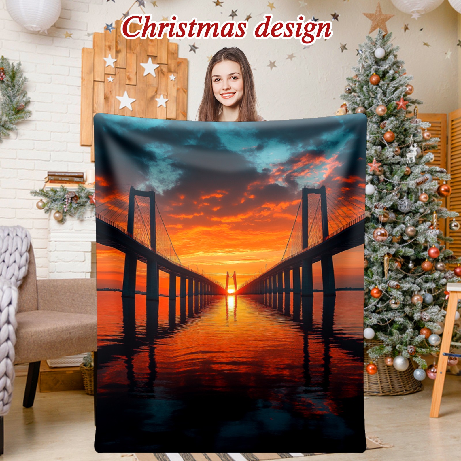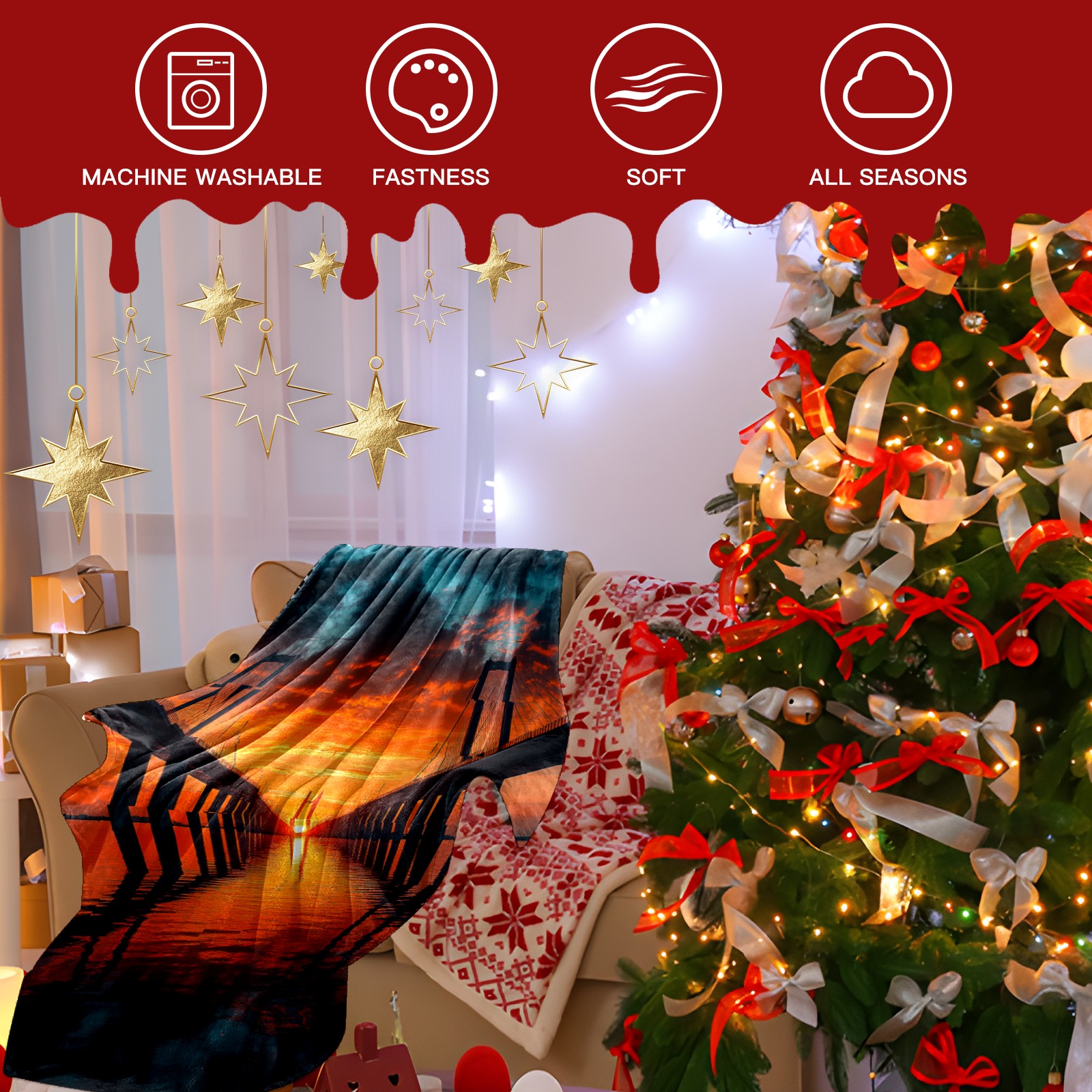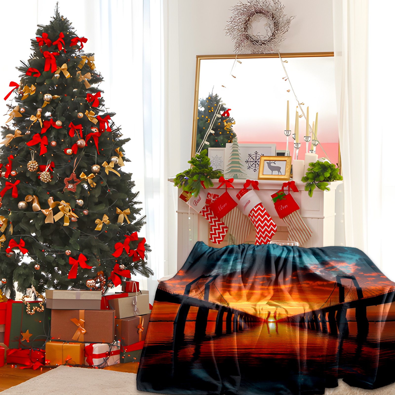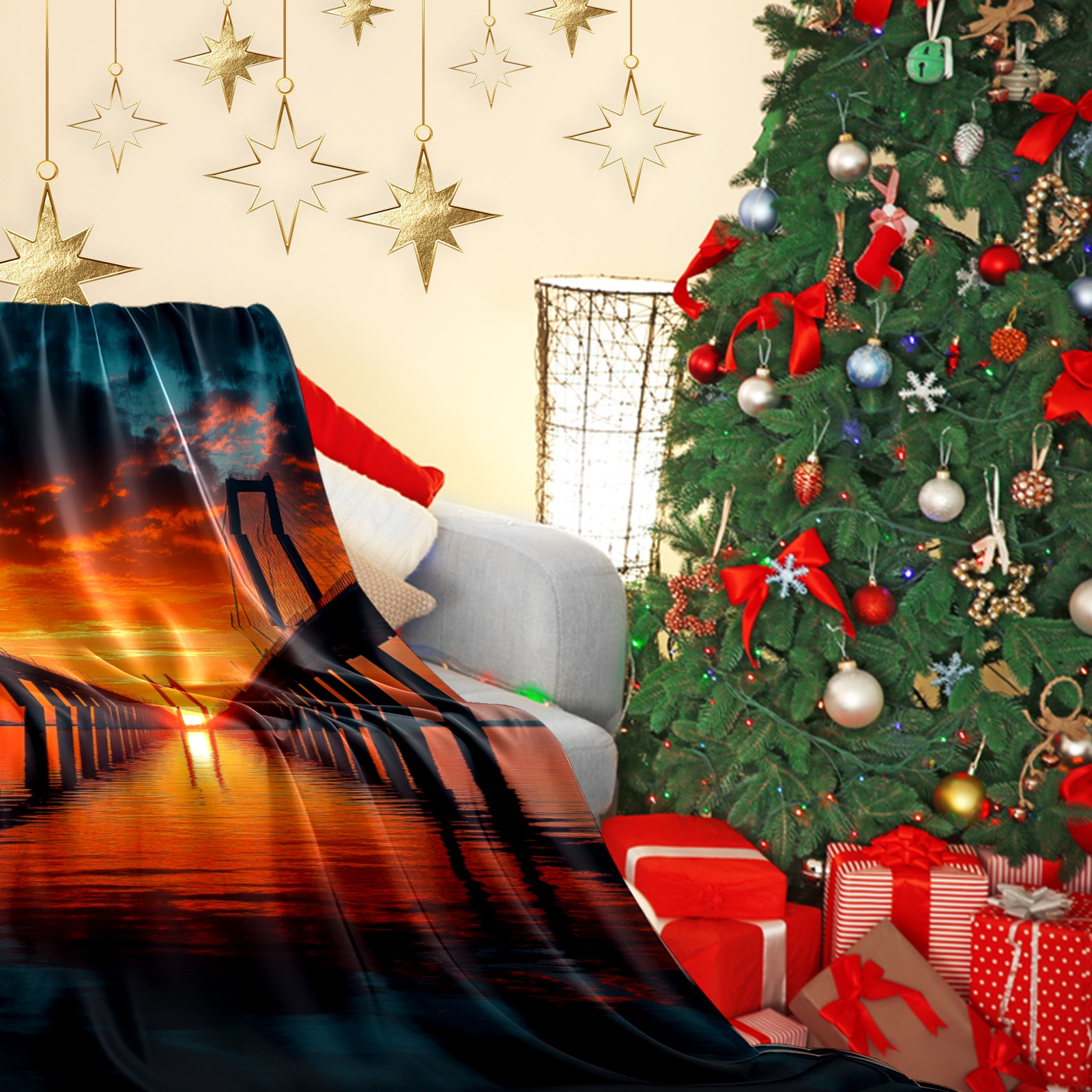 Премиальная фланелевая одеяло Sunset Pattern