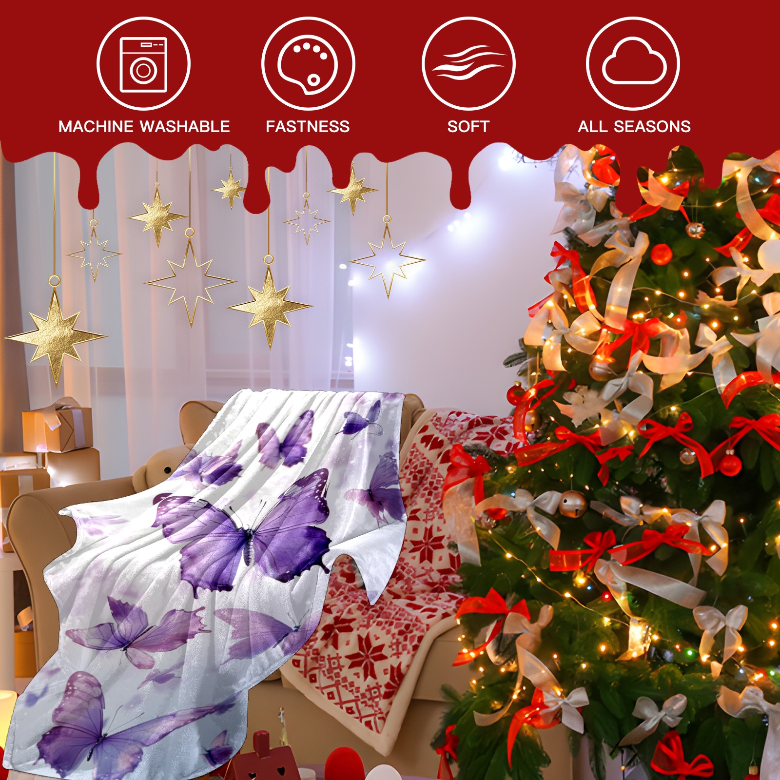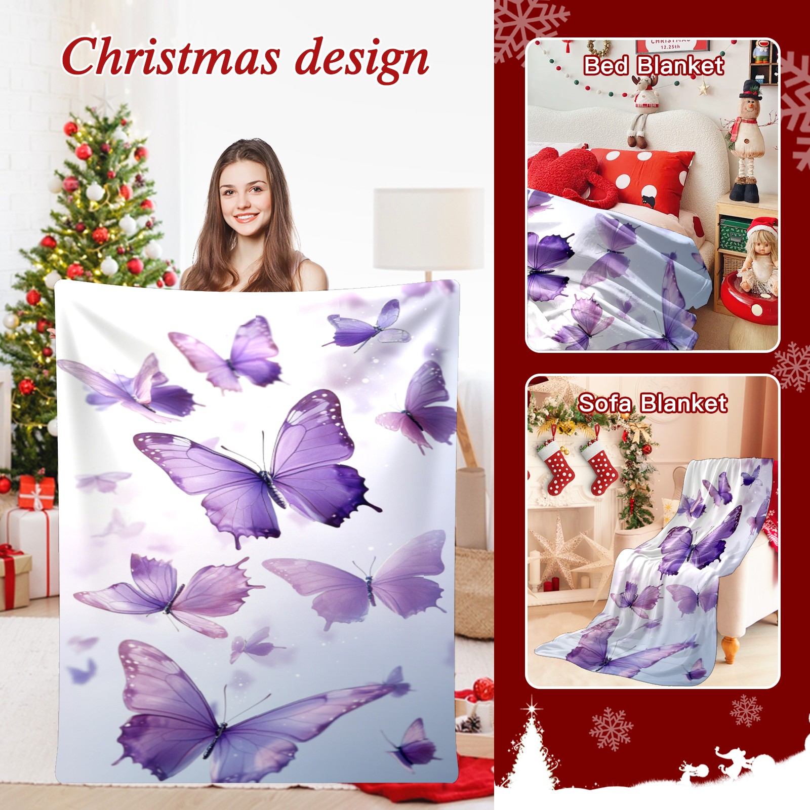 Премиальная фланелевая одеяло Purple Butterfly Pattern
