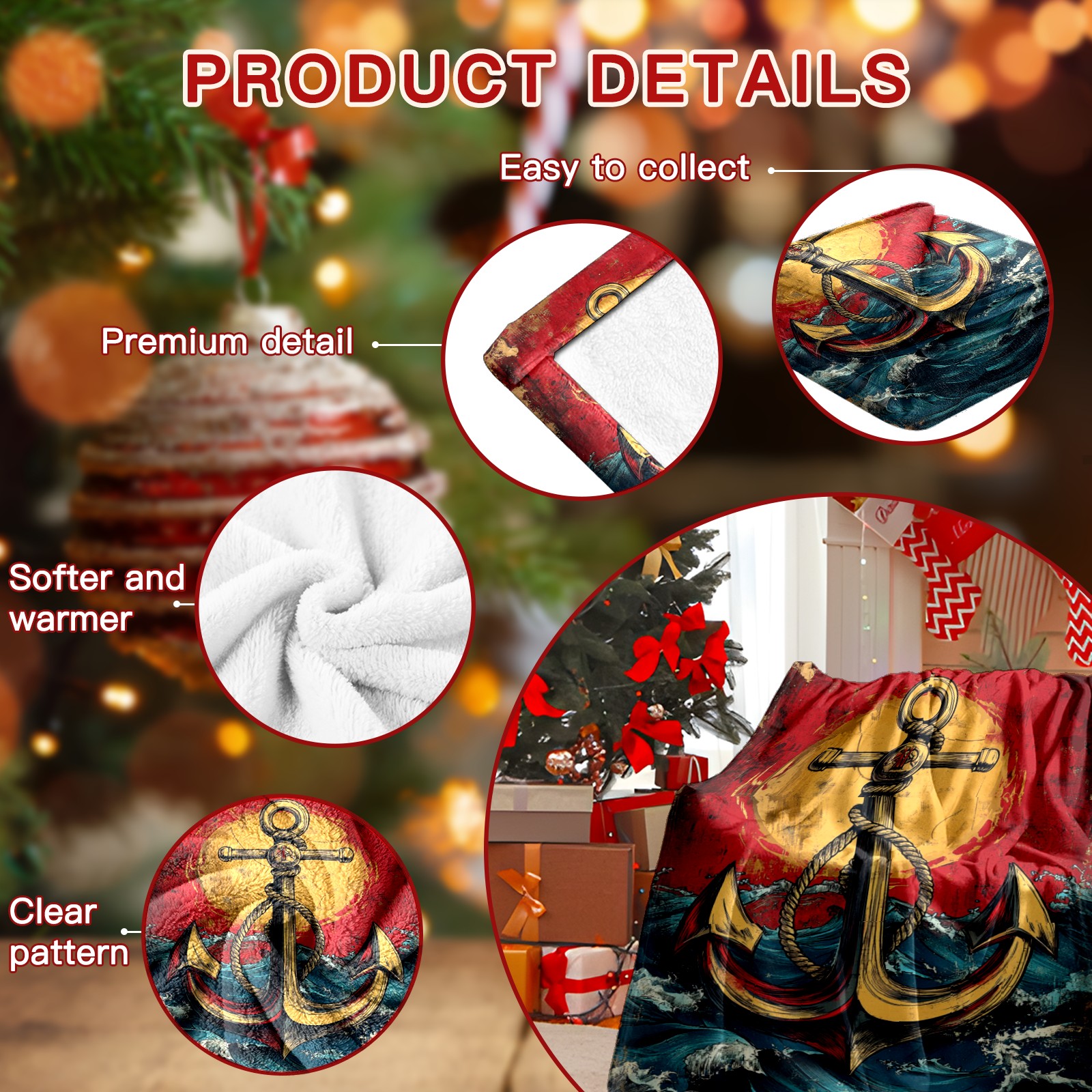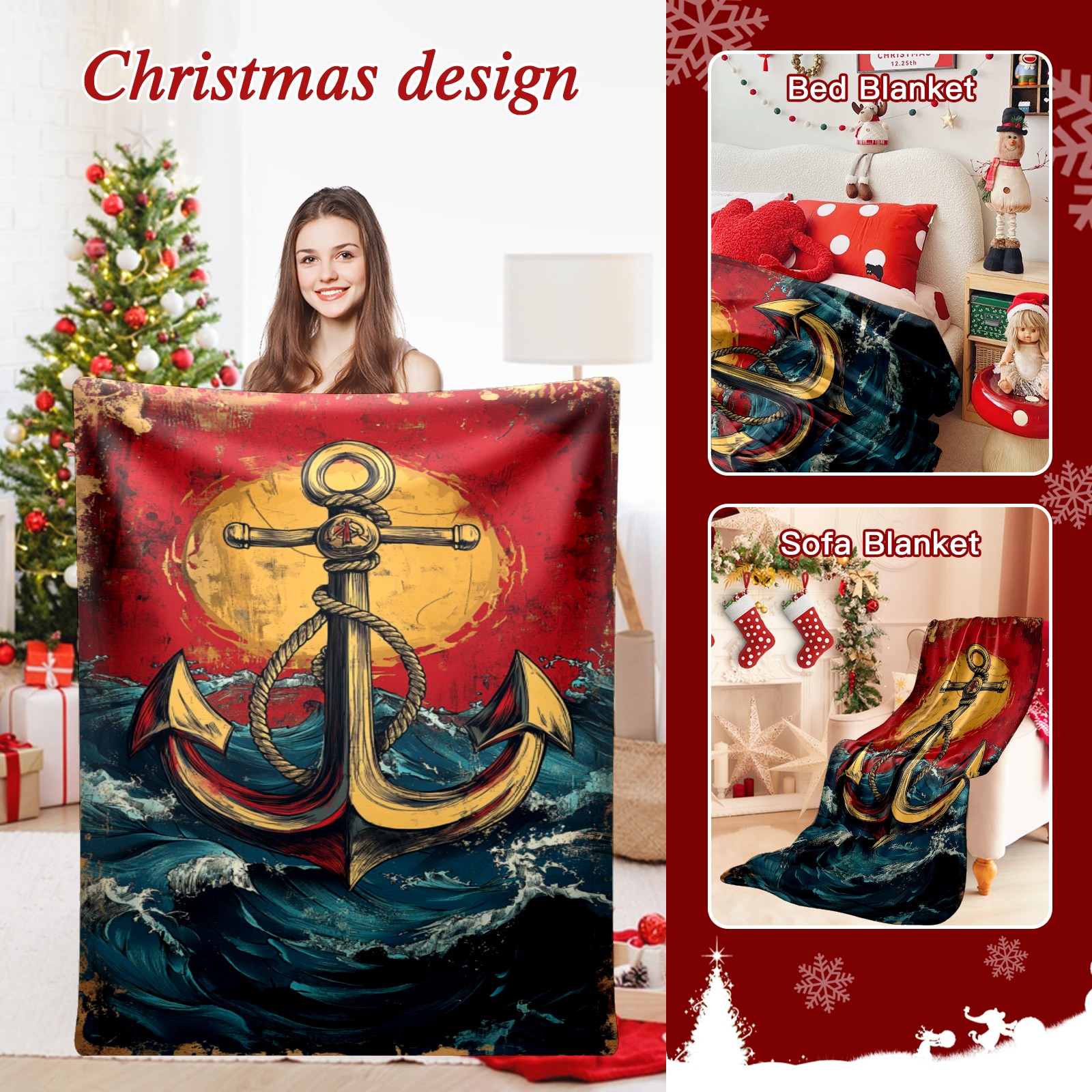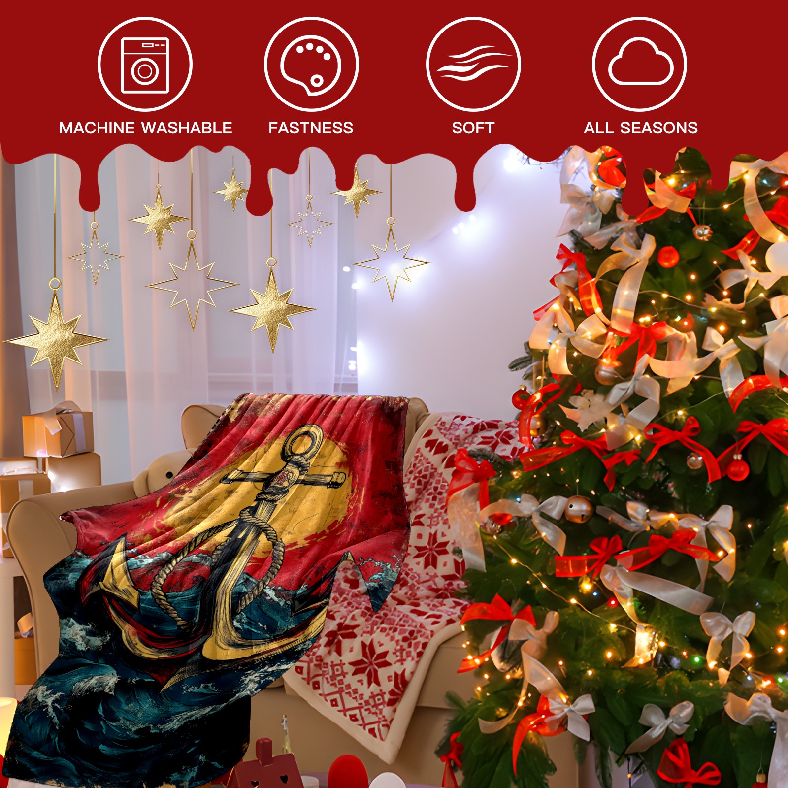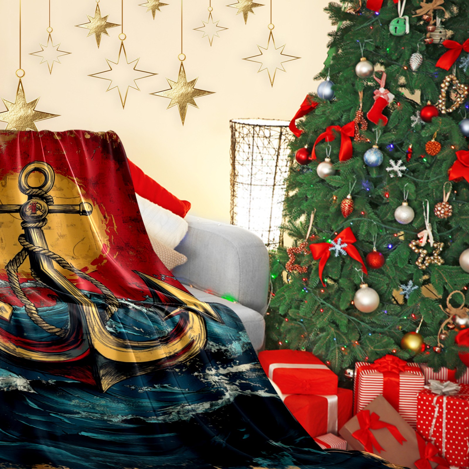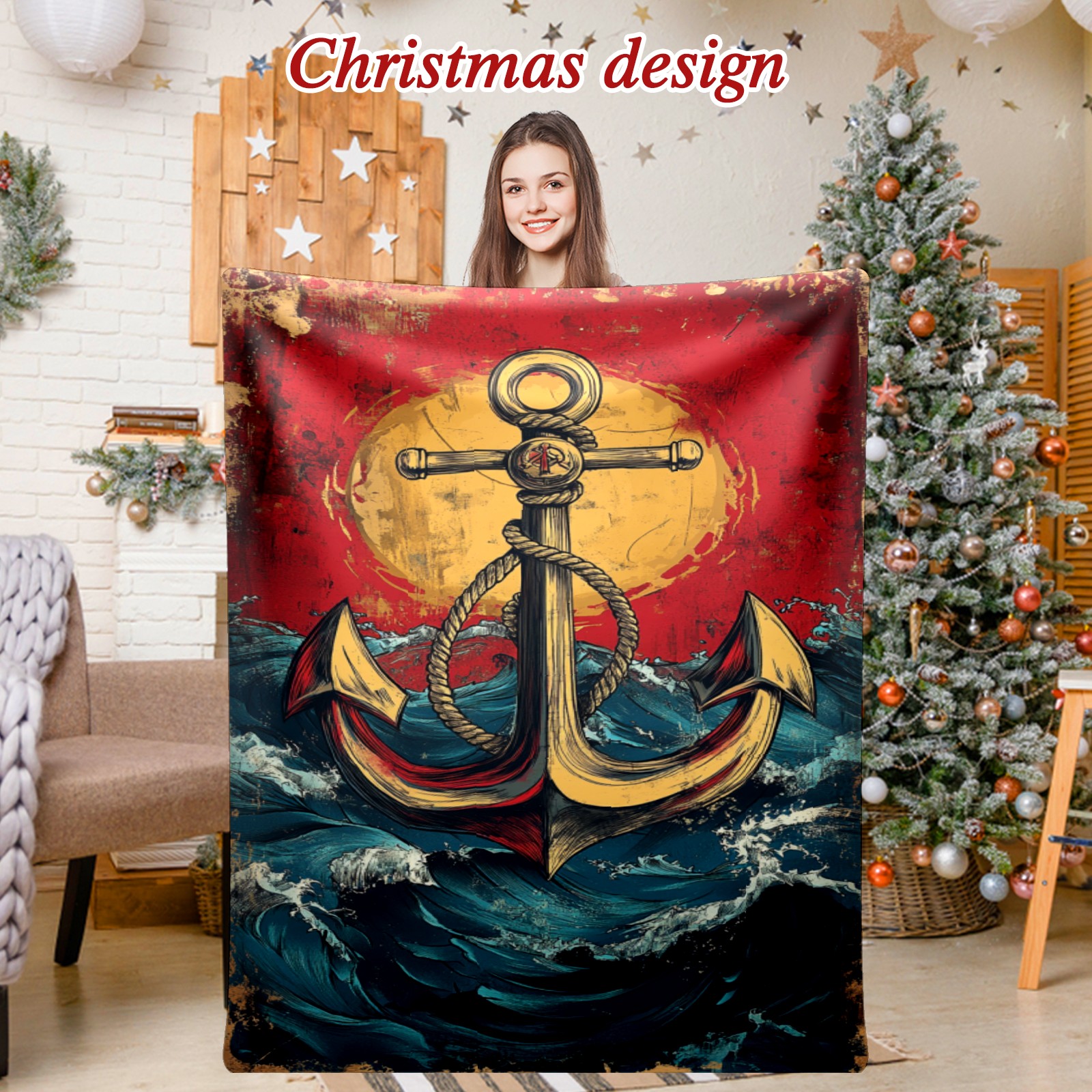 Премиальная фланелевая одеяло Anchor Pattern