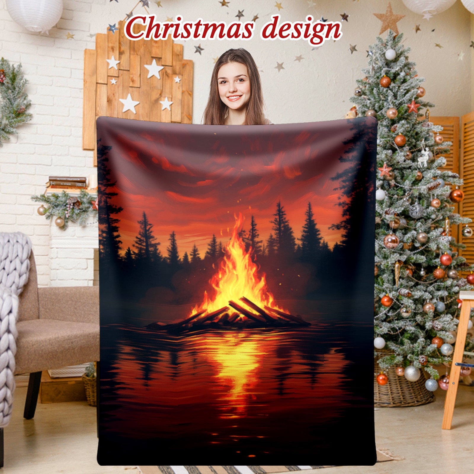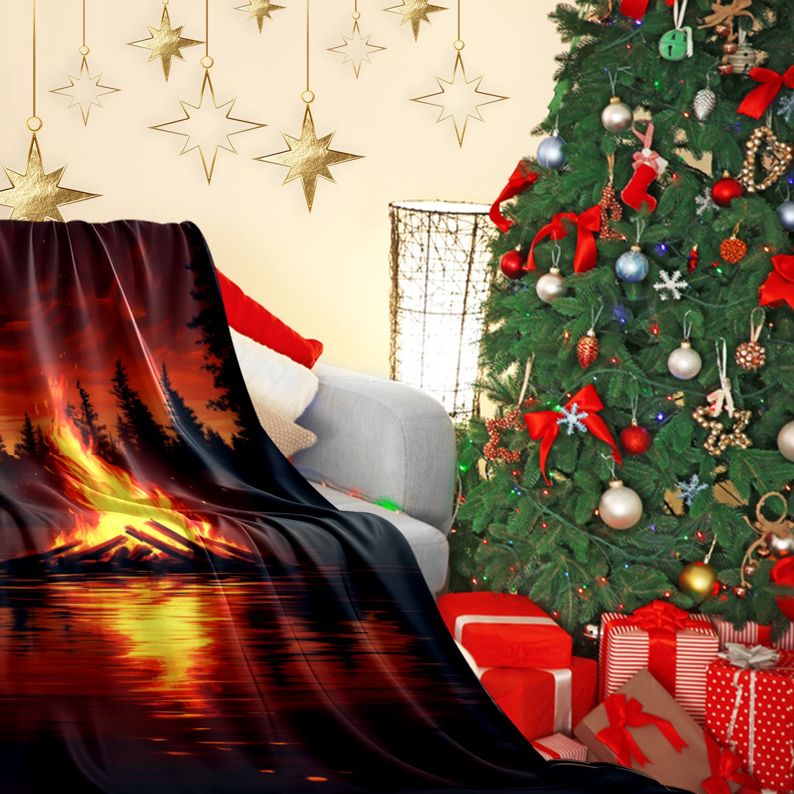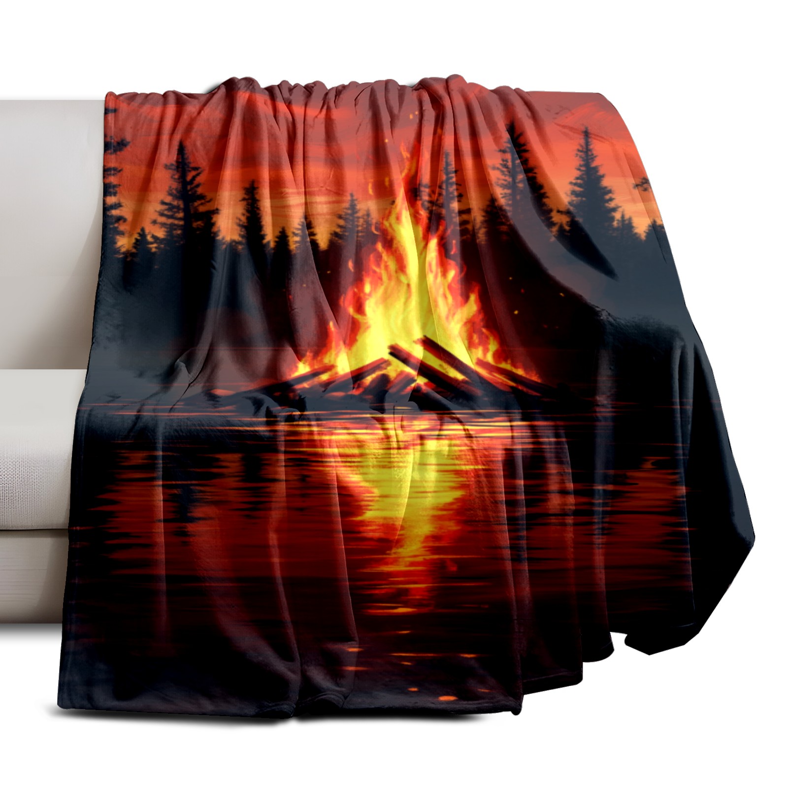 Премиальная фланелевая одеяло Lakeside Bonfire Pattern