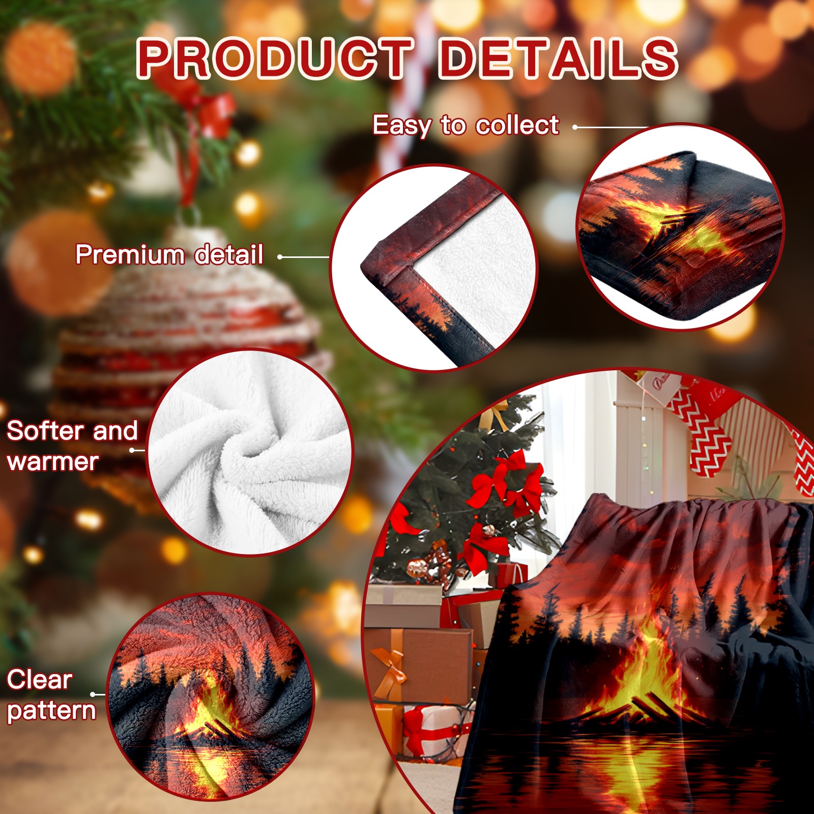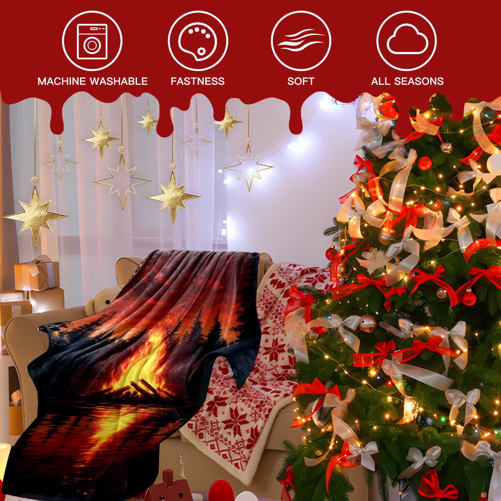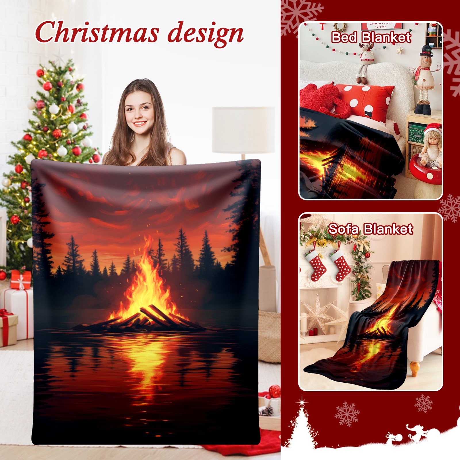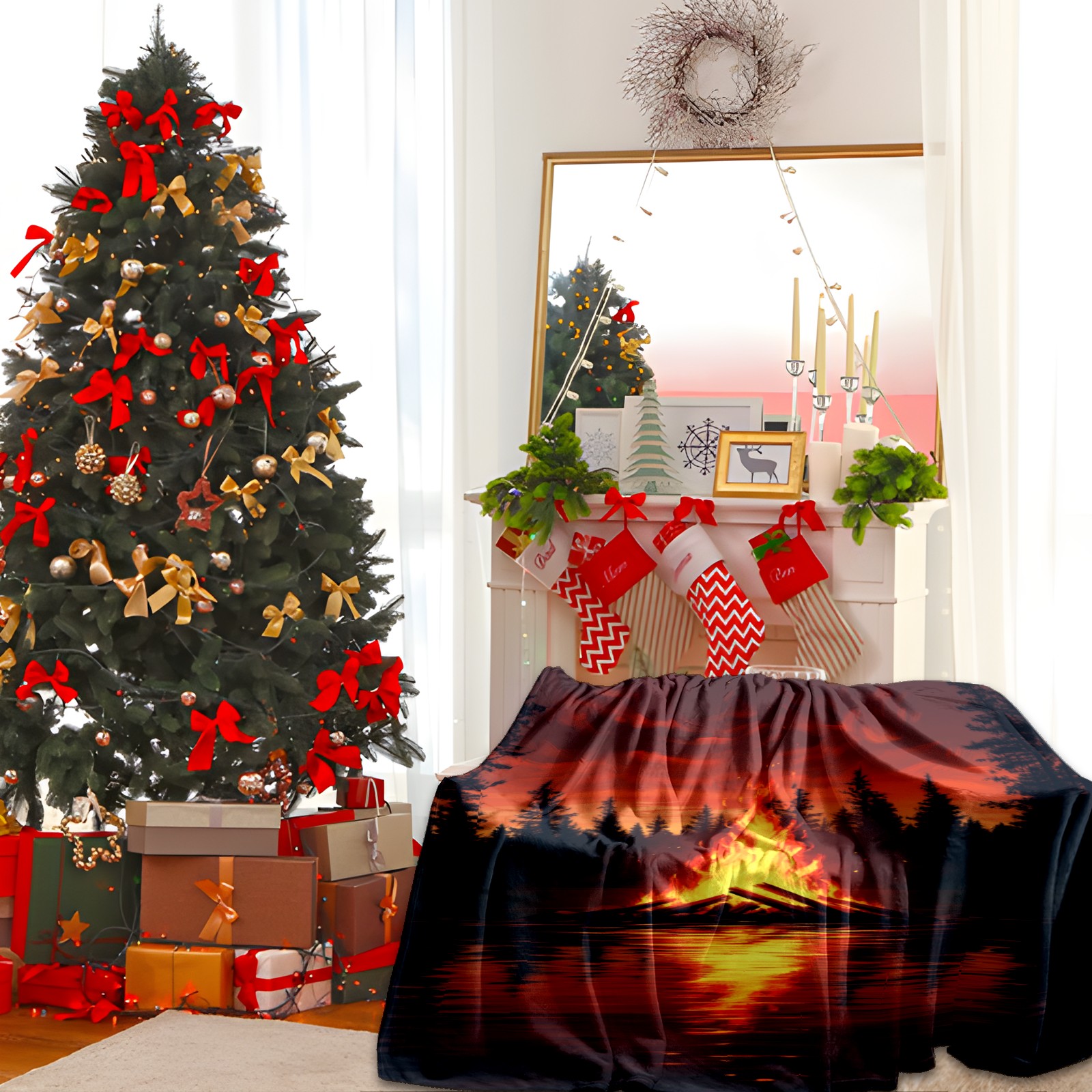 Премиальная фланелевая одеяло Lakeside Bonfire Pattern