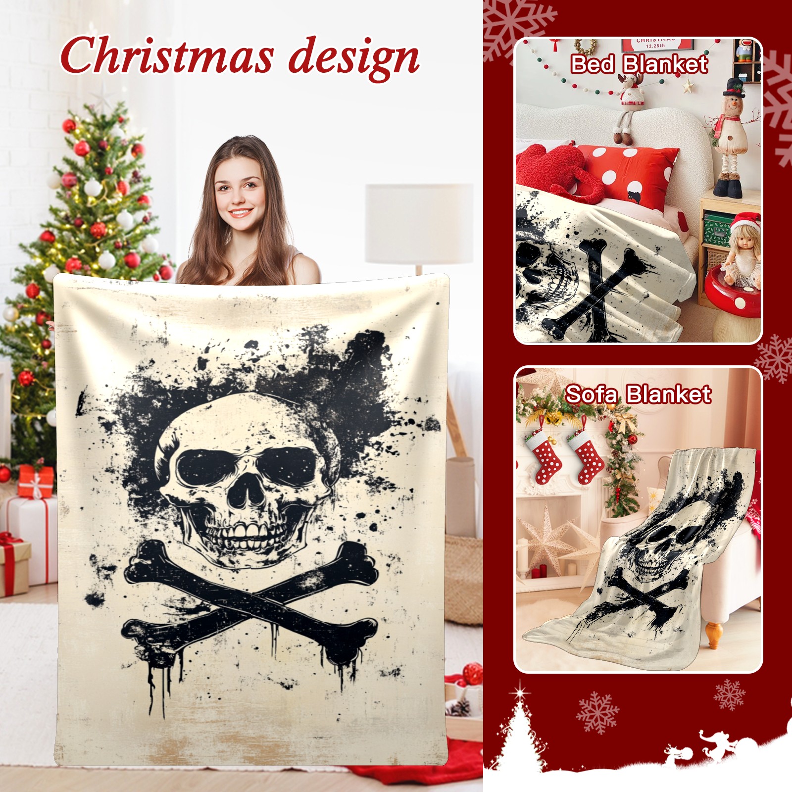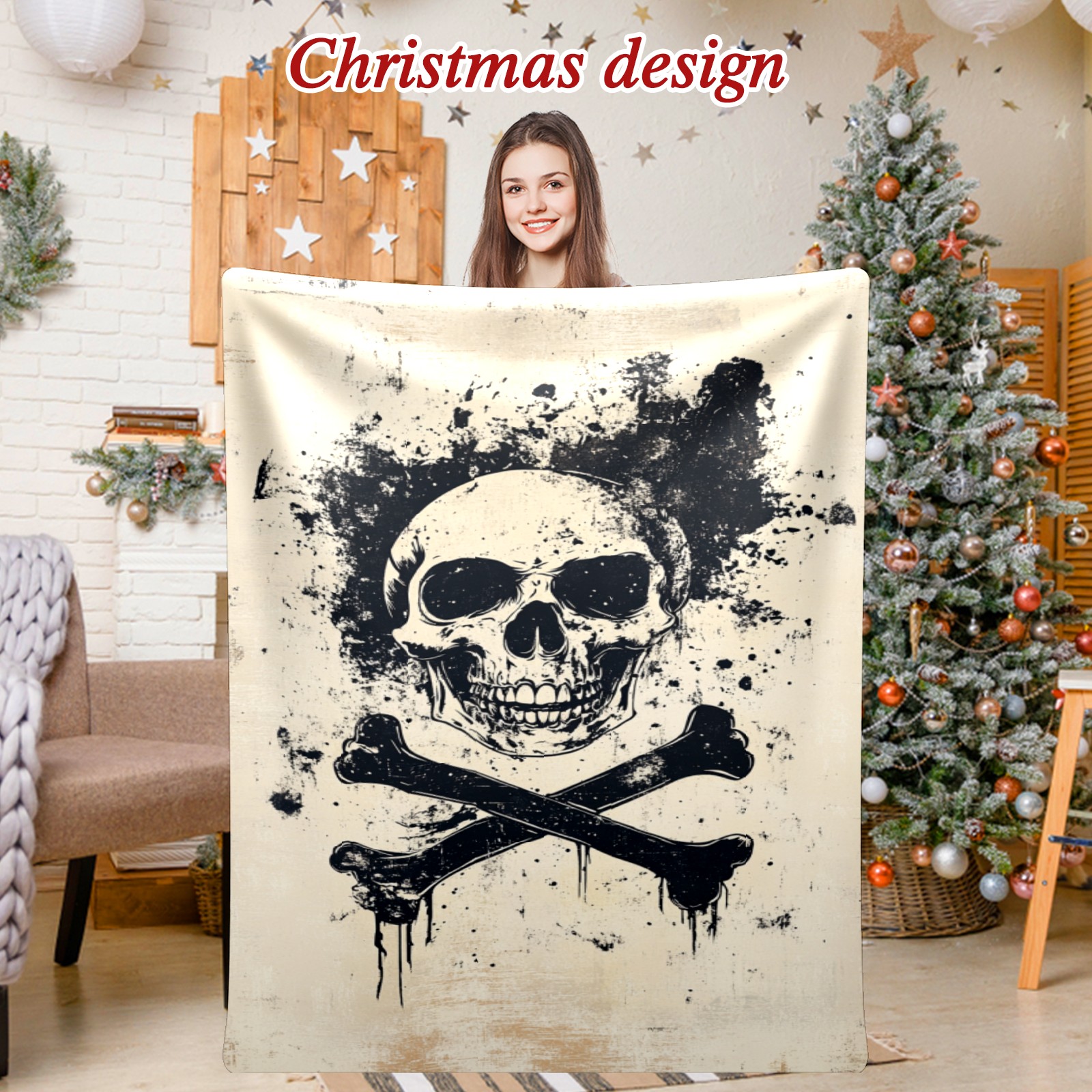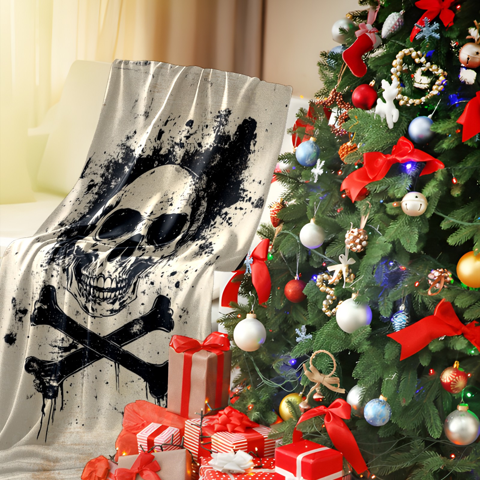 Премиальная фланелевая одеяло Black Skull