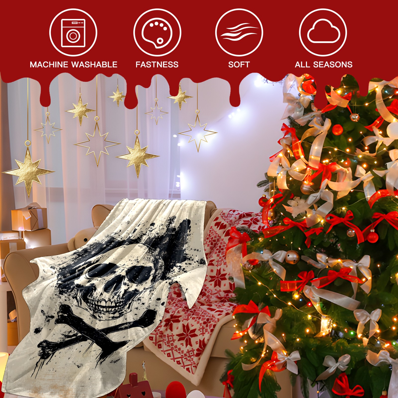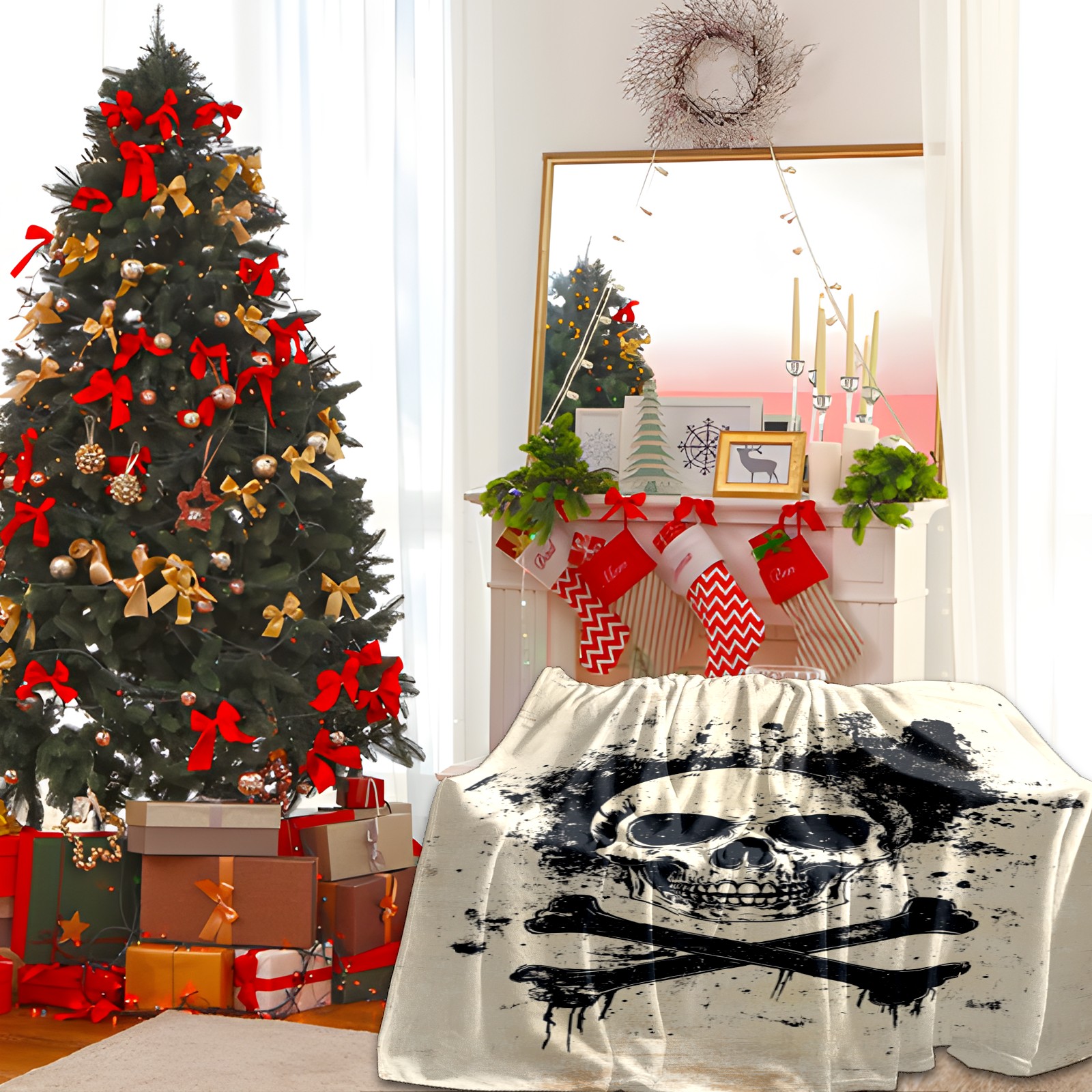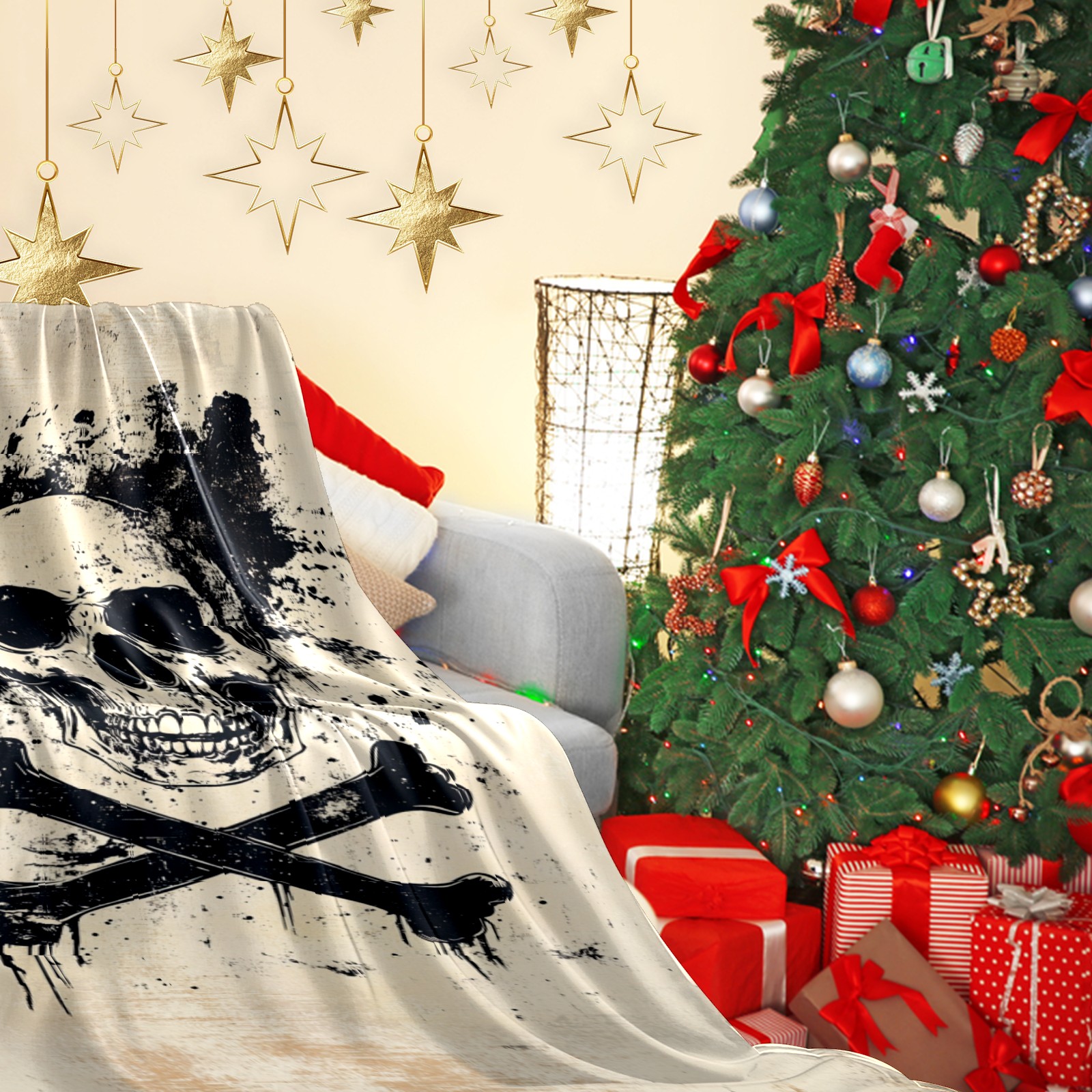 Премиальная фланелевая одеяло Black Skull