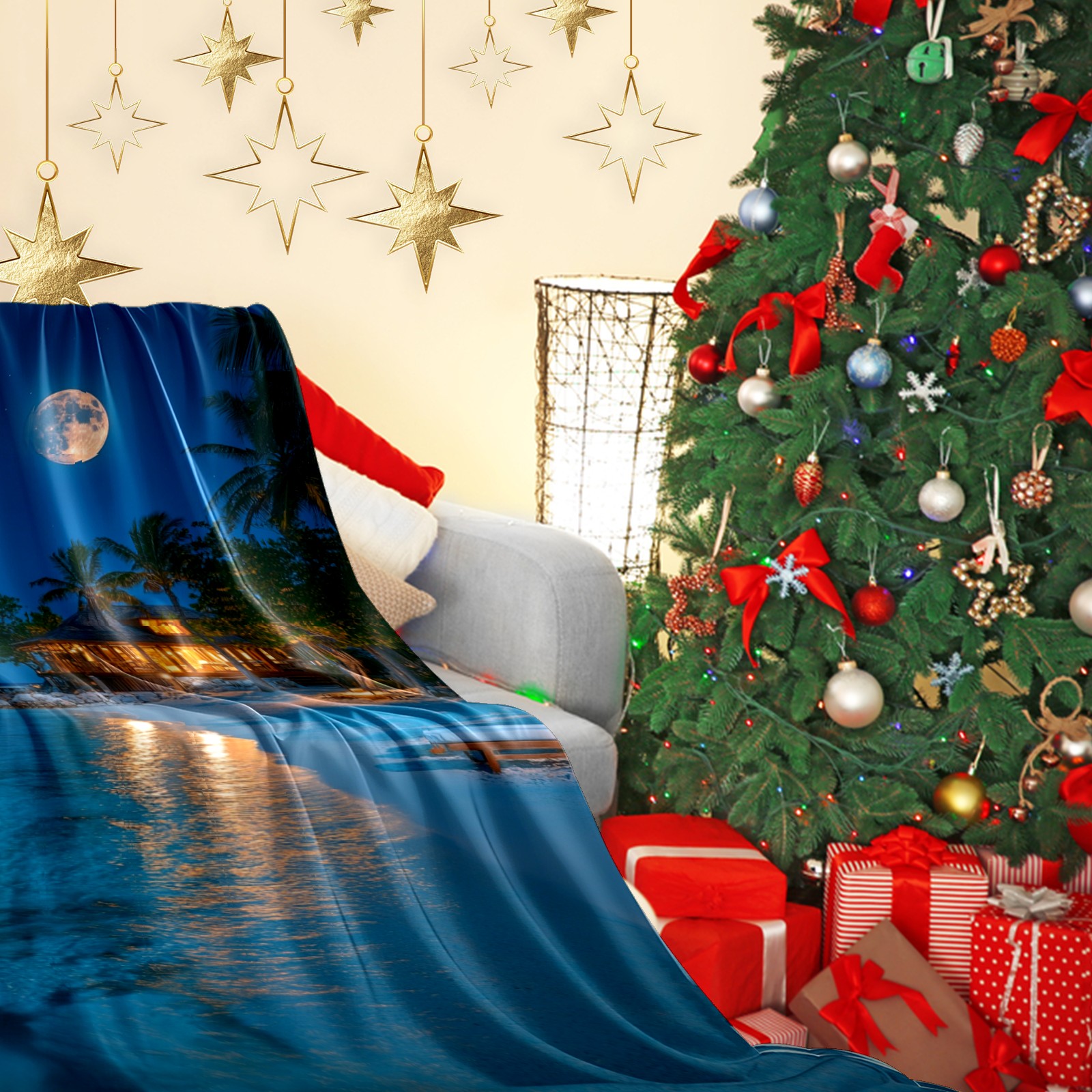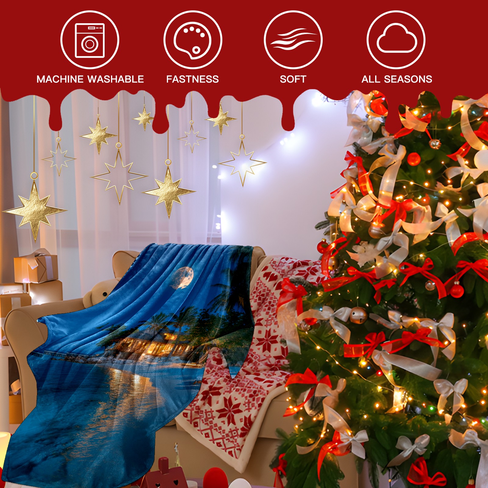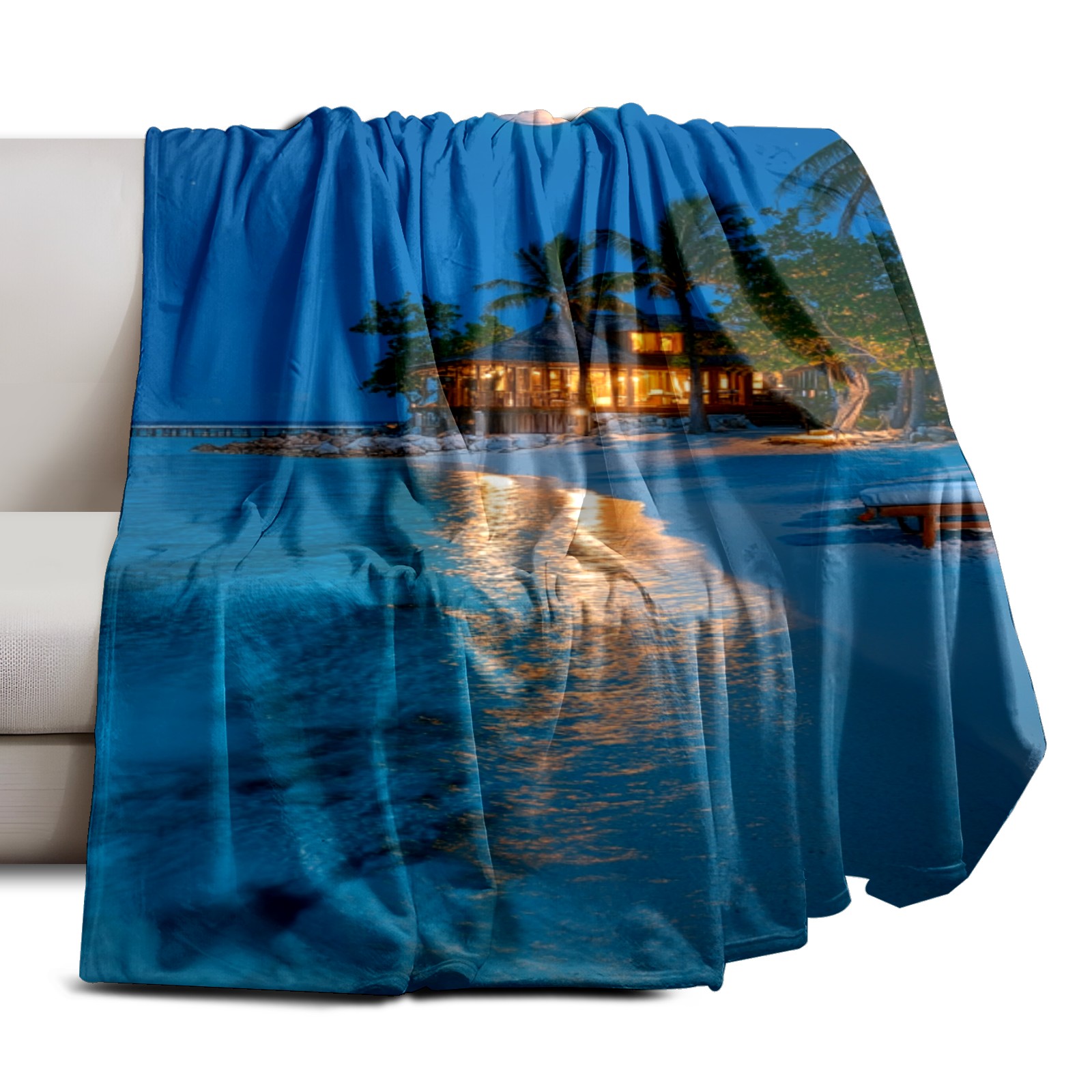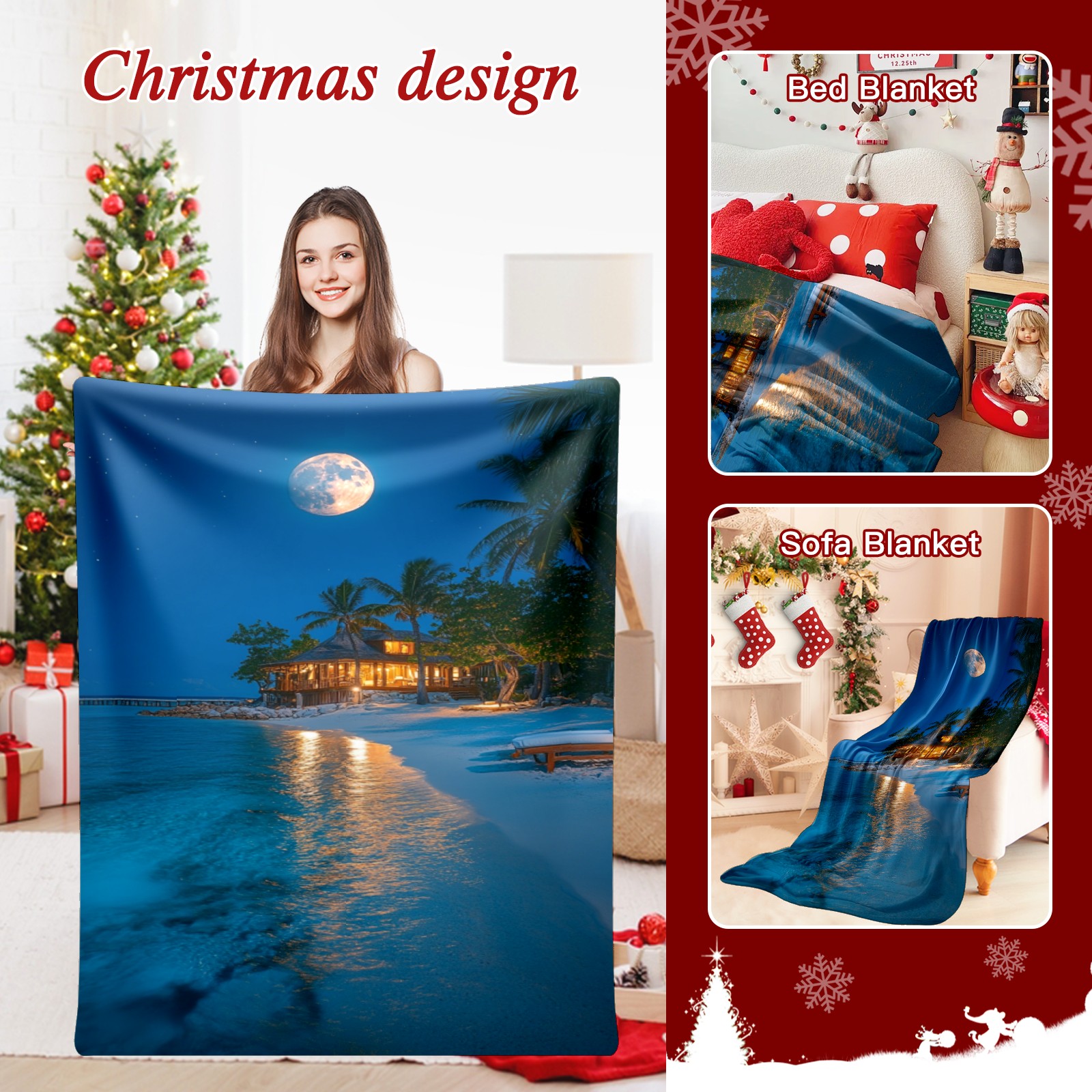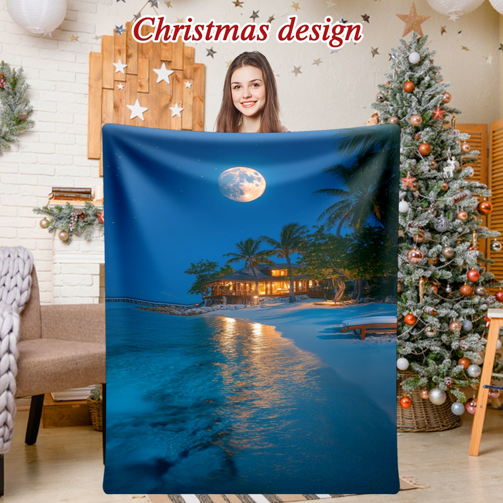Премиальная фланелевая одеяло Beach Moon Pattern