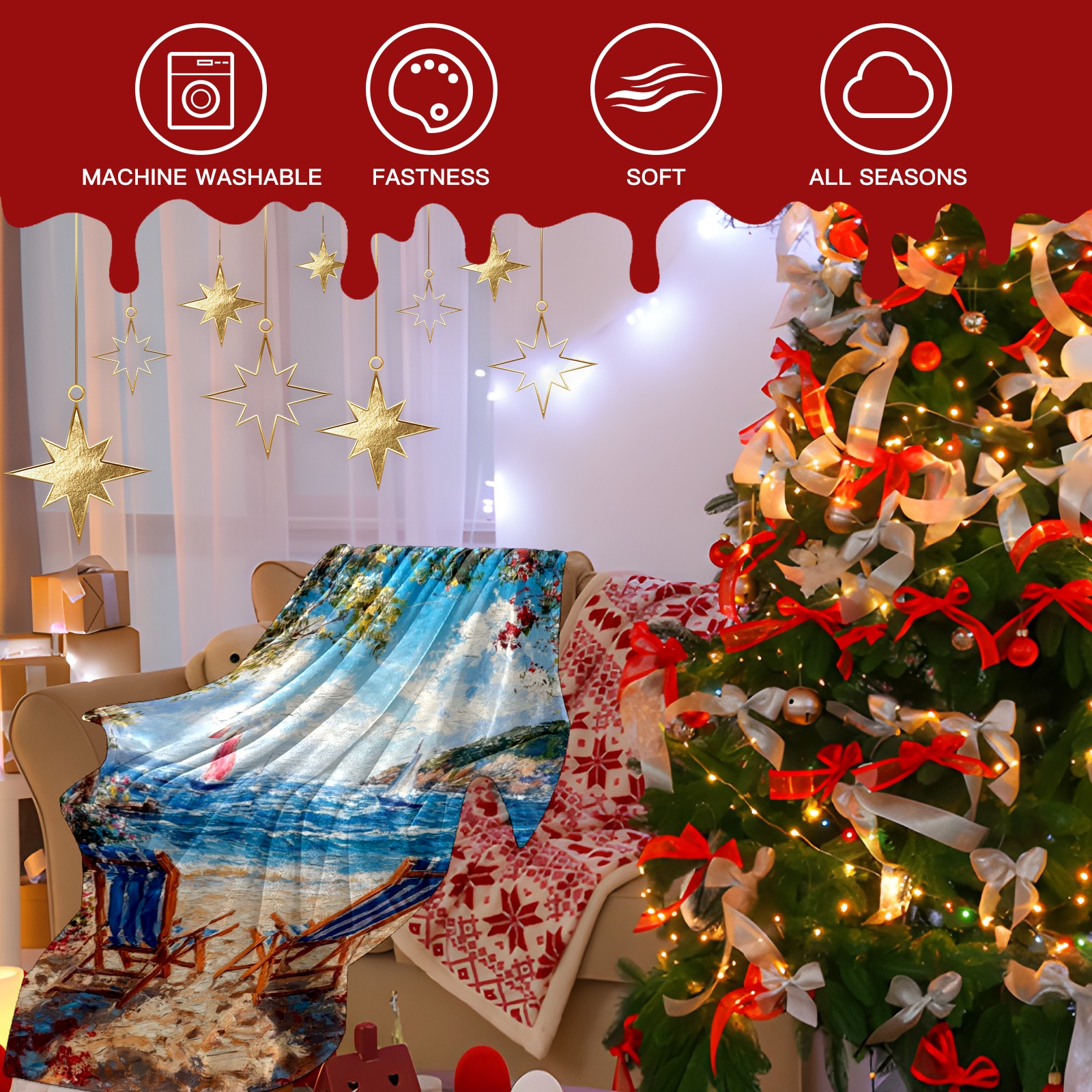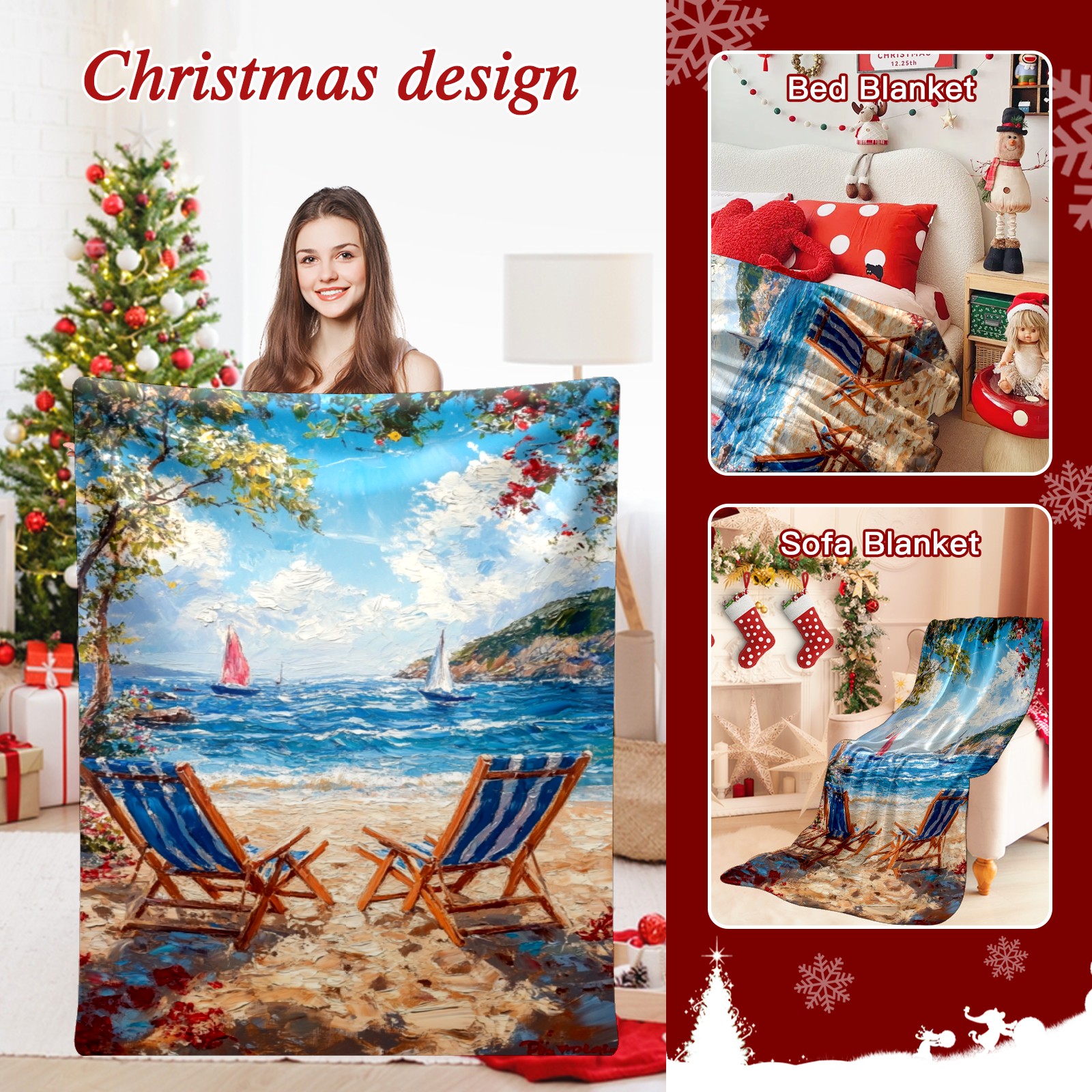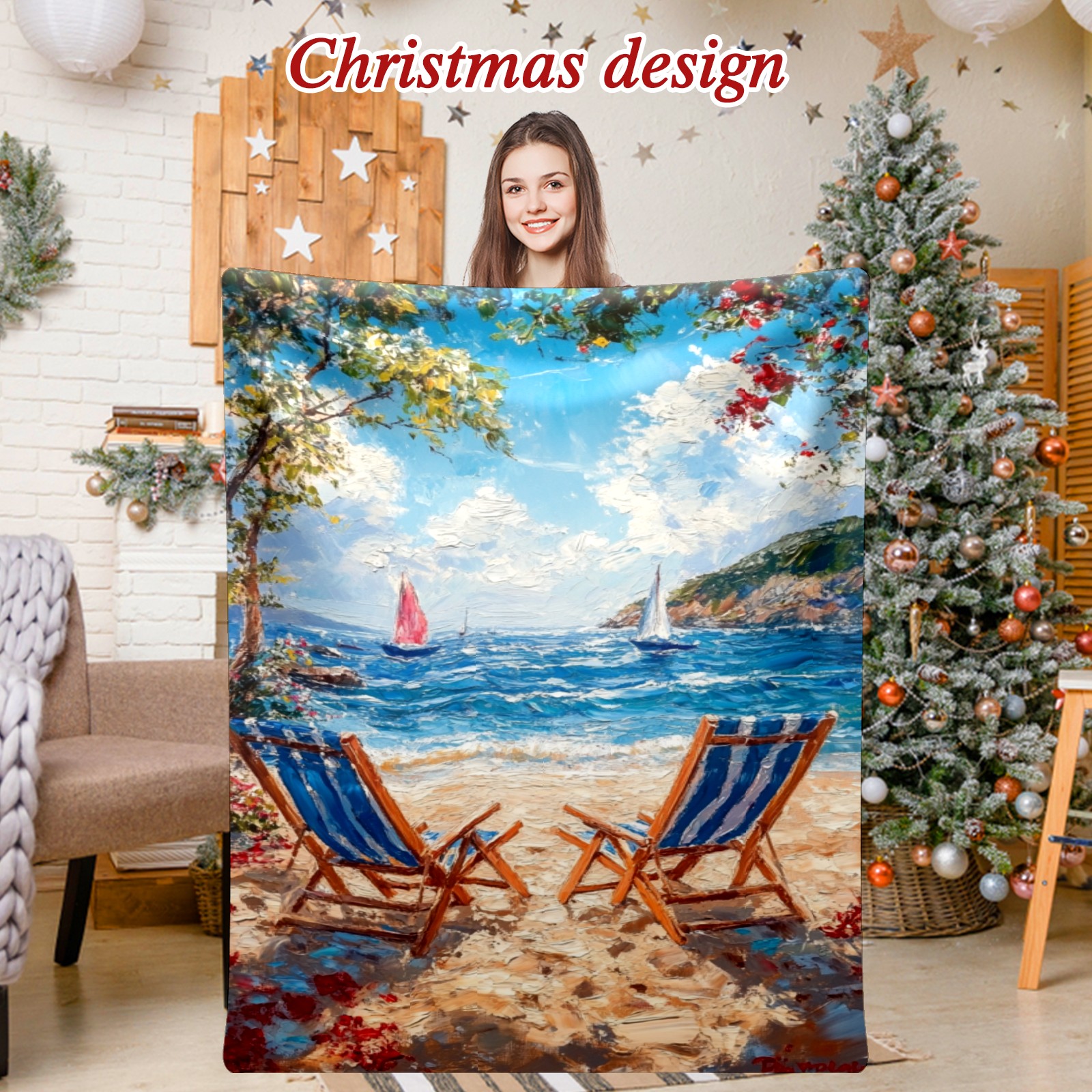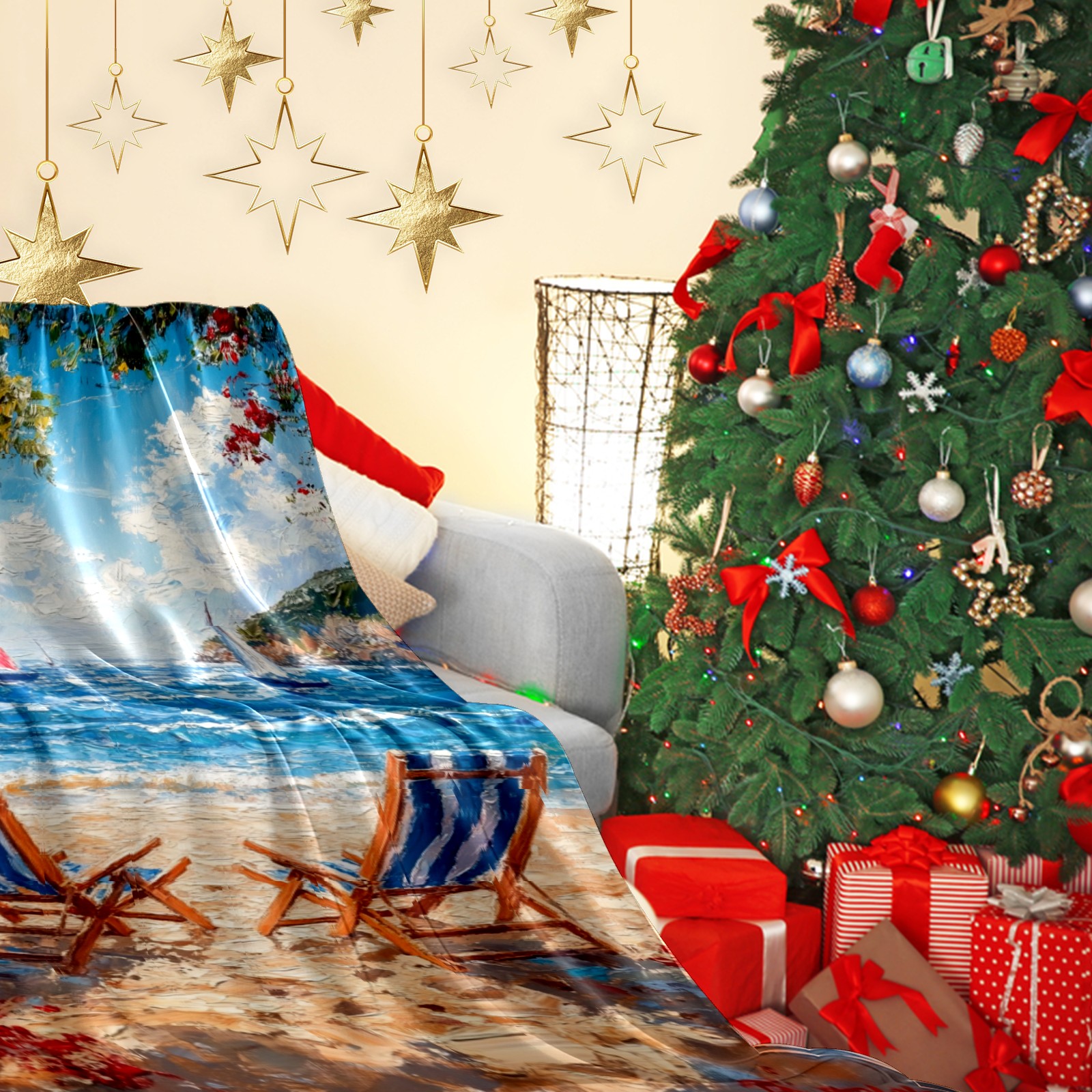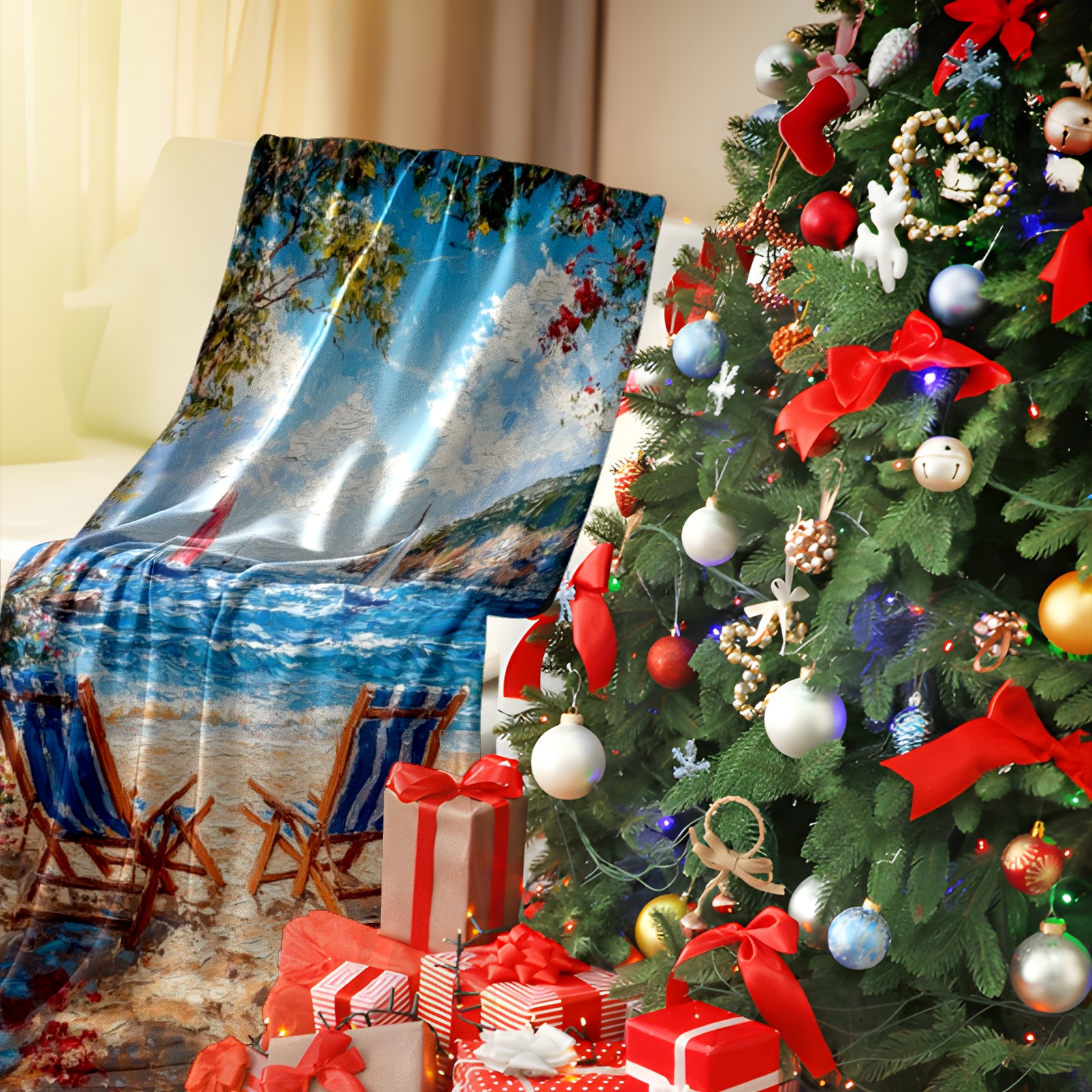 Премиальная фланелевая одеяло Beach Vacation Pattern