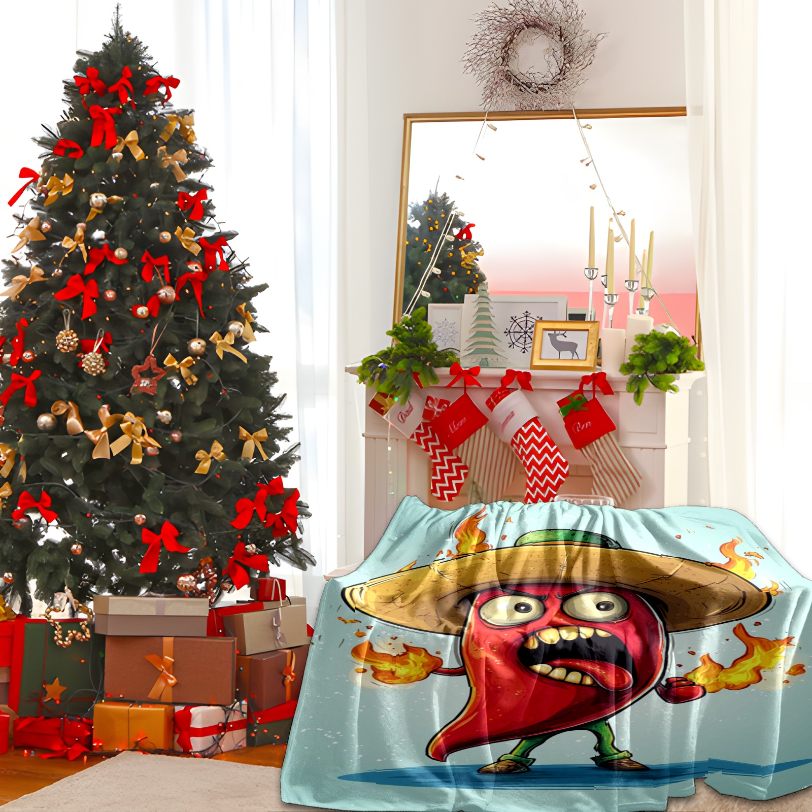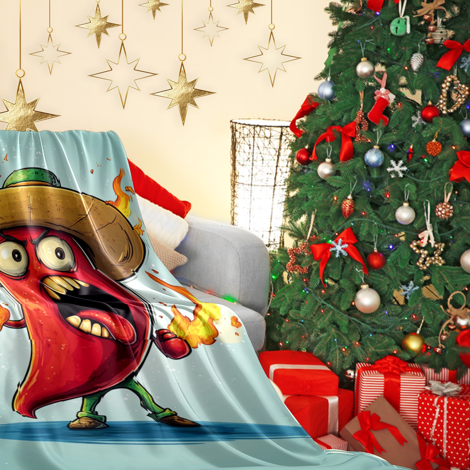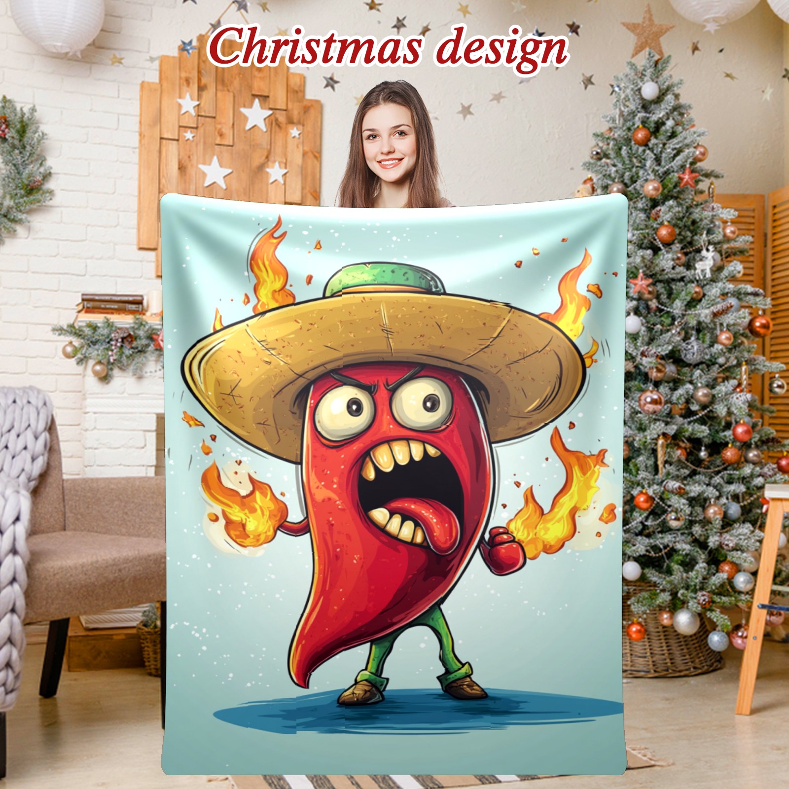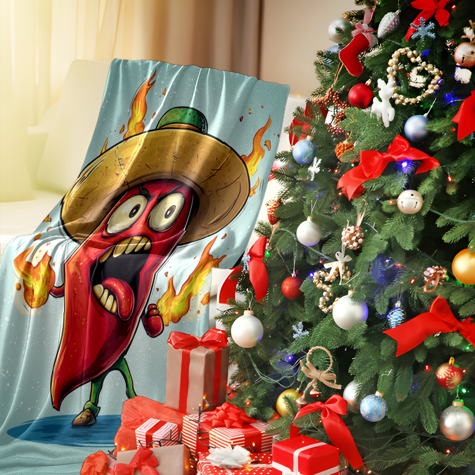 Премиальная фланелевая одеяло Angry Flaming Chili Pepper