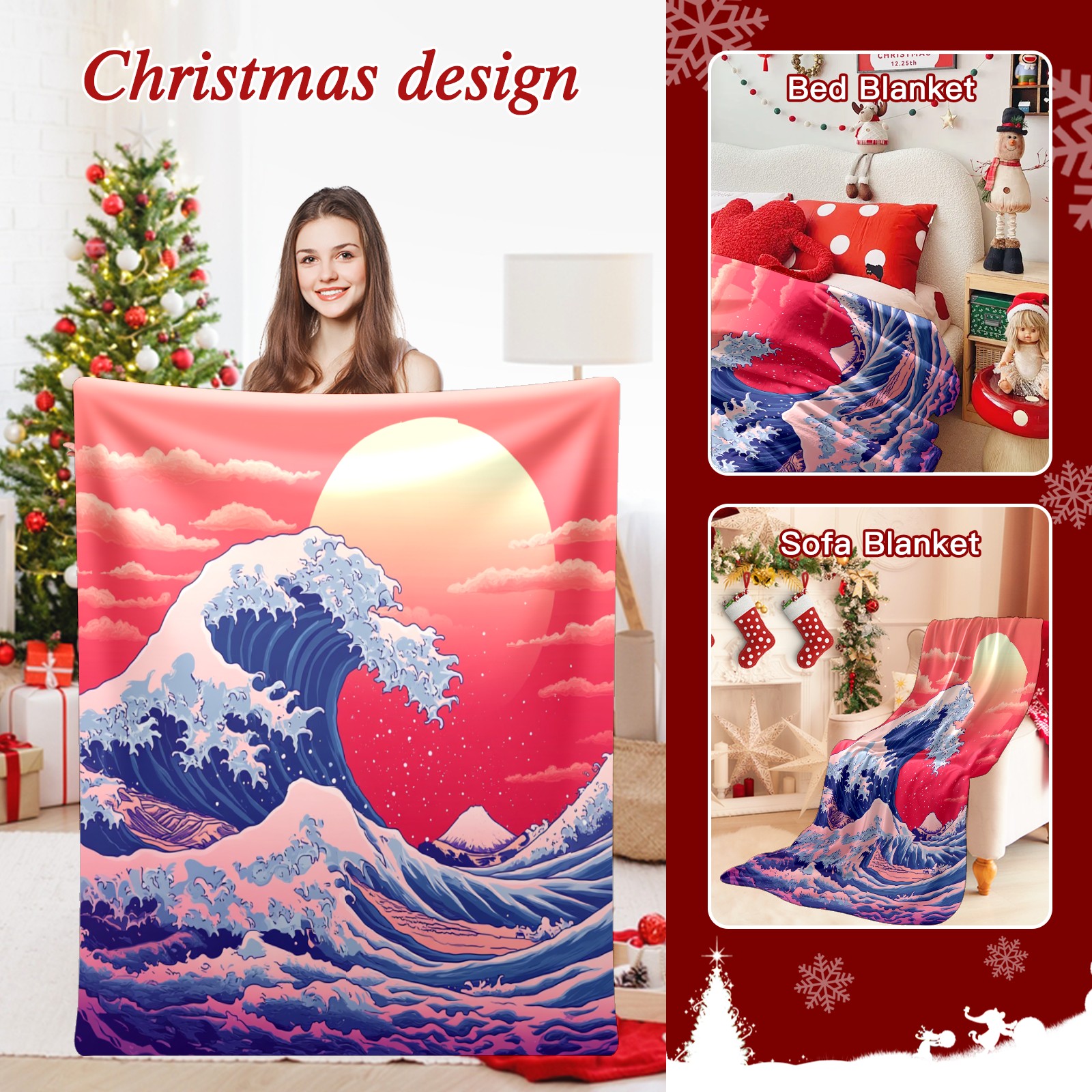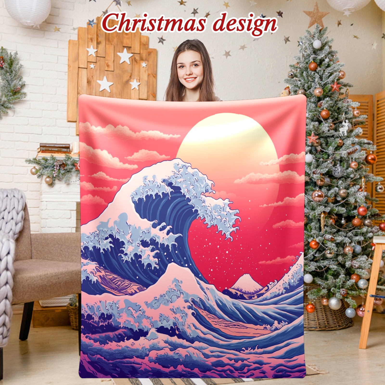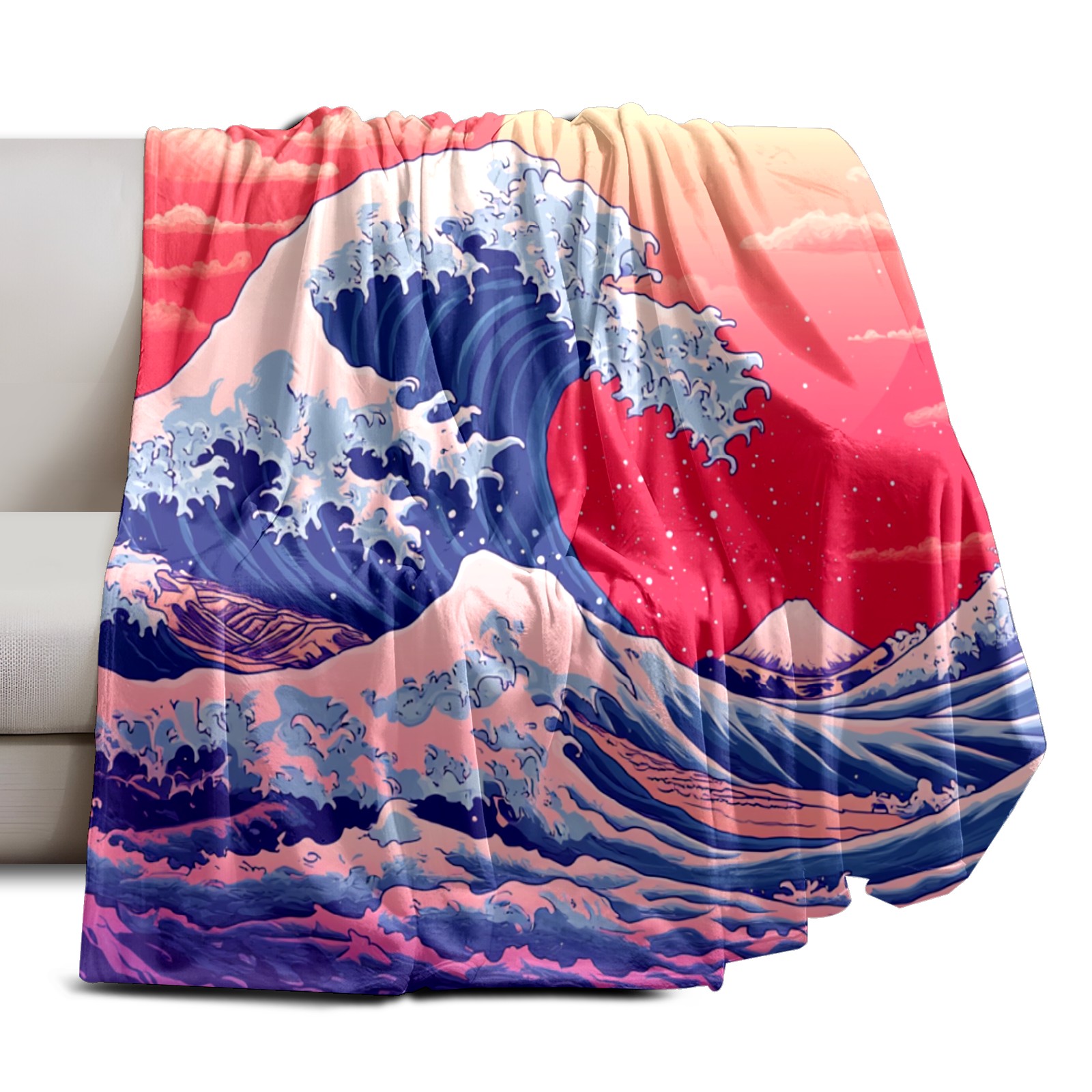 Премиальная фланелевая одеяло Red Sun Sea Waves