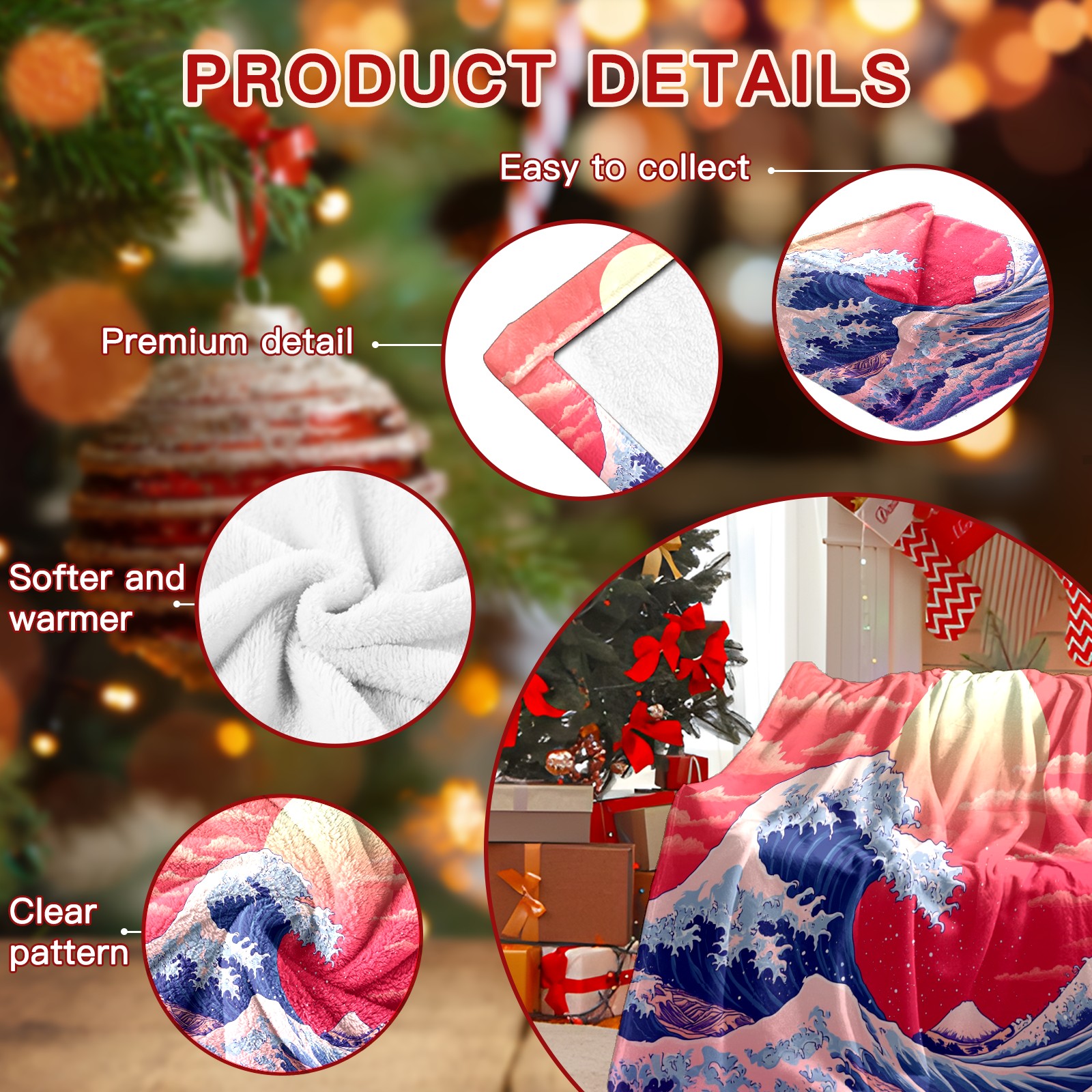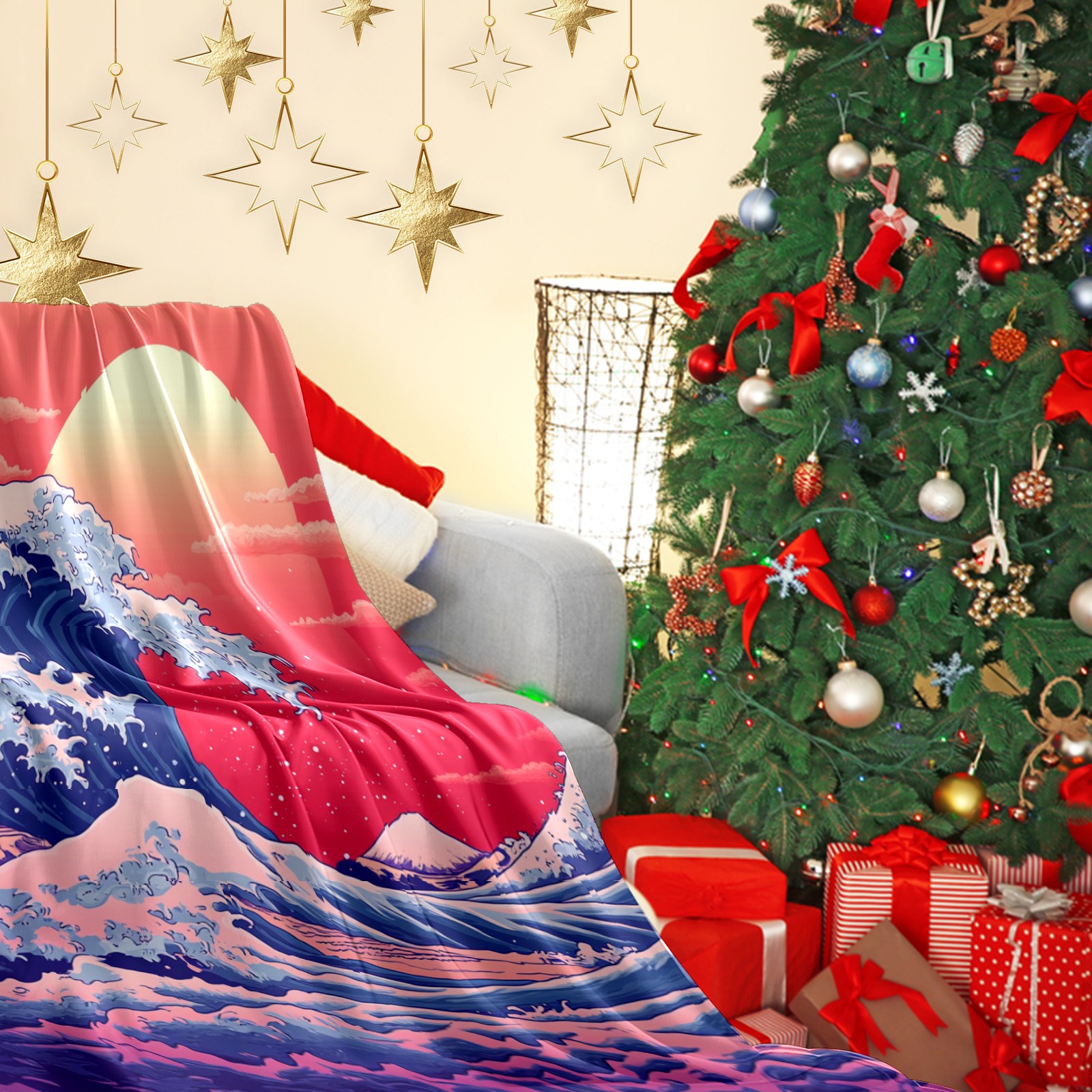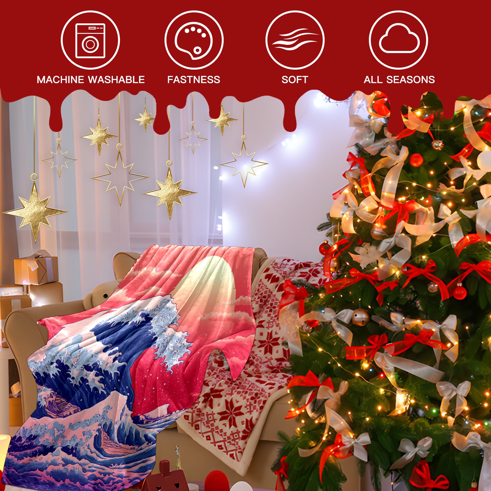 Премиальная фланелевая одеяло Red Sun Sea Waves