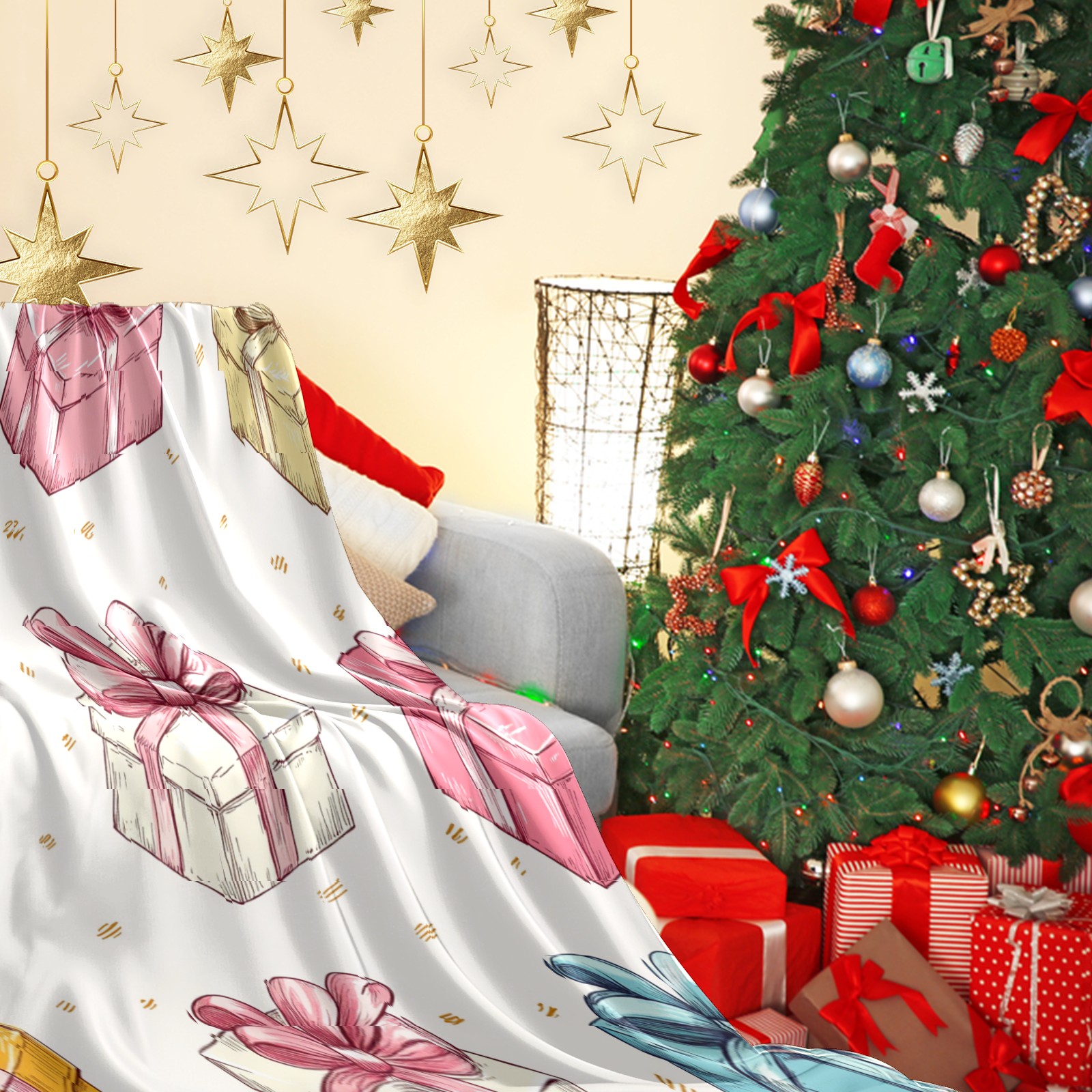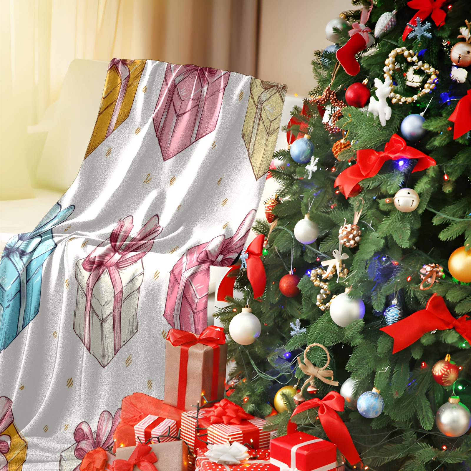 Премиальная фланелевая одеяло Pink-Gold Gift Box