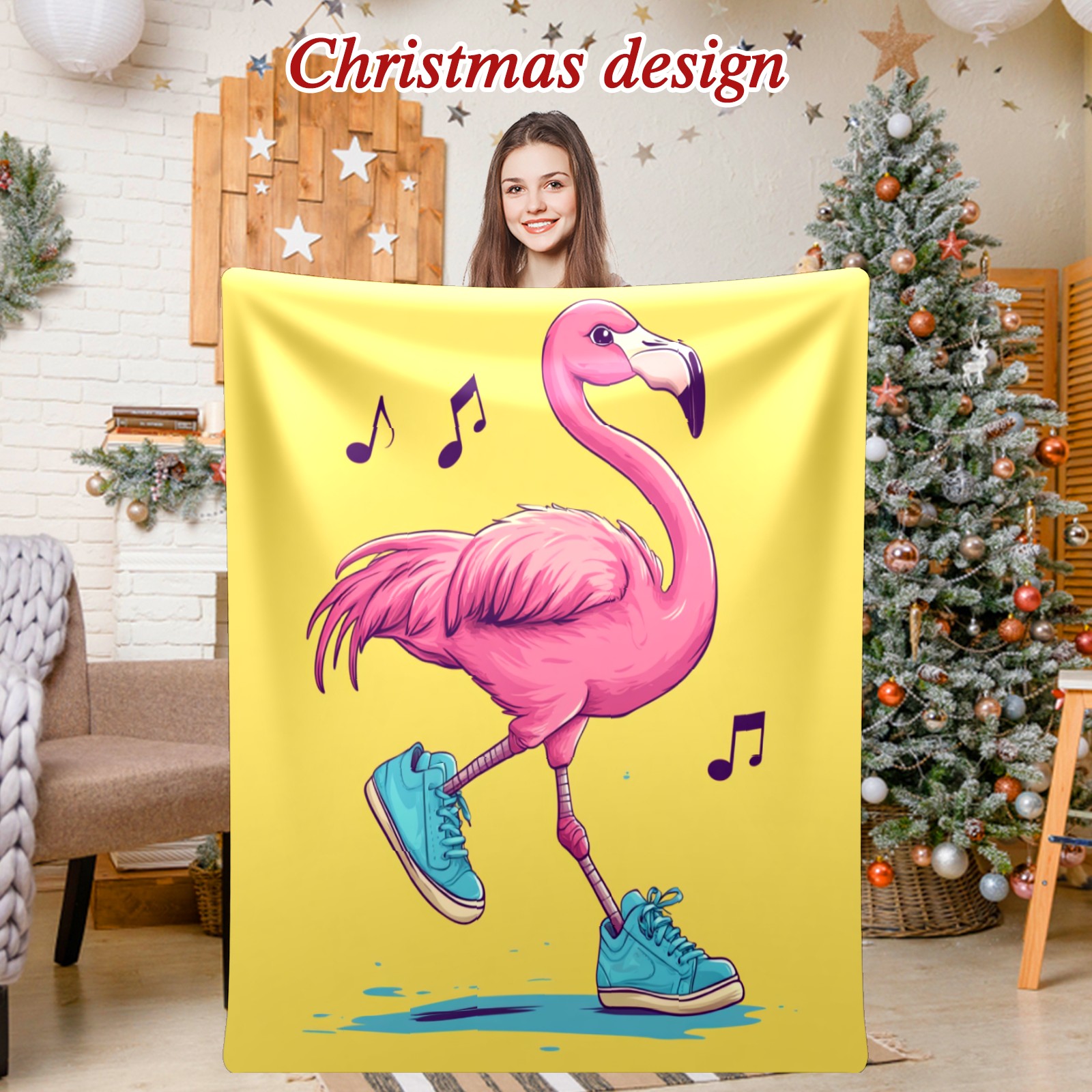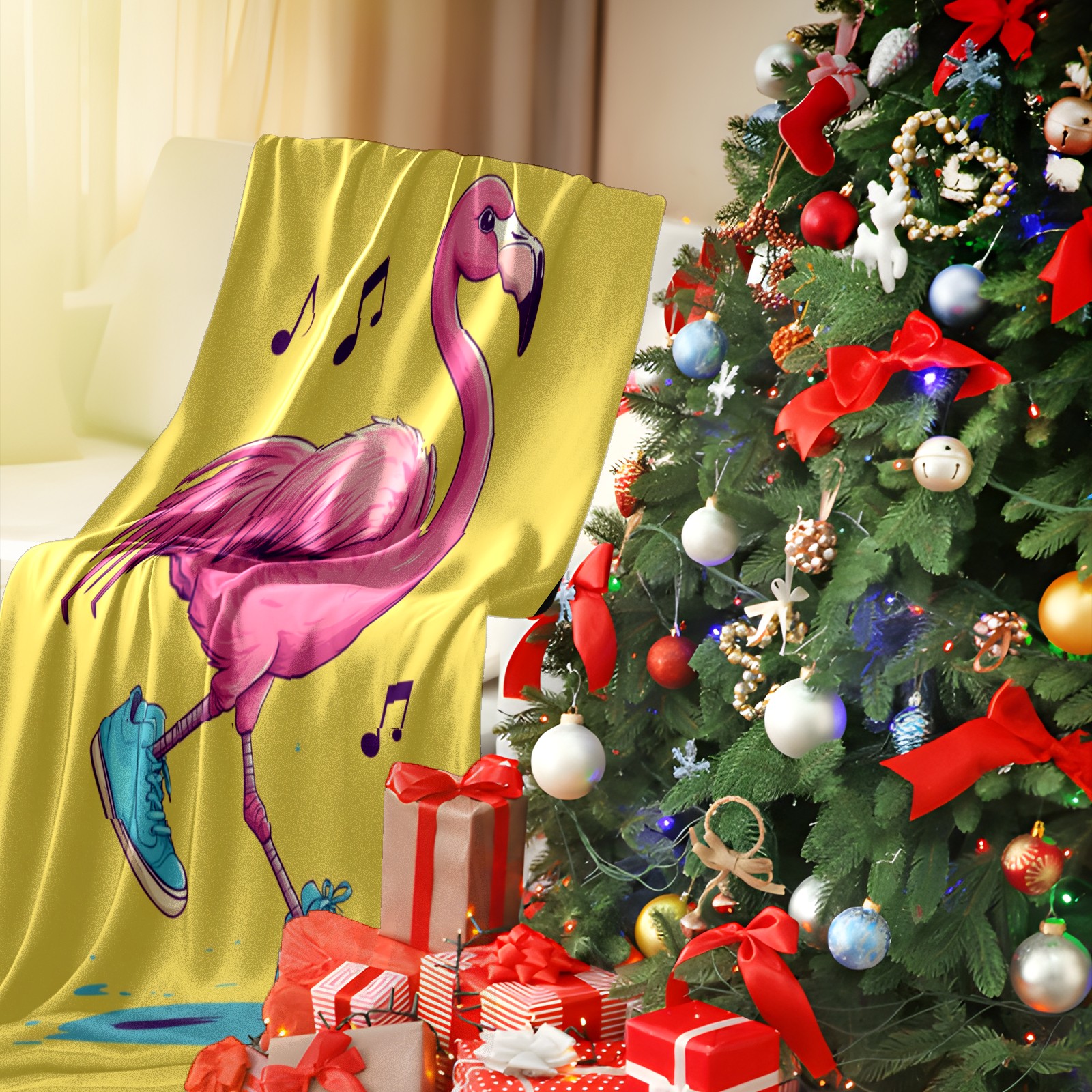 Премиальная фланелевая одеяло Flamingo Listening To Music 2