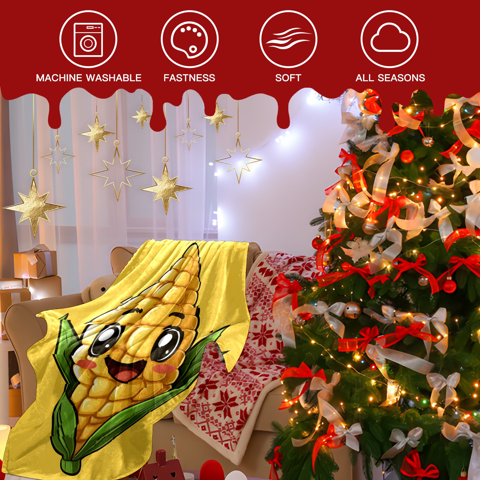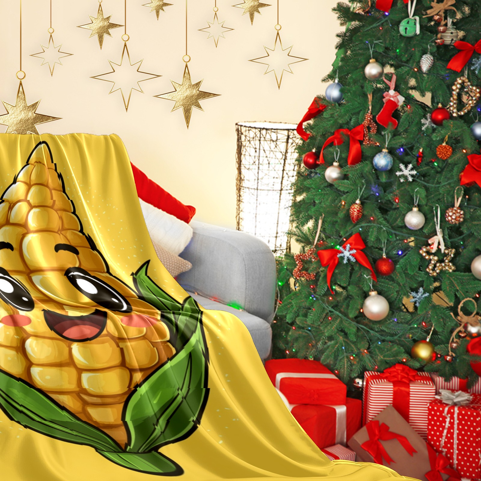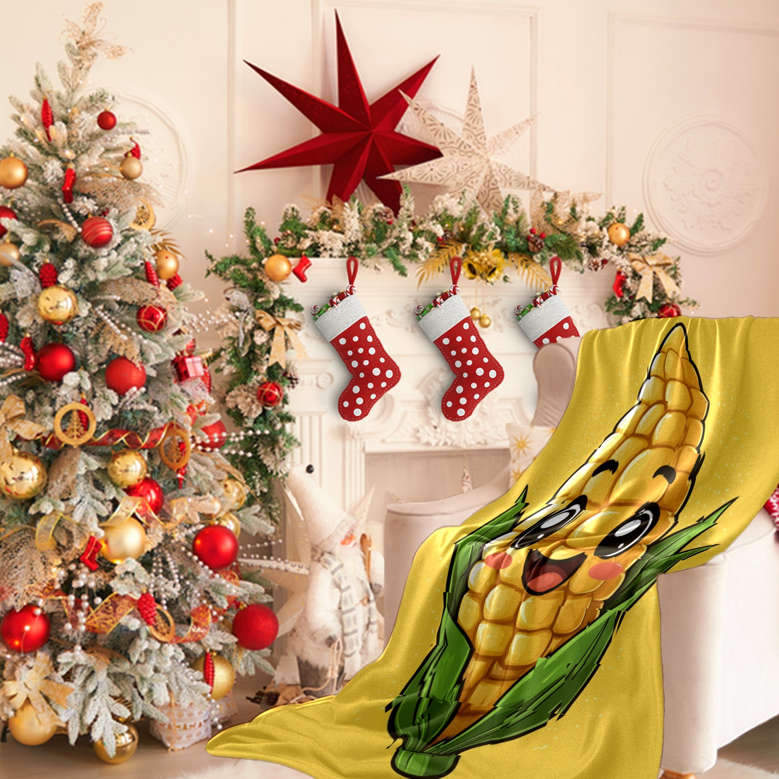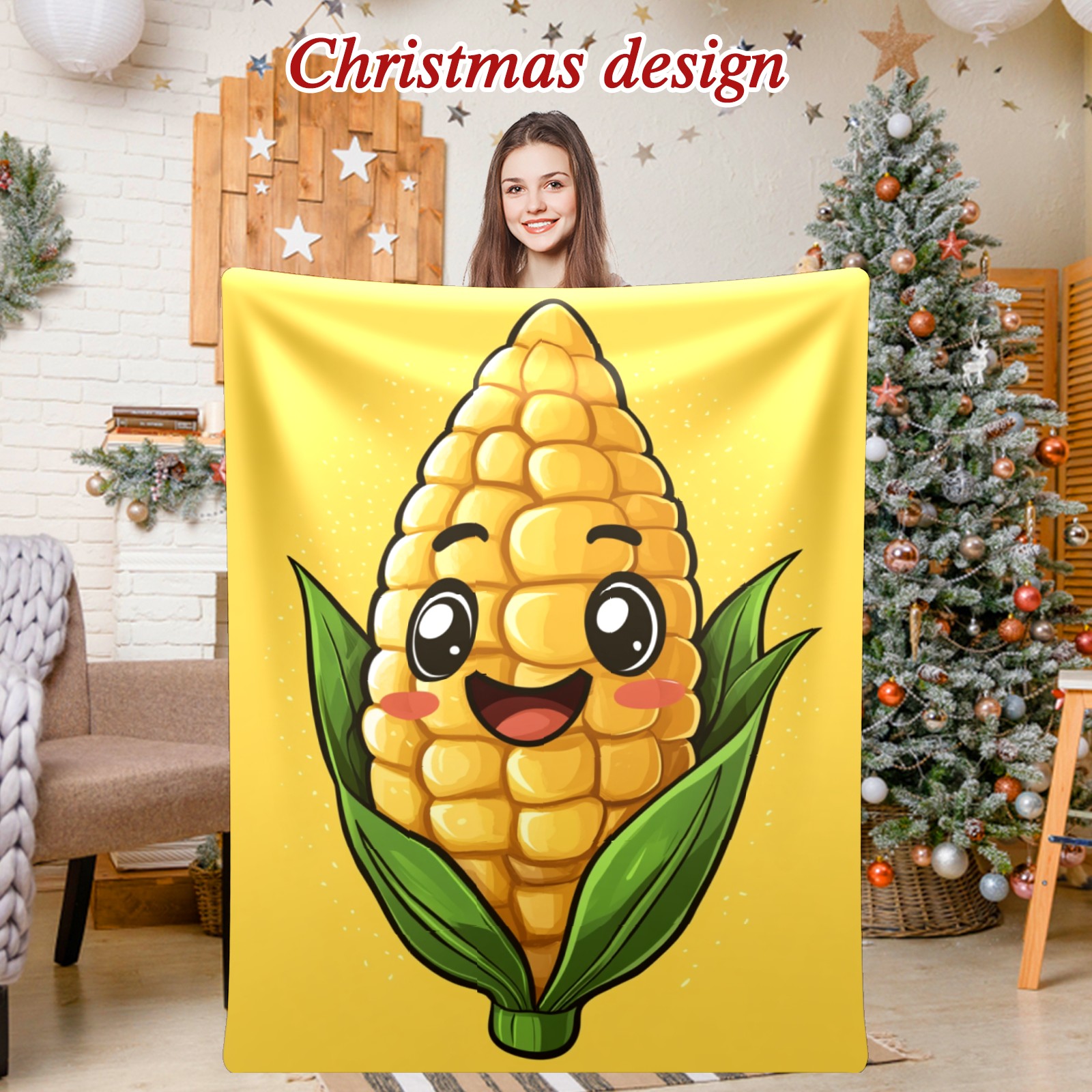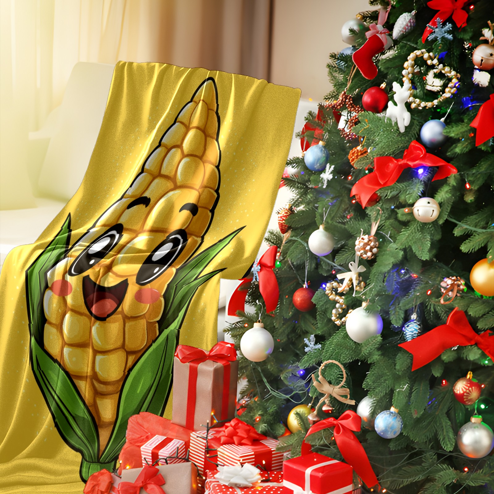 Премиальная фланелевая одеяло Lively Corn Character Pattern