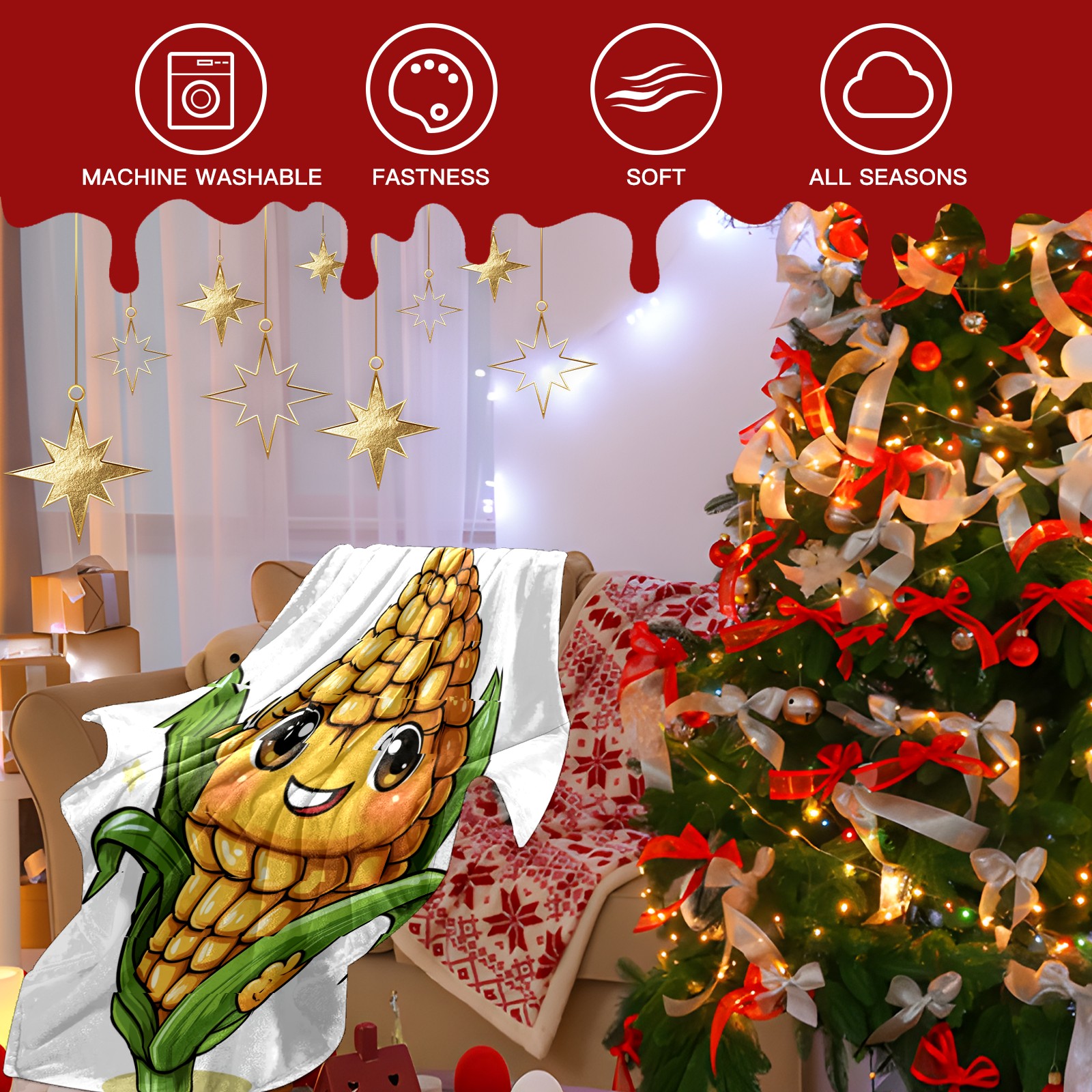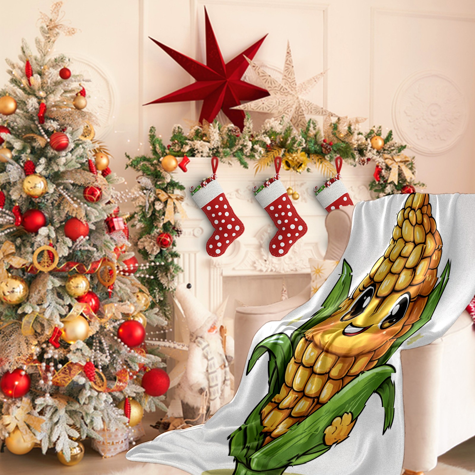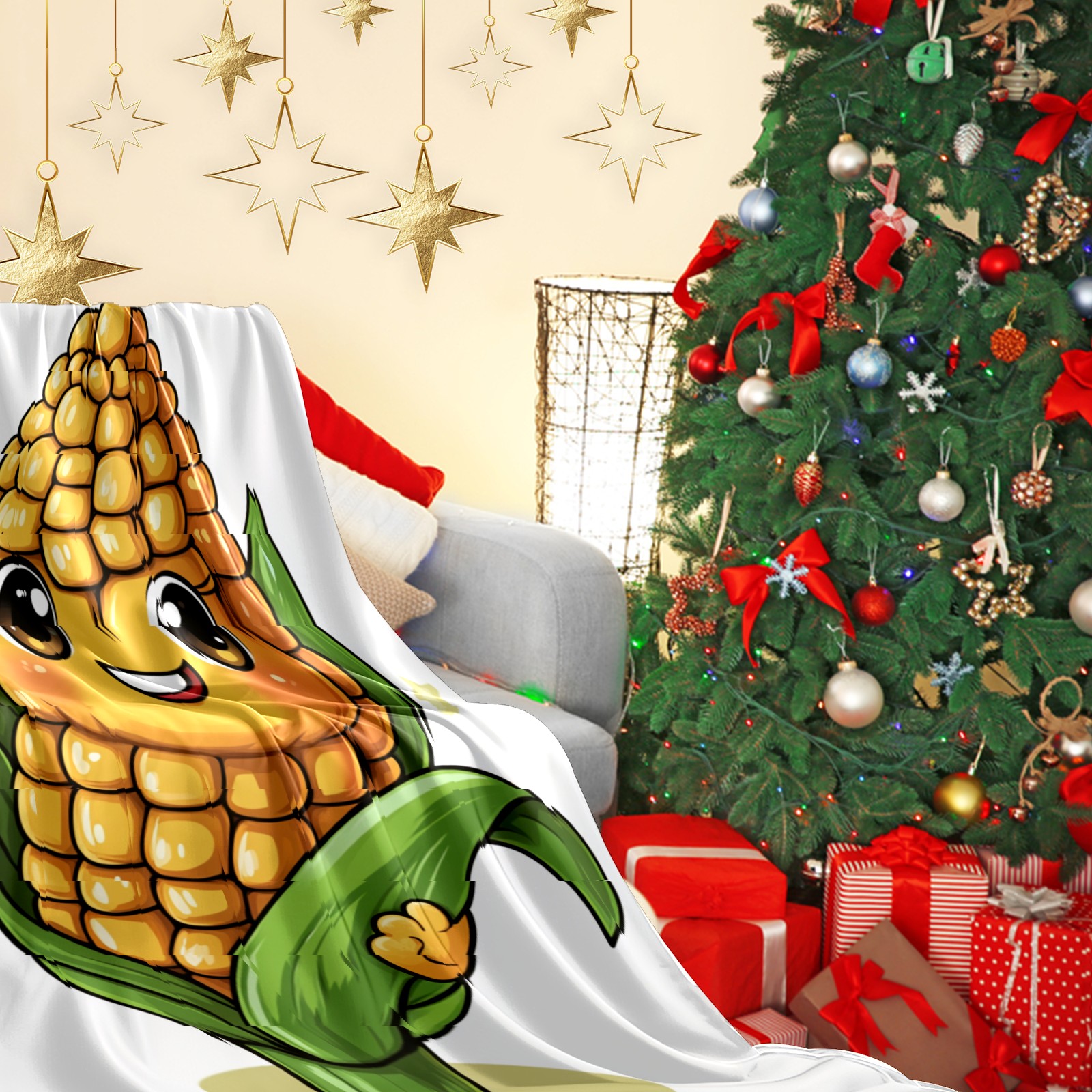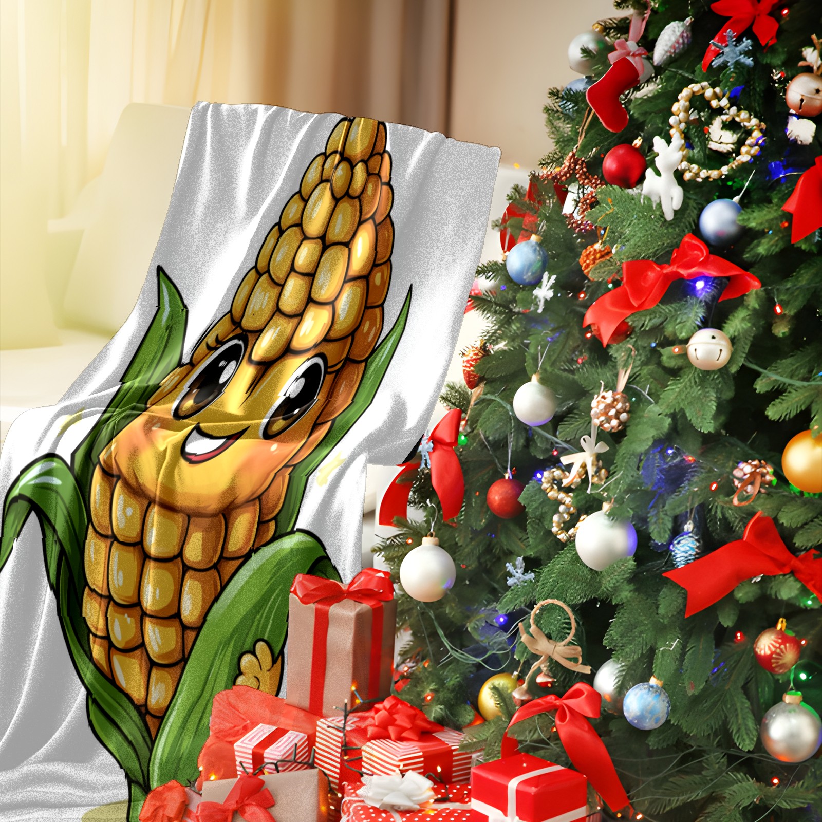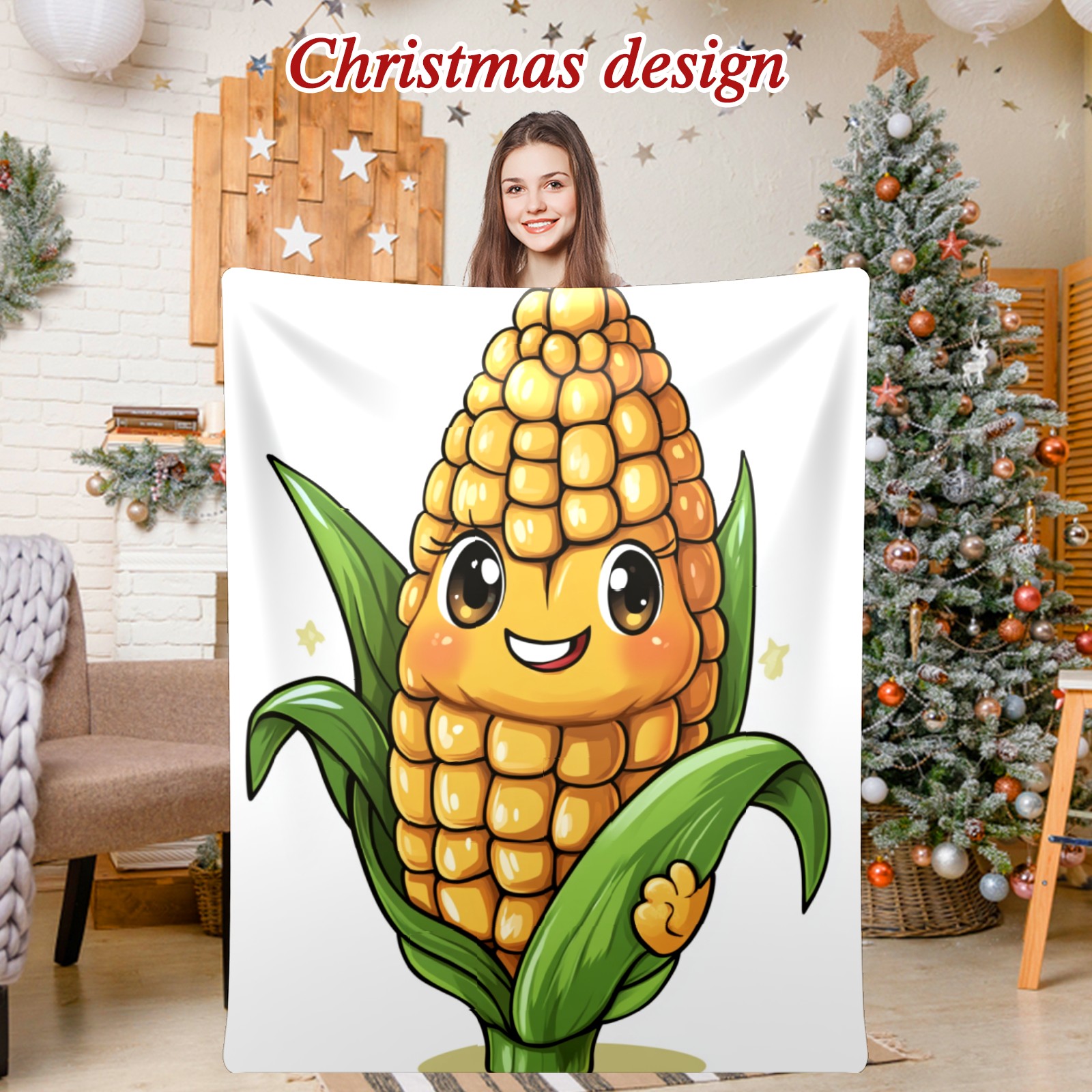 Премиальная фланелевая одеяло Gentle Expression Corn Character Pattern.