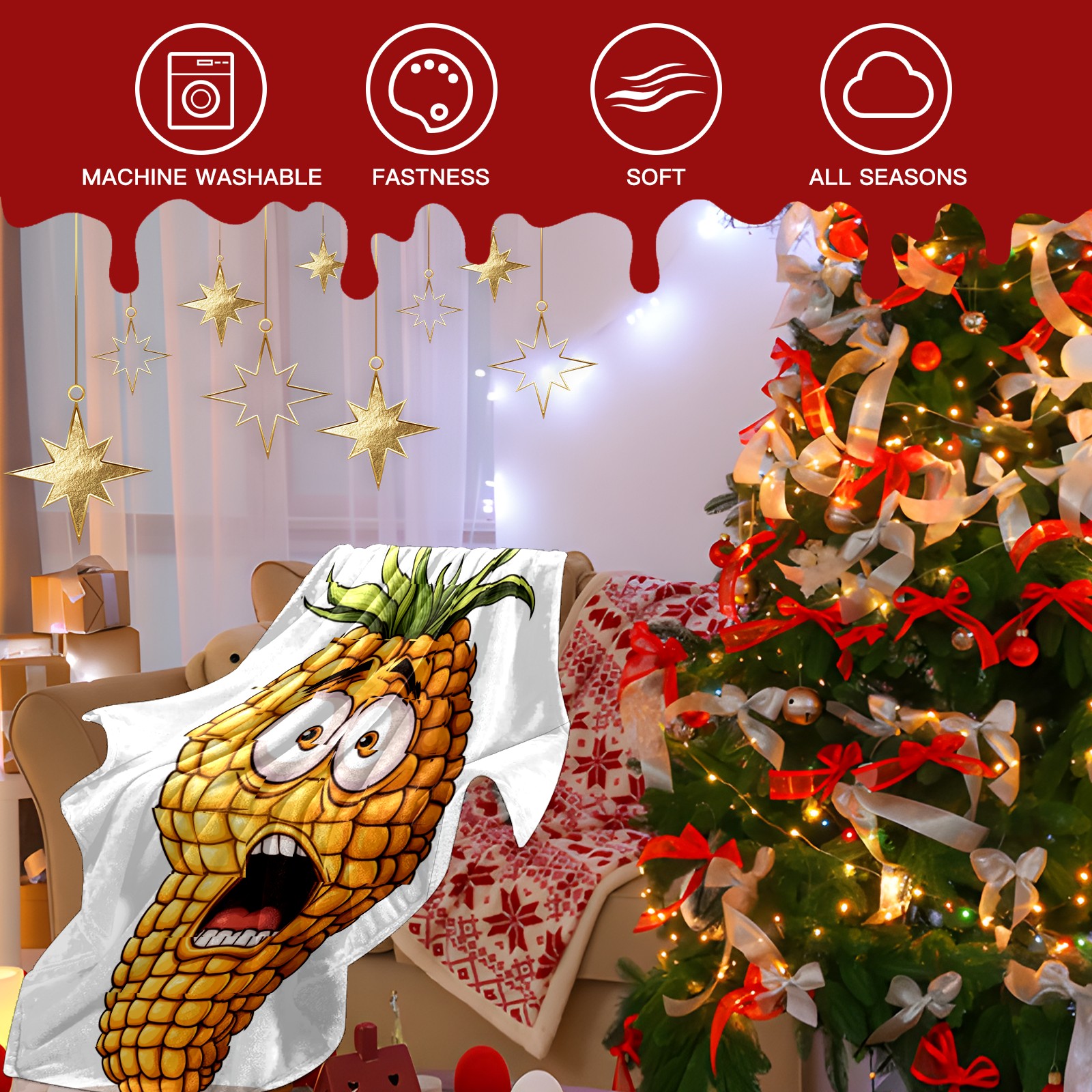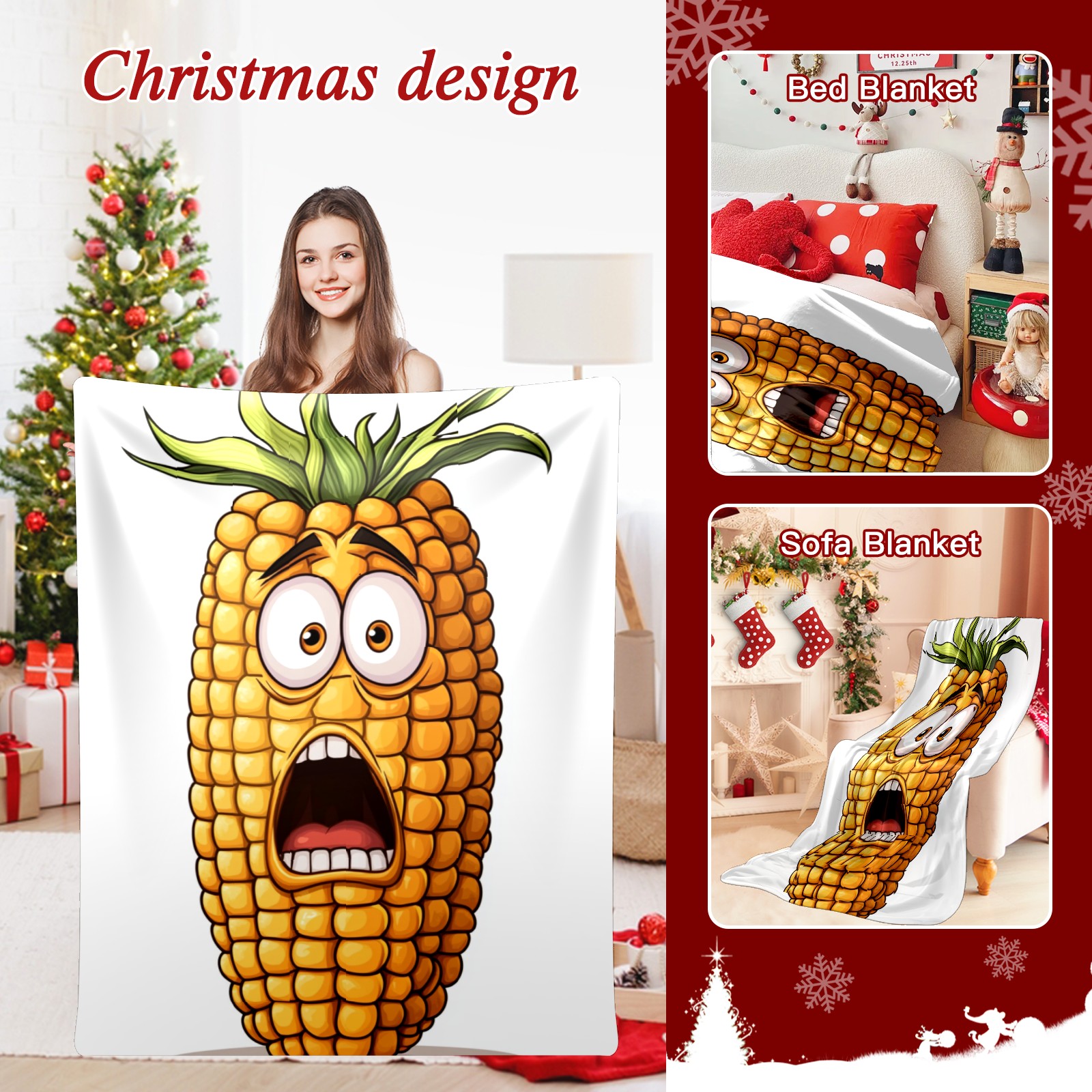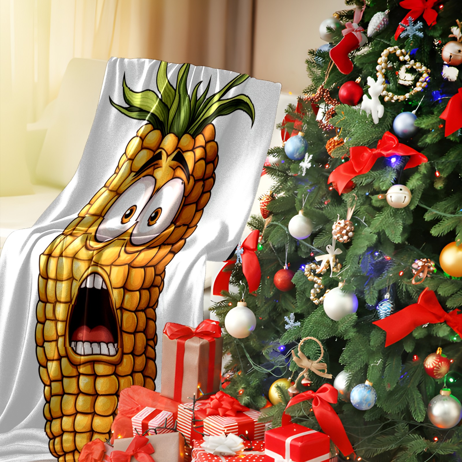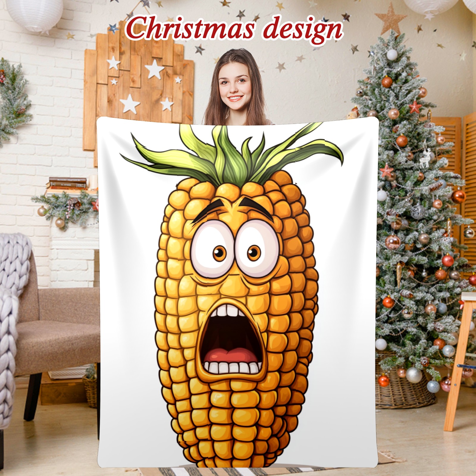 Премиальная фланелевая одеяло Surprised Corn Character Pattern