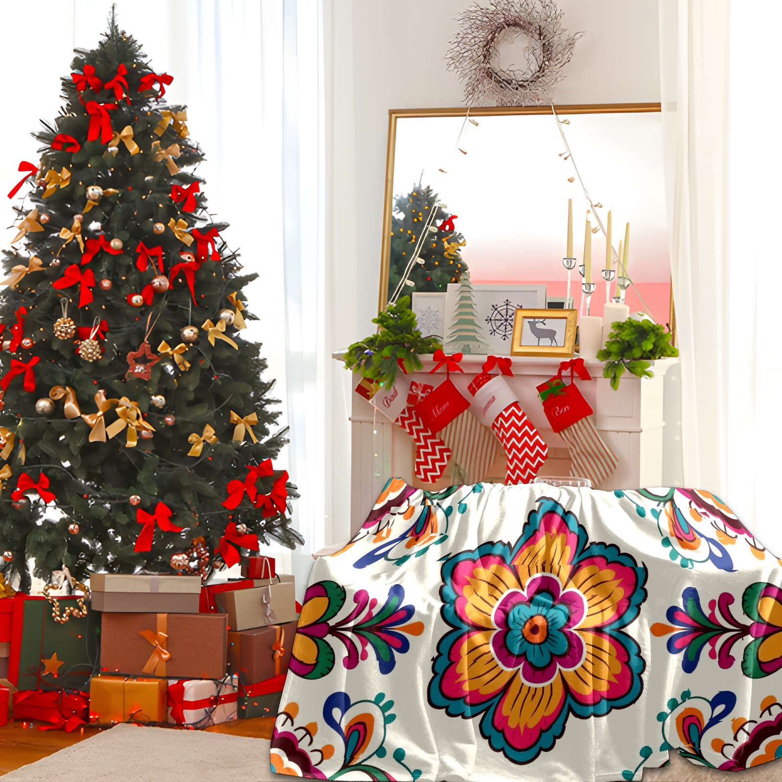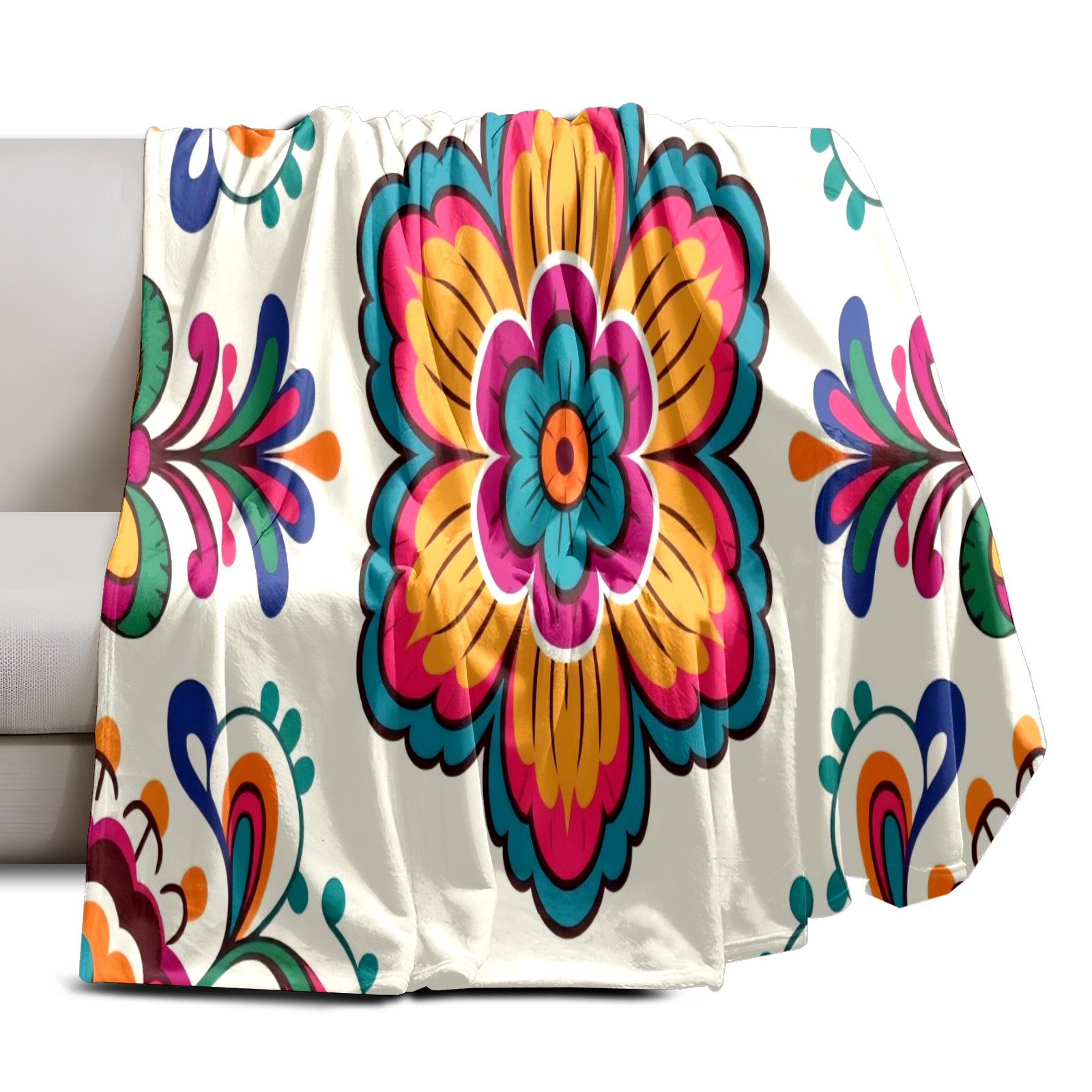 Премиальная фланелевая одеяло Mexican Flowers(029)
