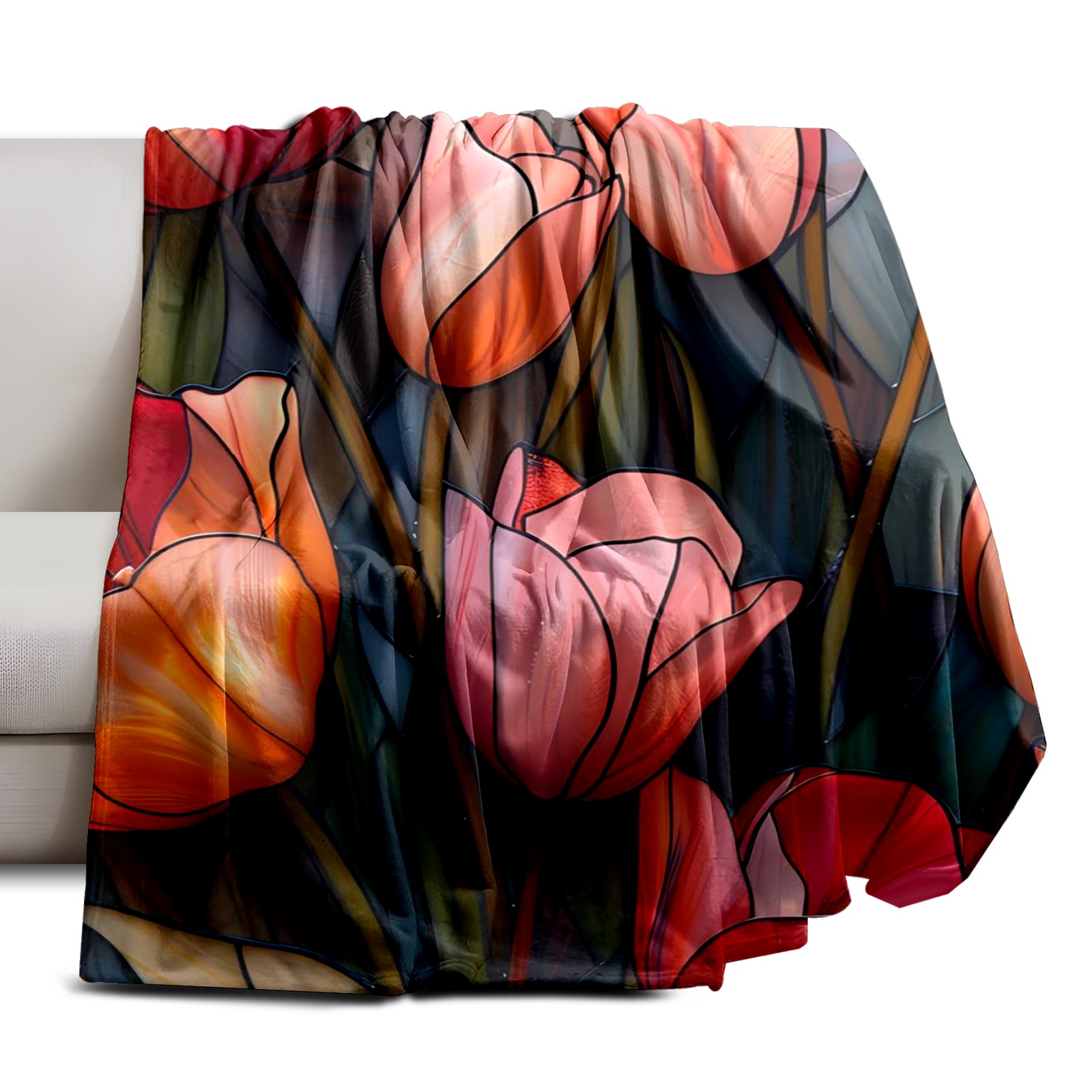 Премиальная фланелевая одеяло Pink Floral Tulips