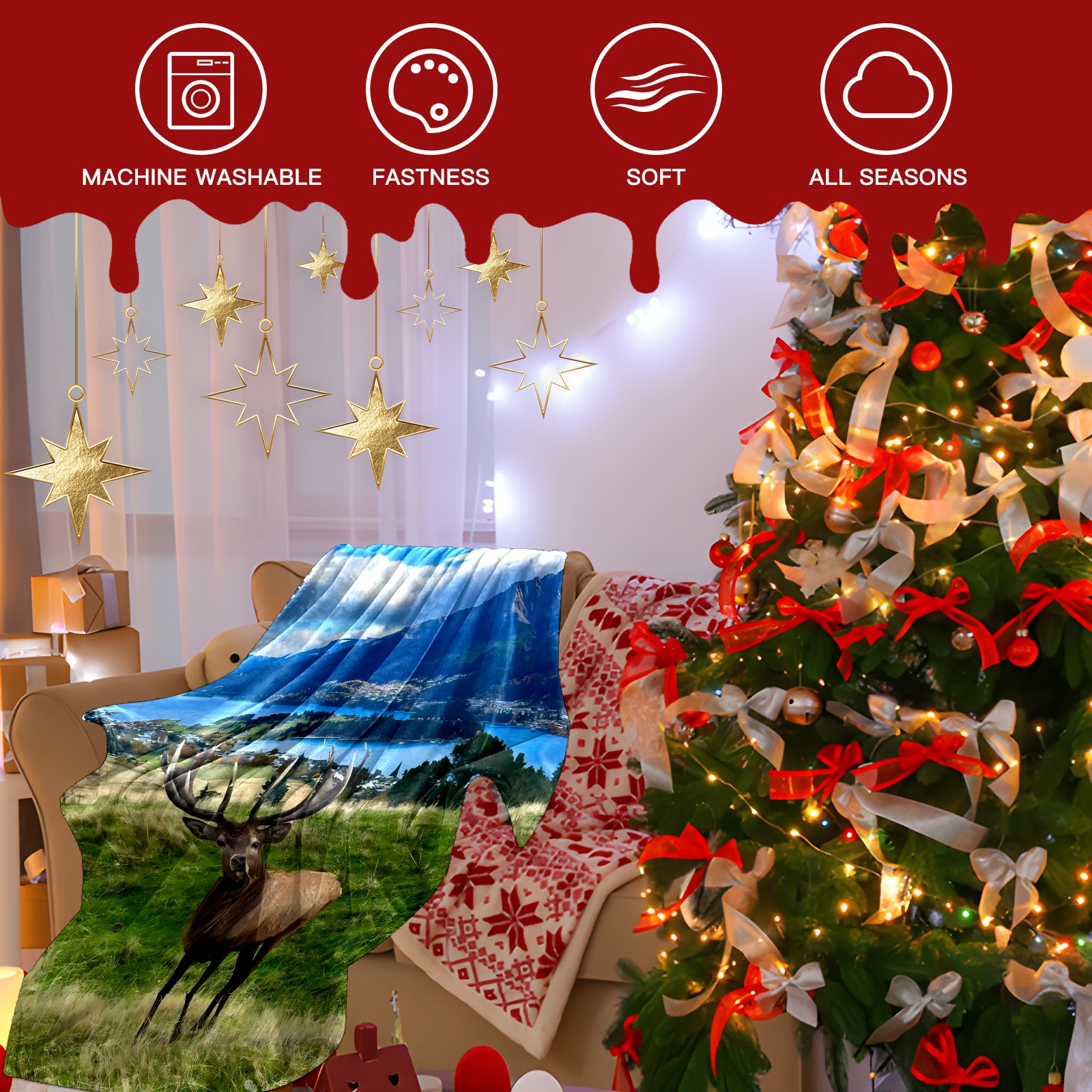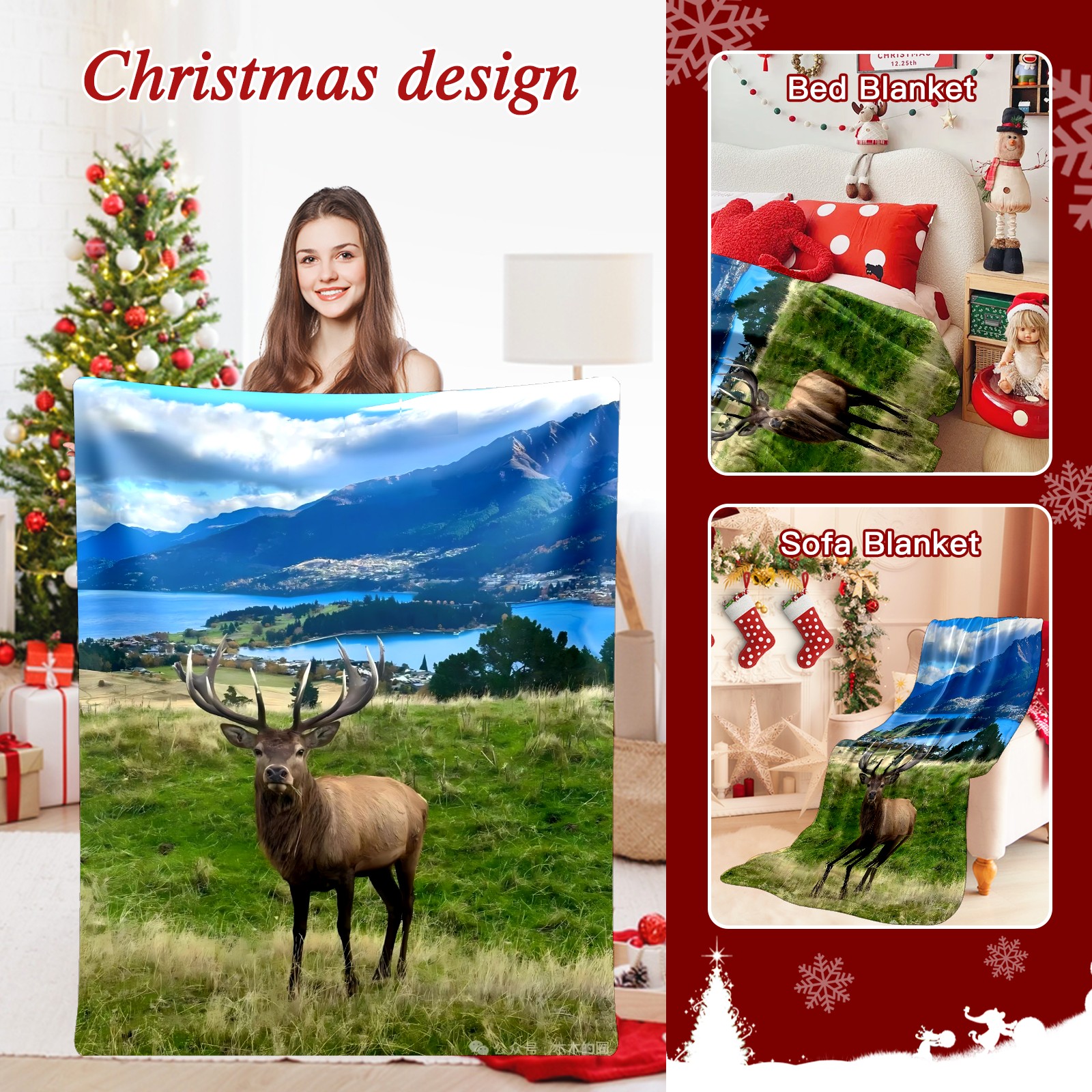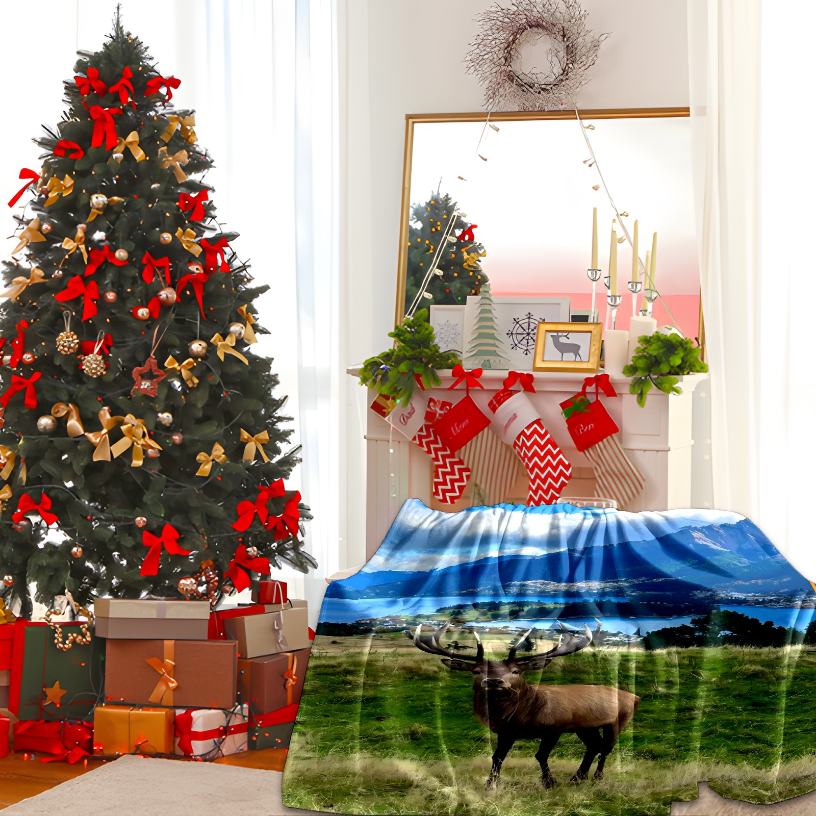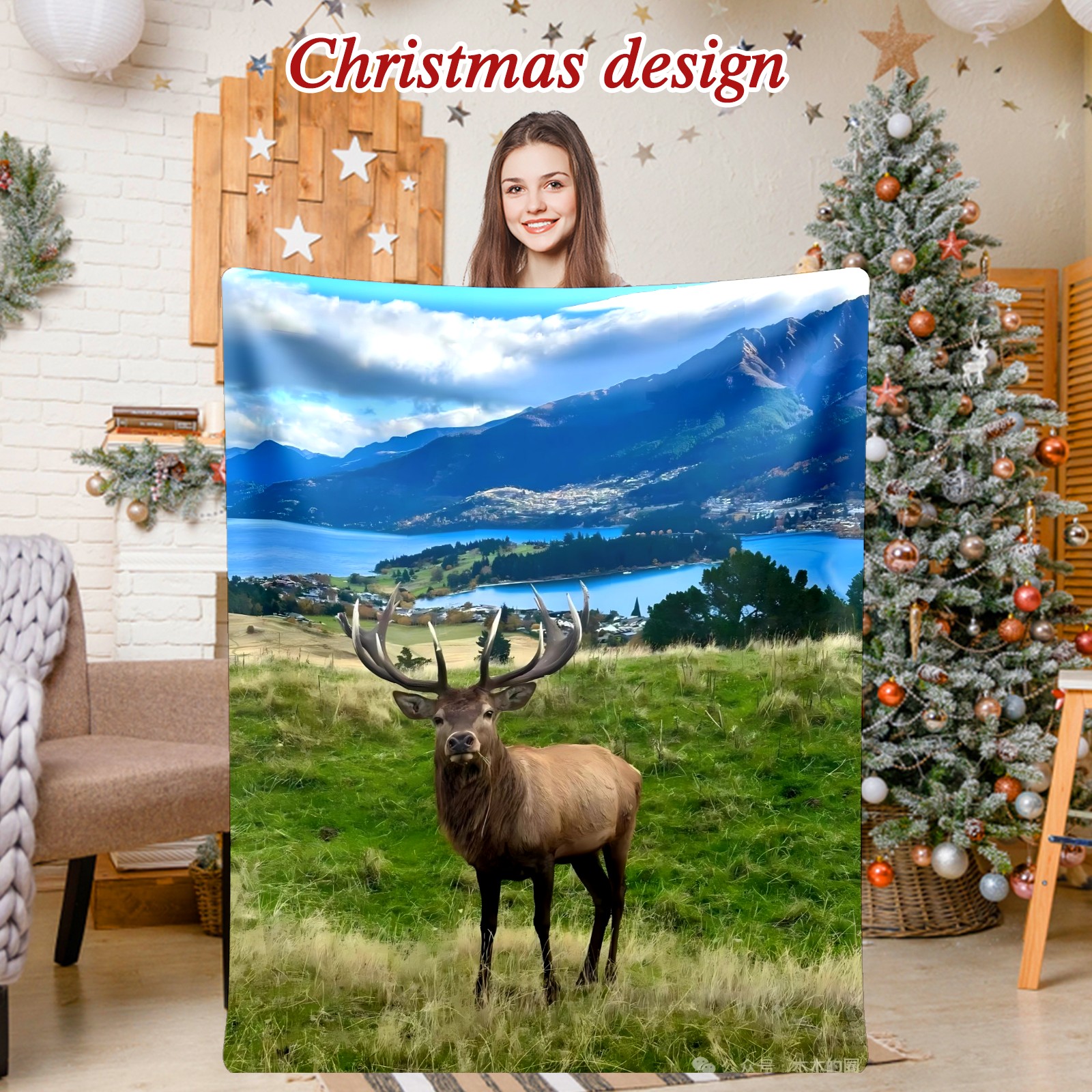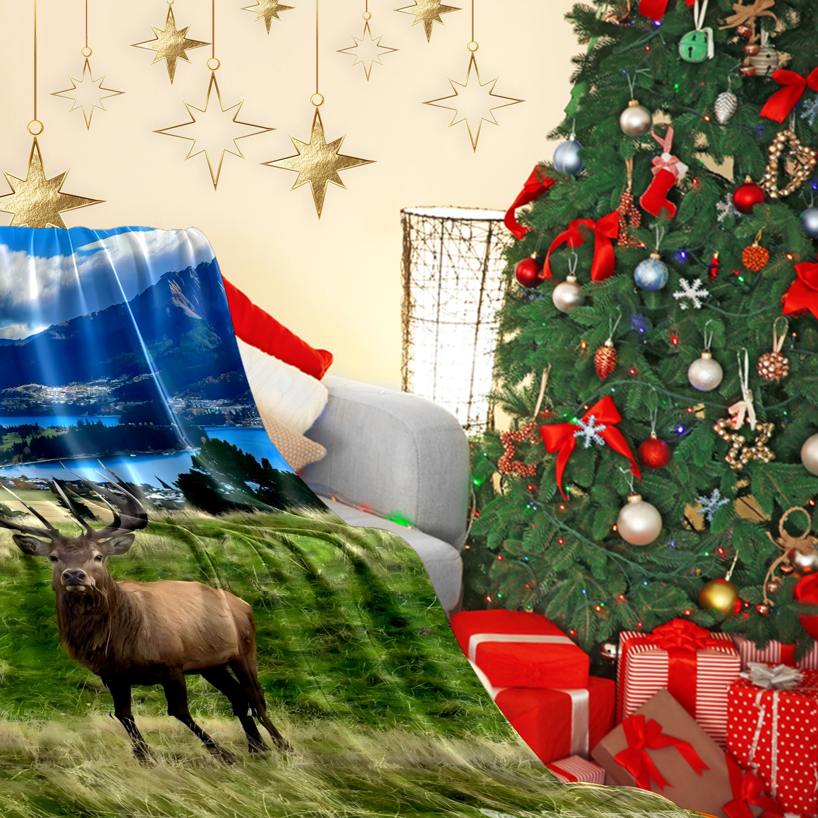 Премиальная фланелевая одеяло Elk By Lake 1