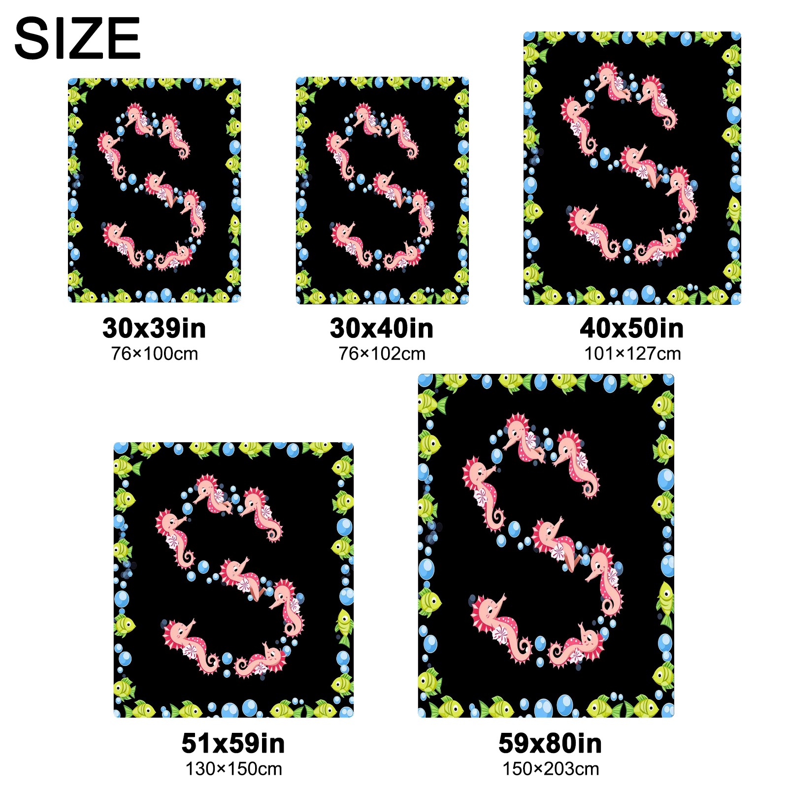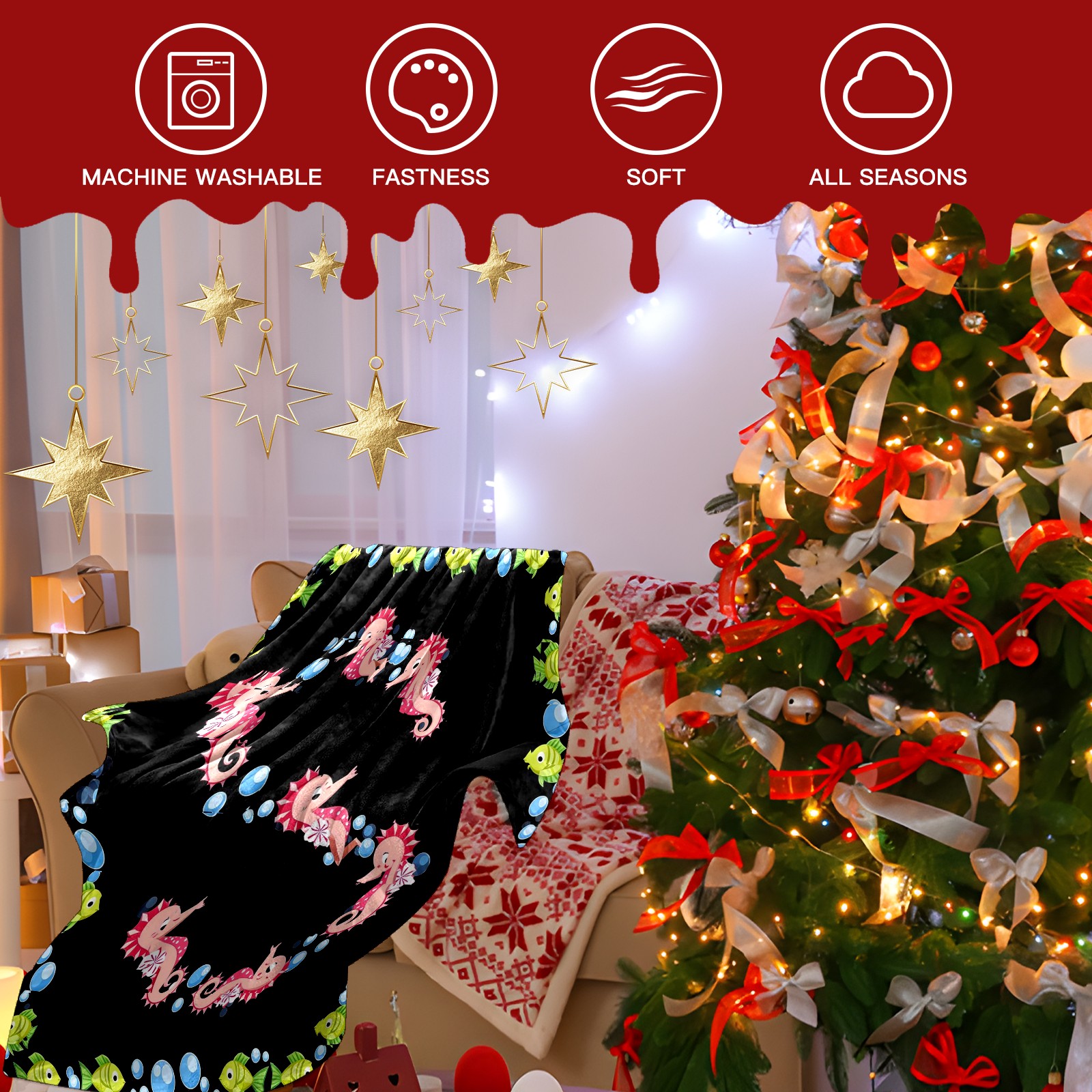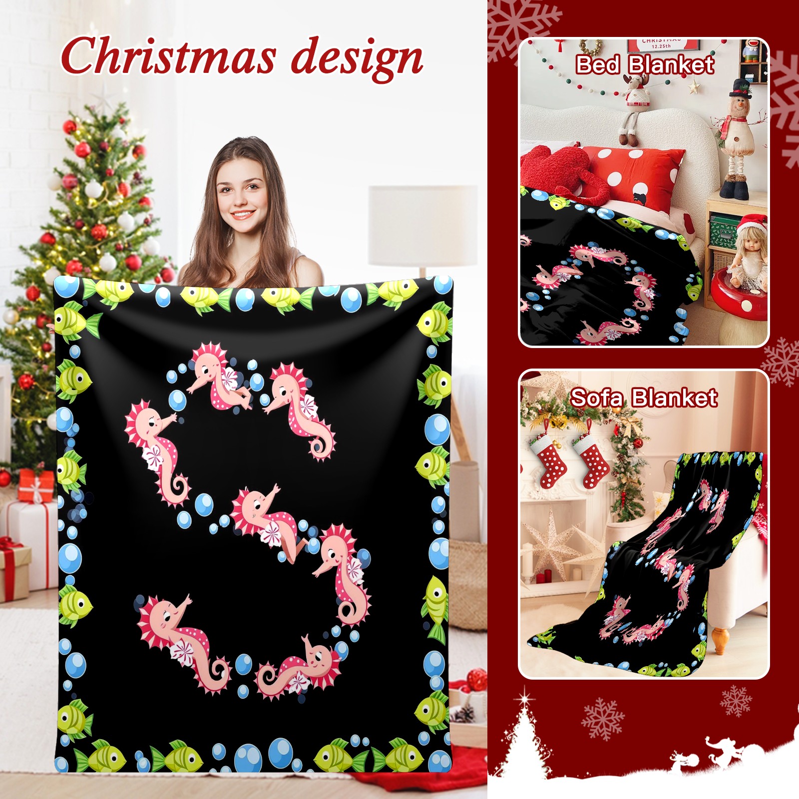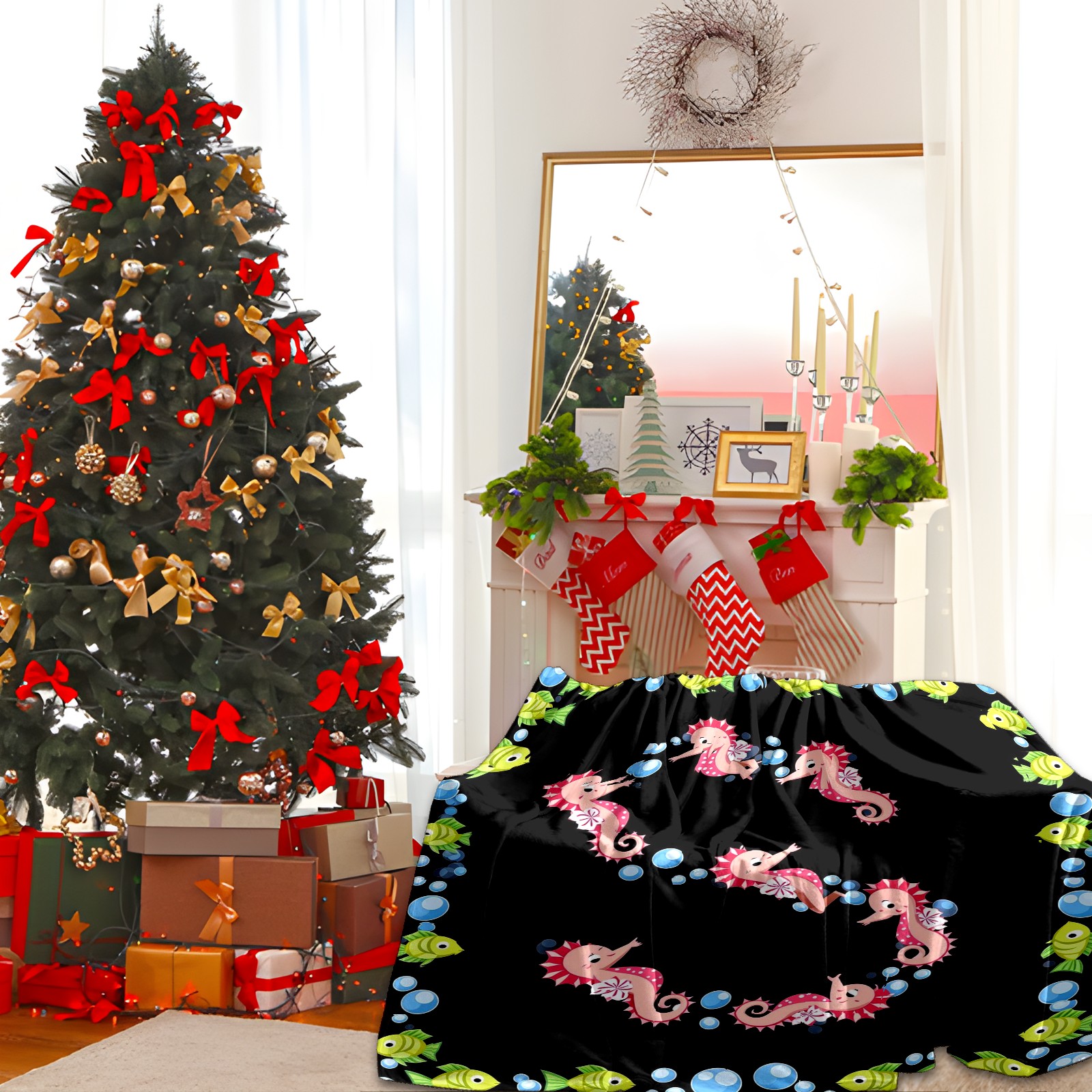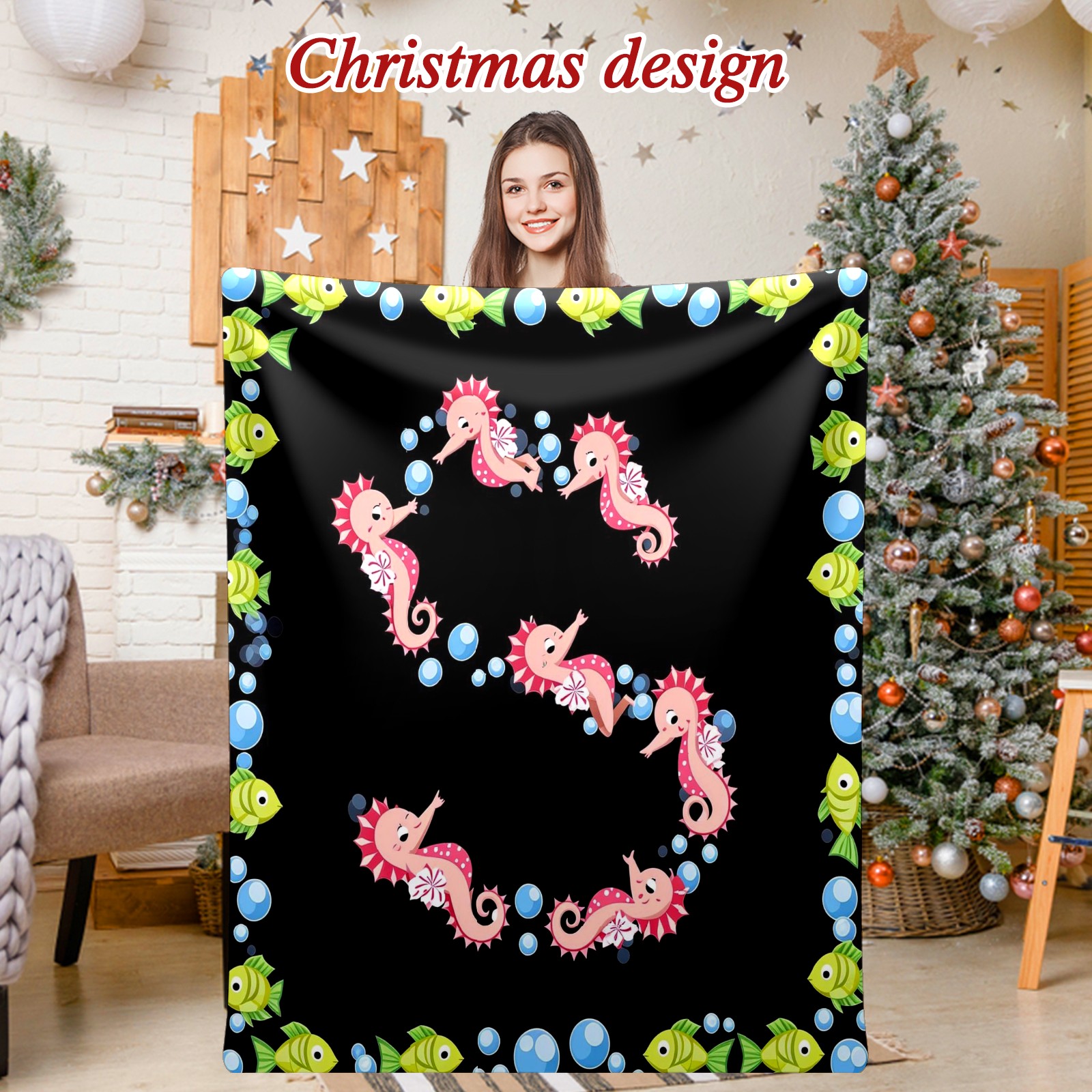Премиальная фланелевая одеяло Seahorse Fish Black