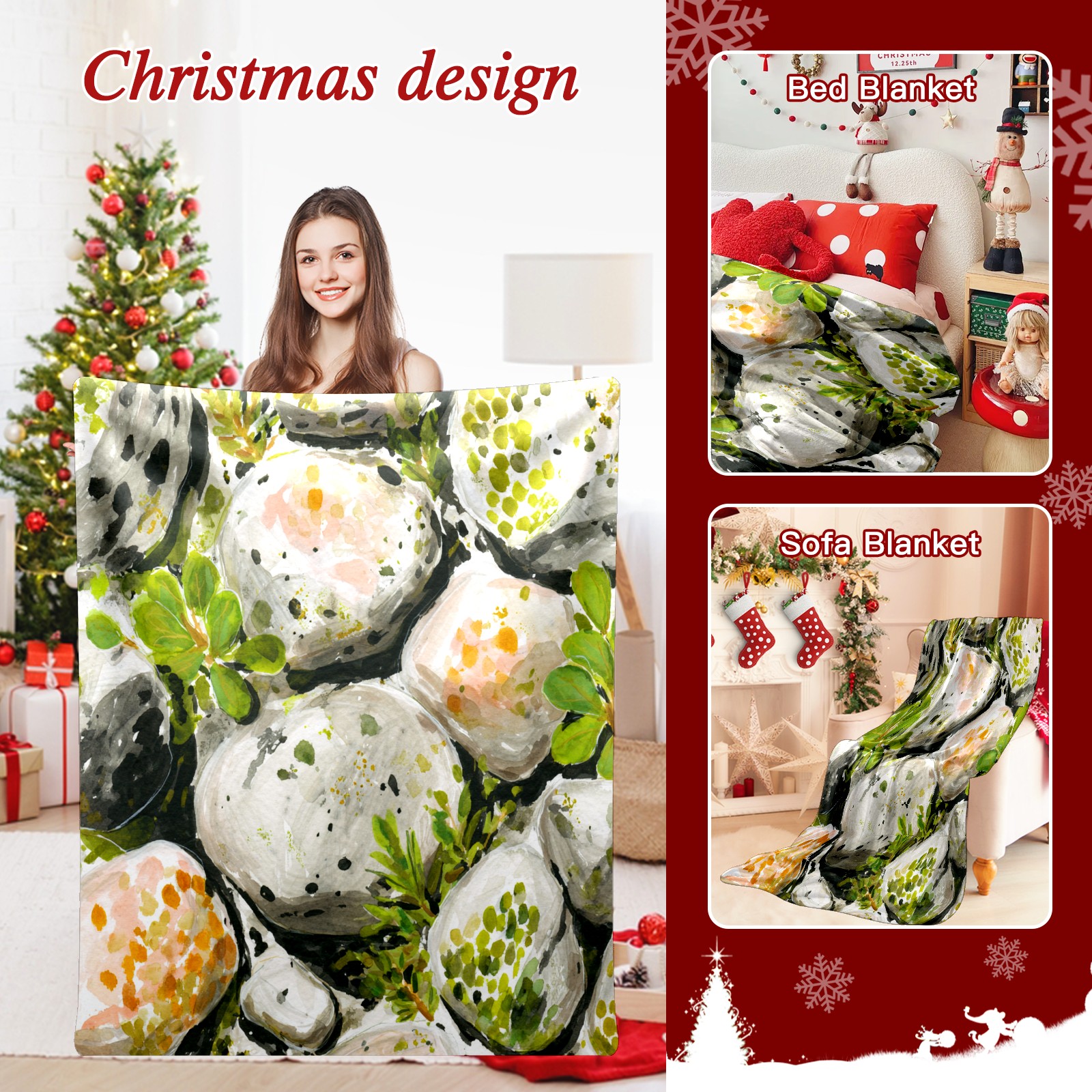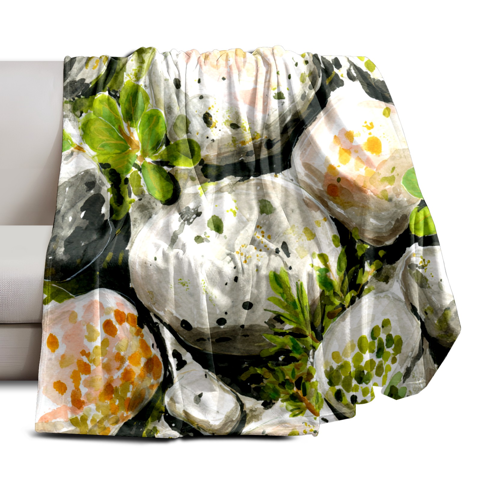 Премиальная фланелевая одеяло Watercolor Stones GrayWhite