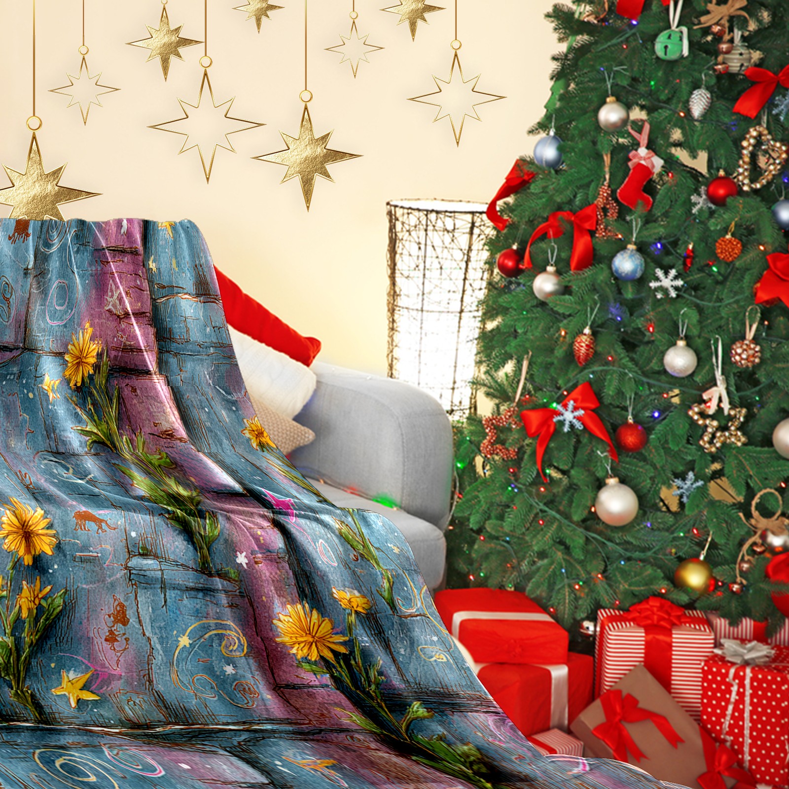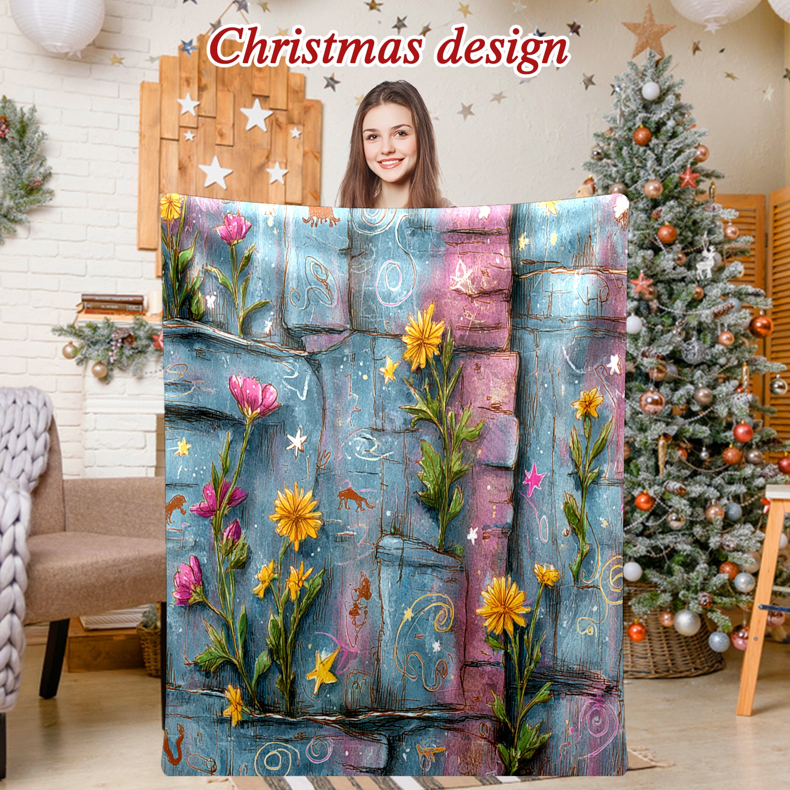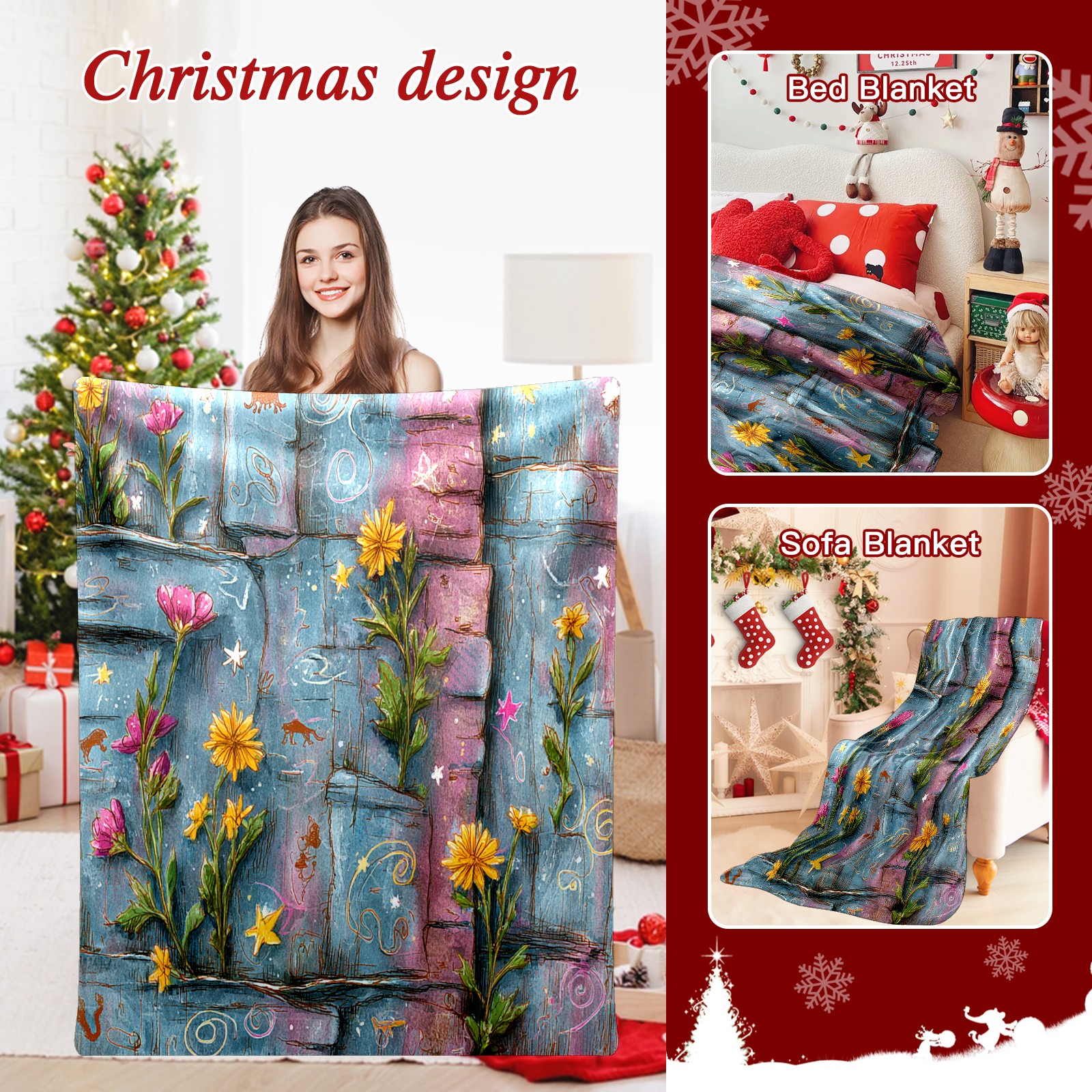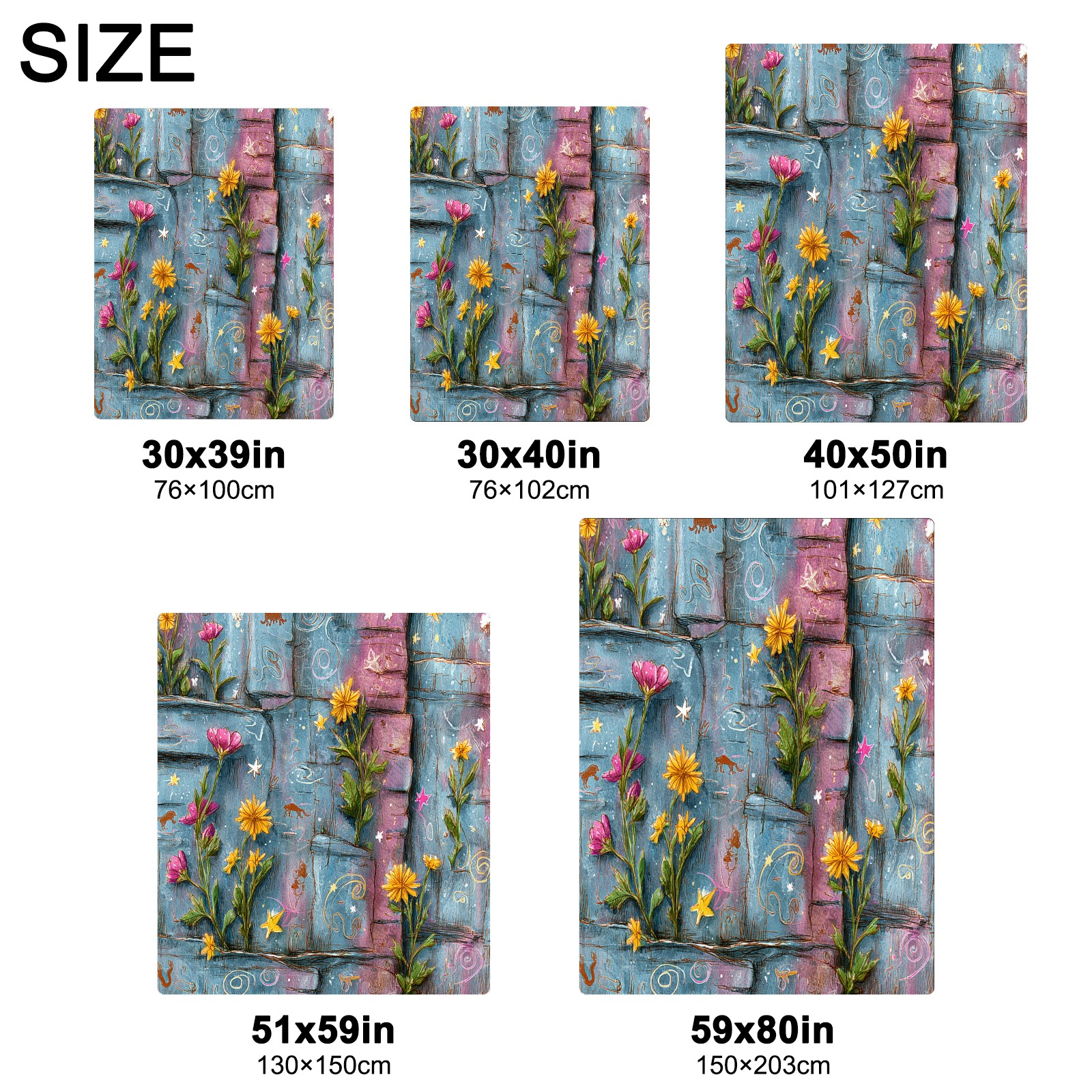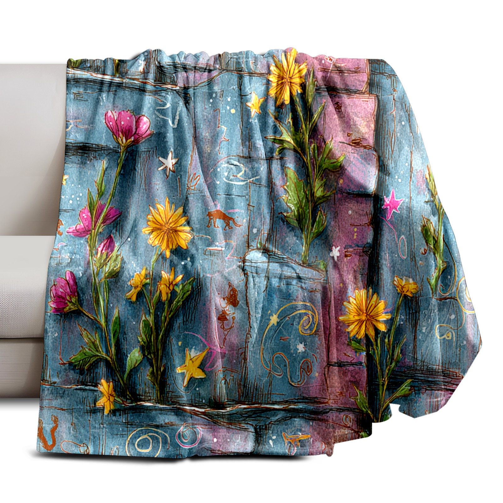 Премиальная фланелевая одеяло Brick Wall Flowers Yellow
