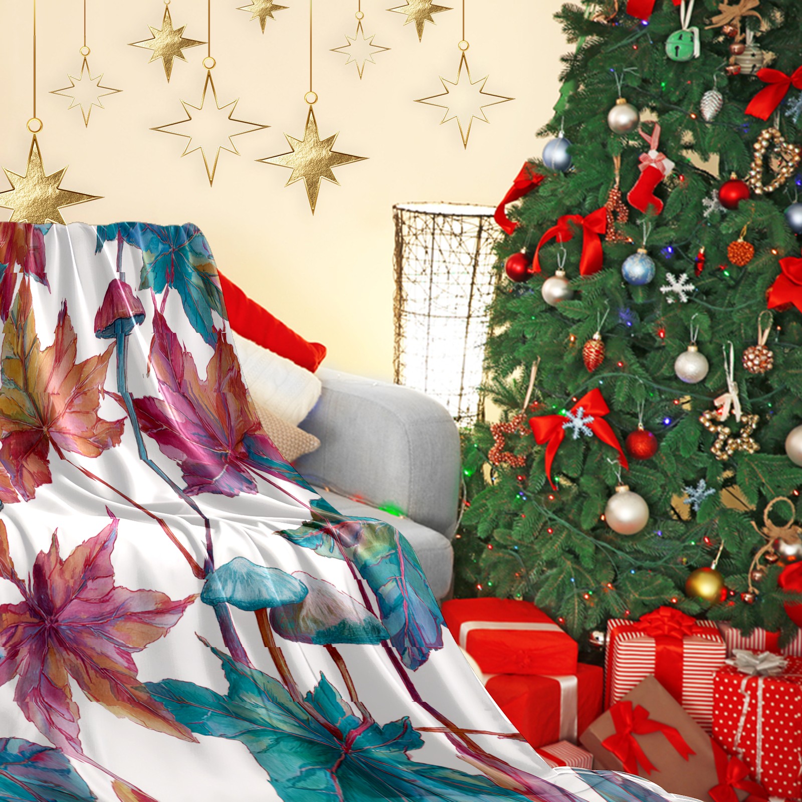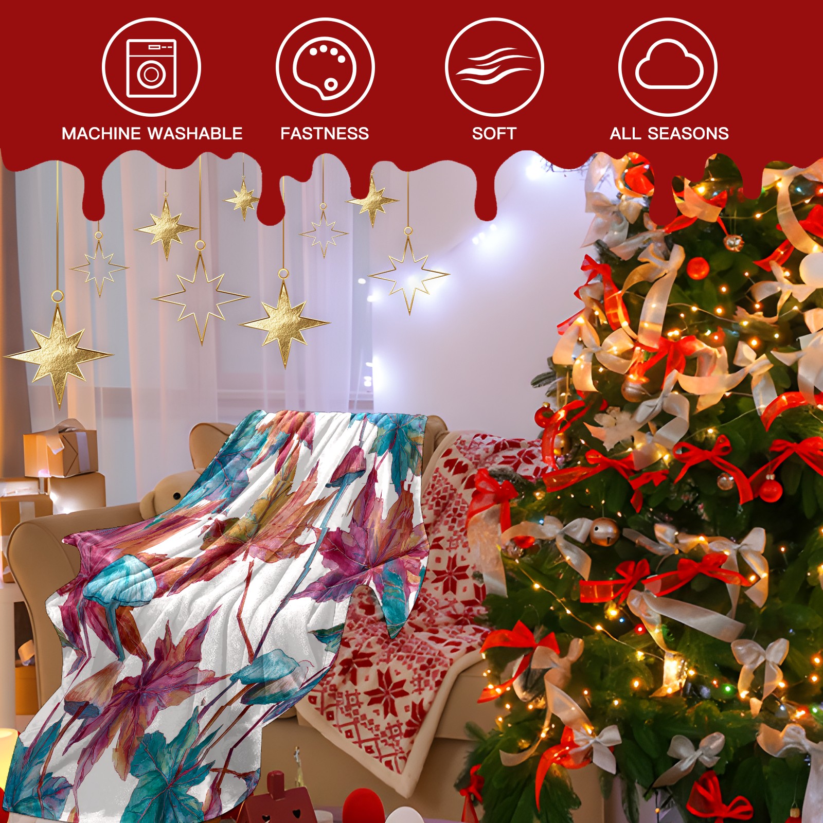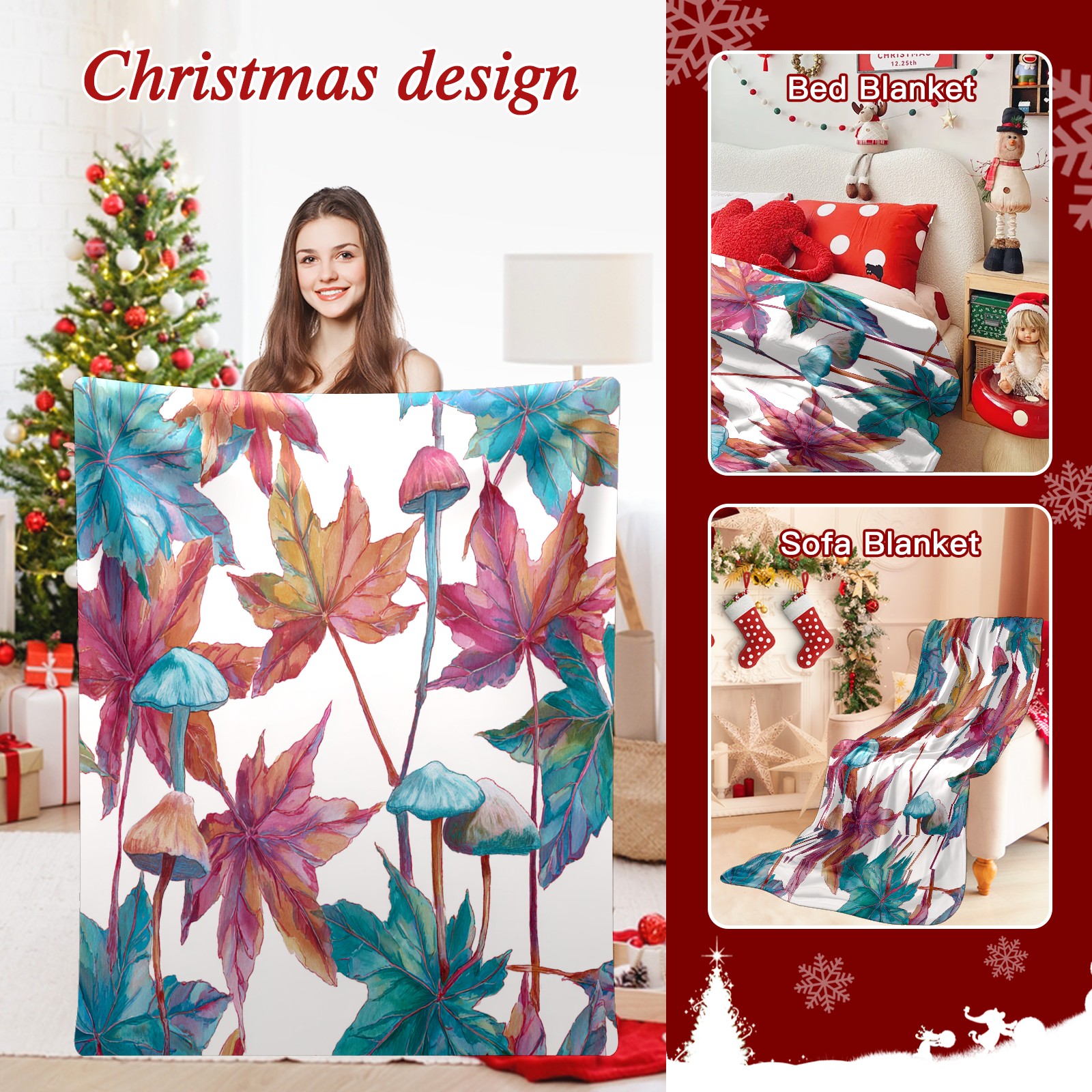 Премиальная фланелевая одеяло Maple Leaf BlueRed