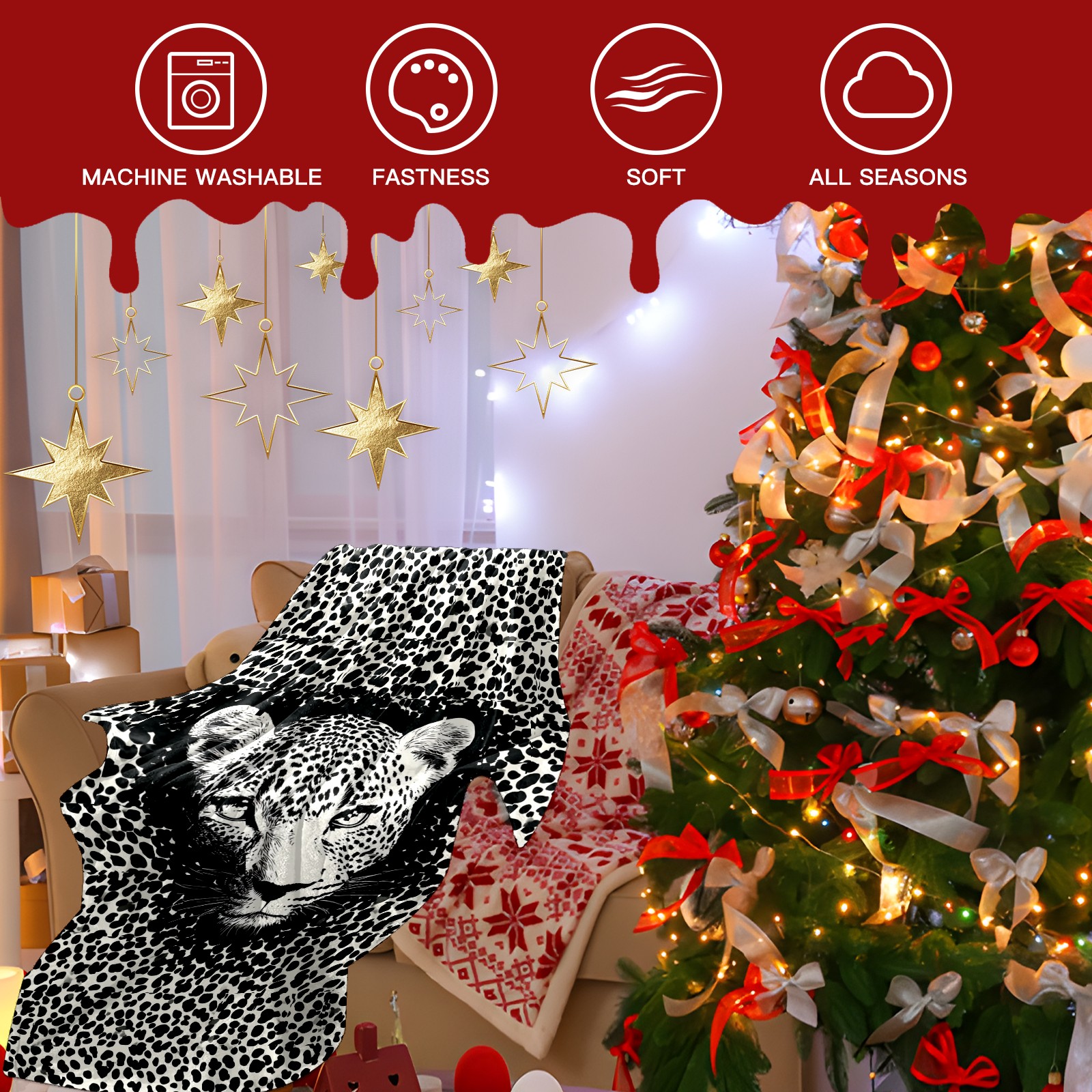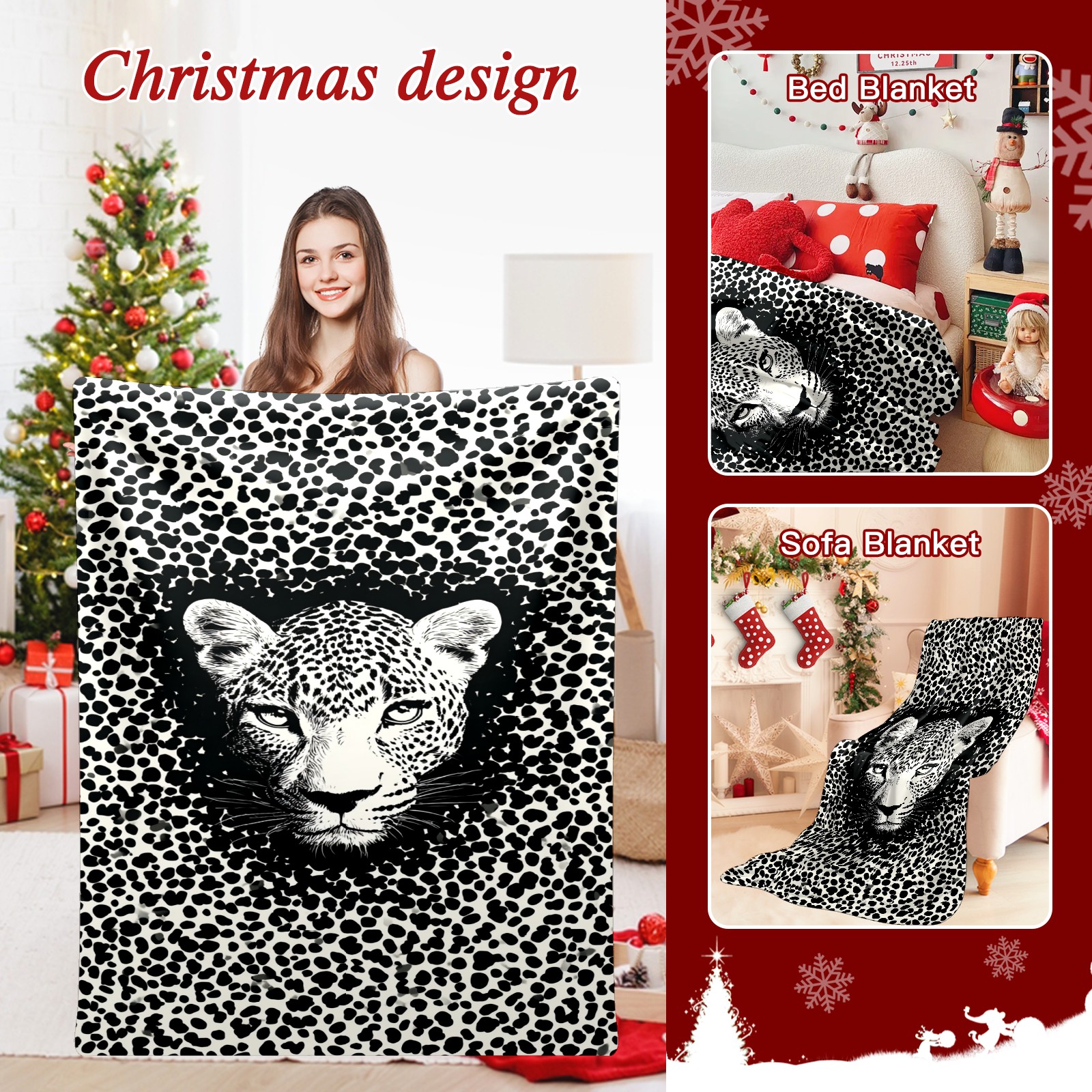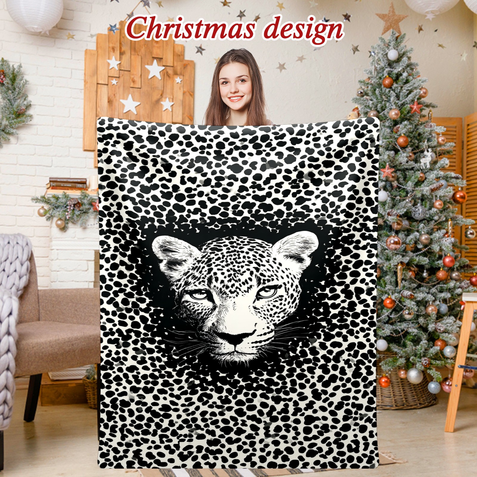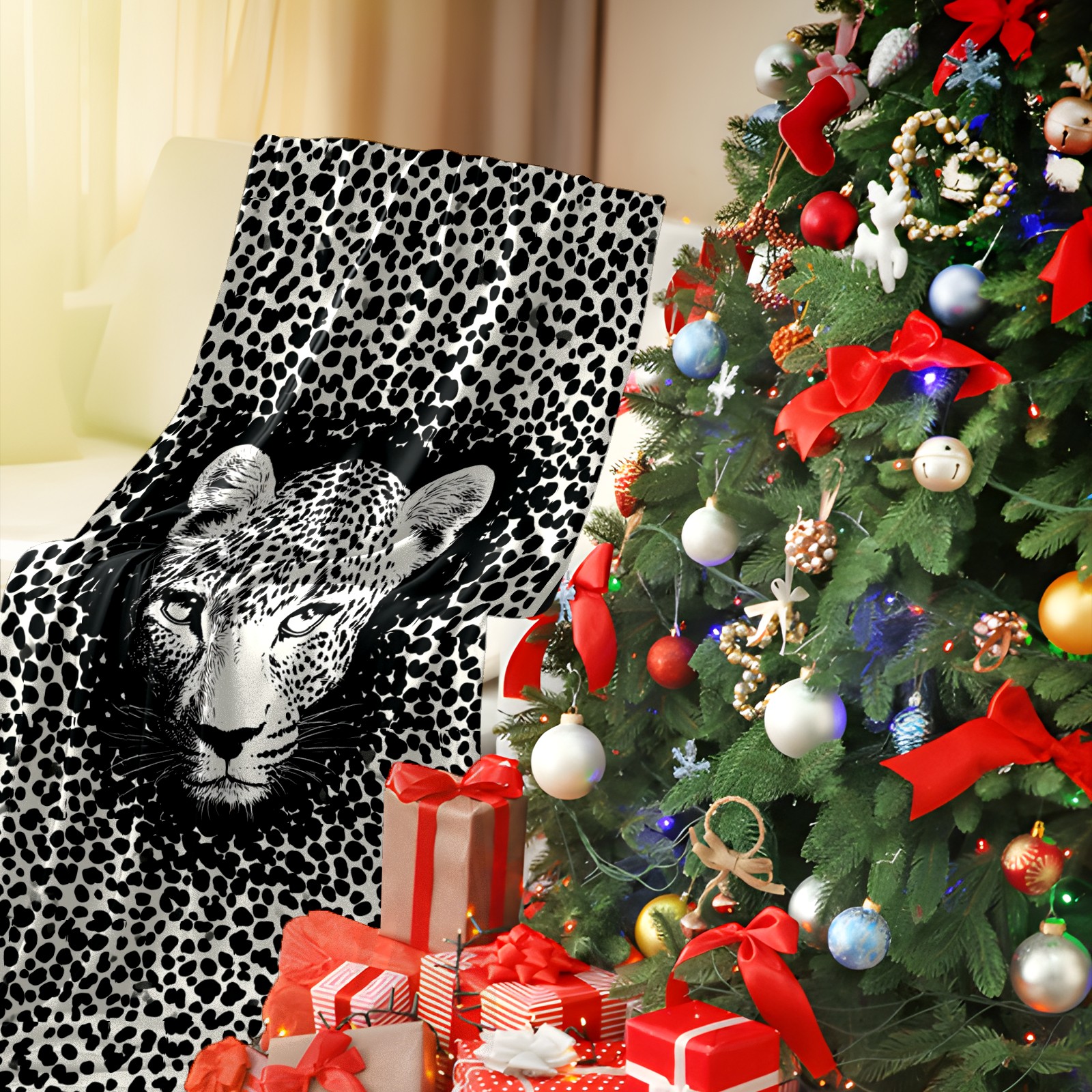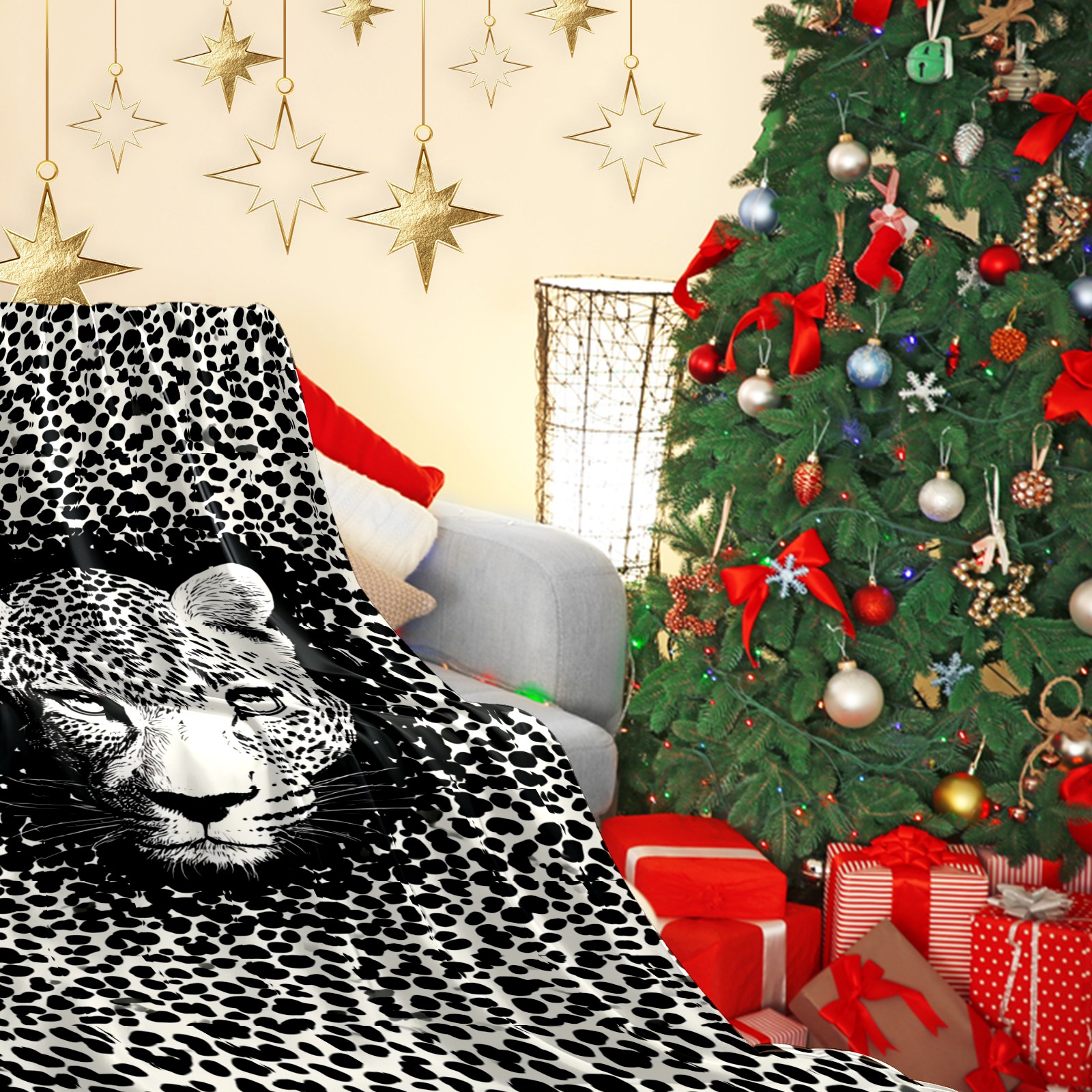 Премиальная фланелевая одеяло Cheetah BlackWhite