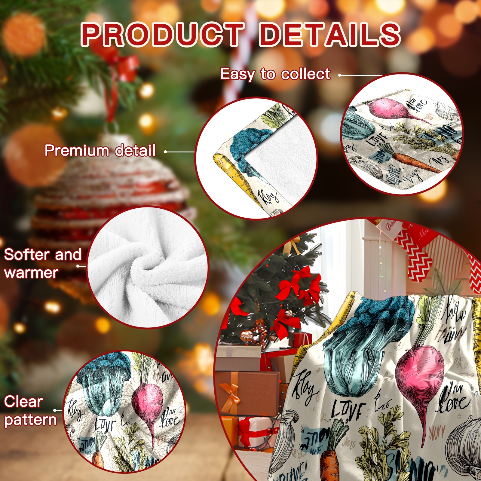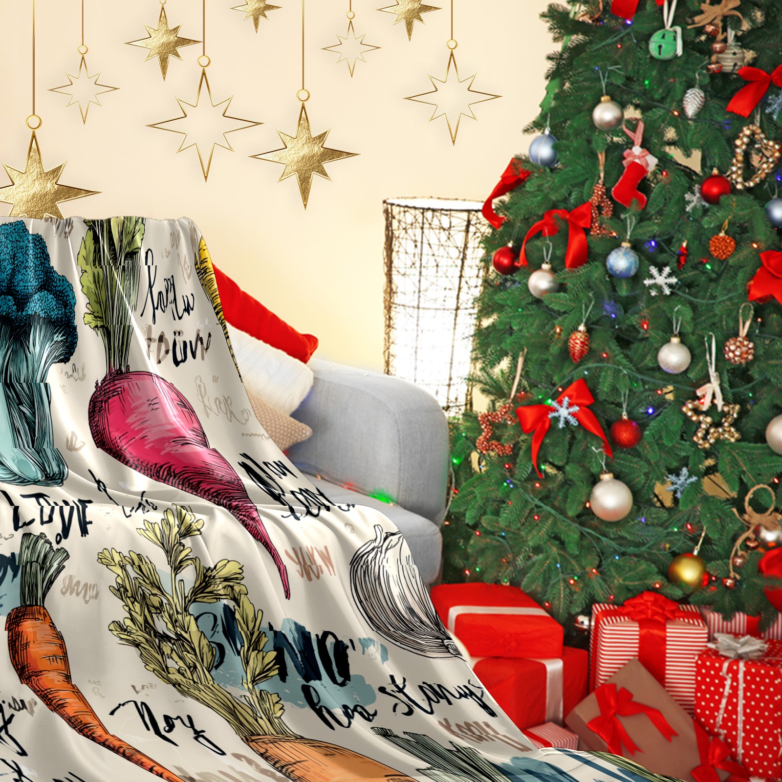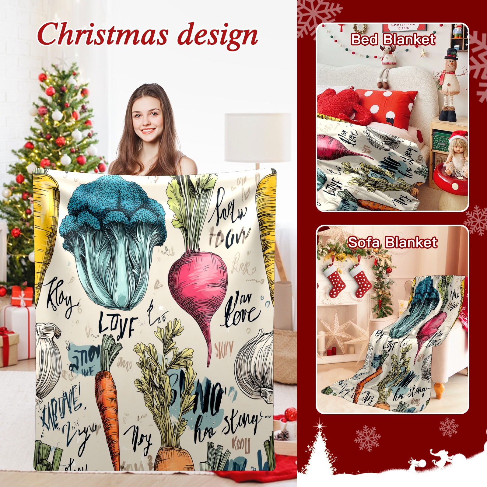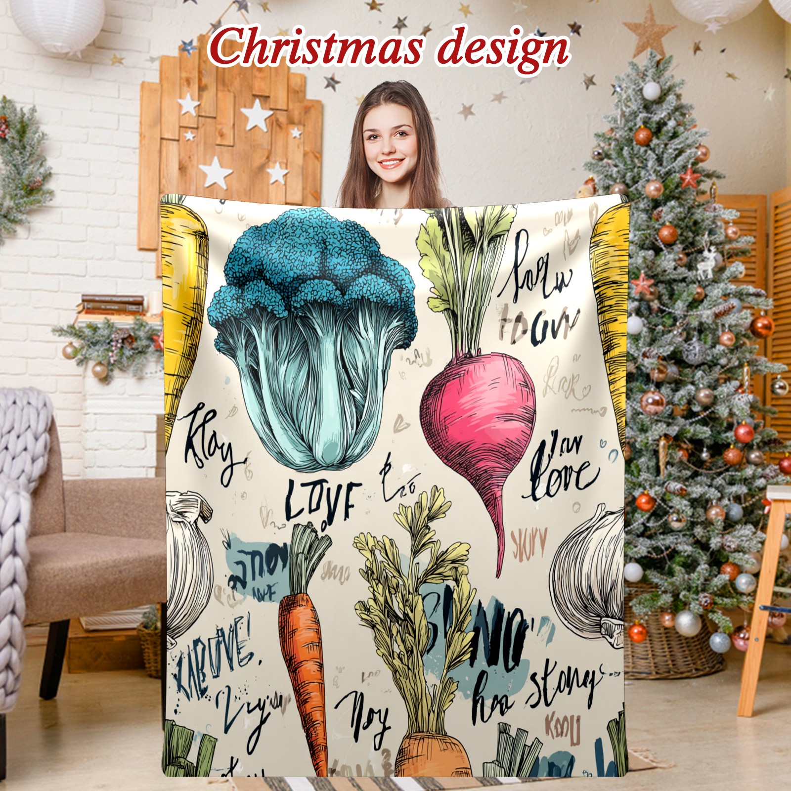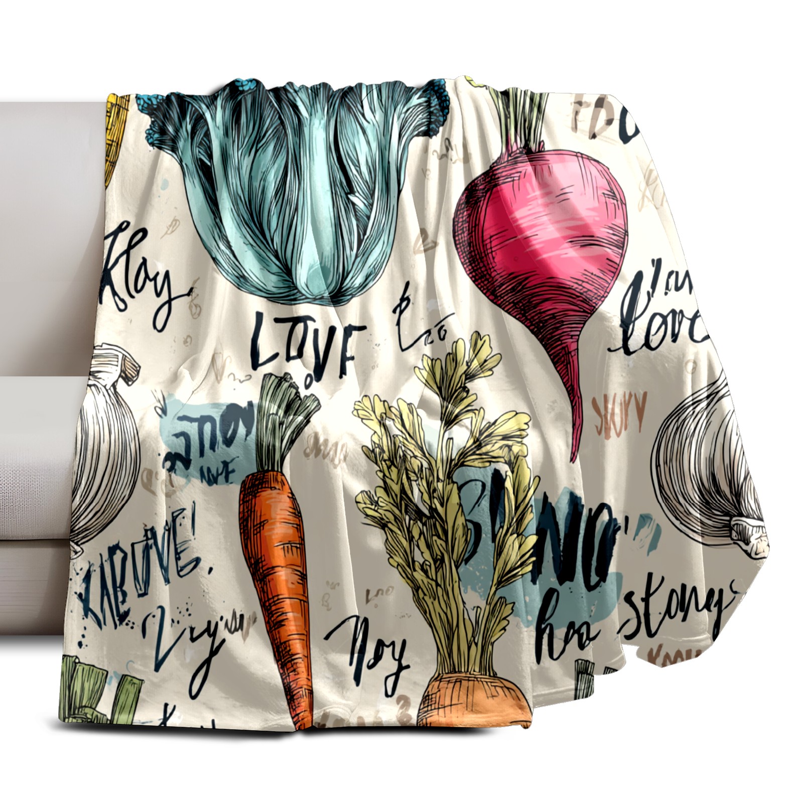 Премиальная фланелевая одеяло Vegetables GreenBrown