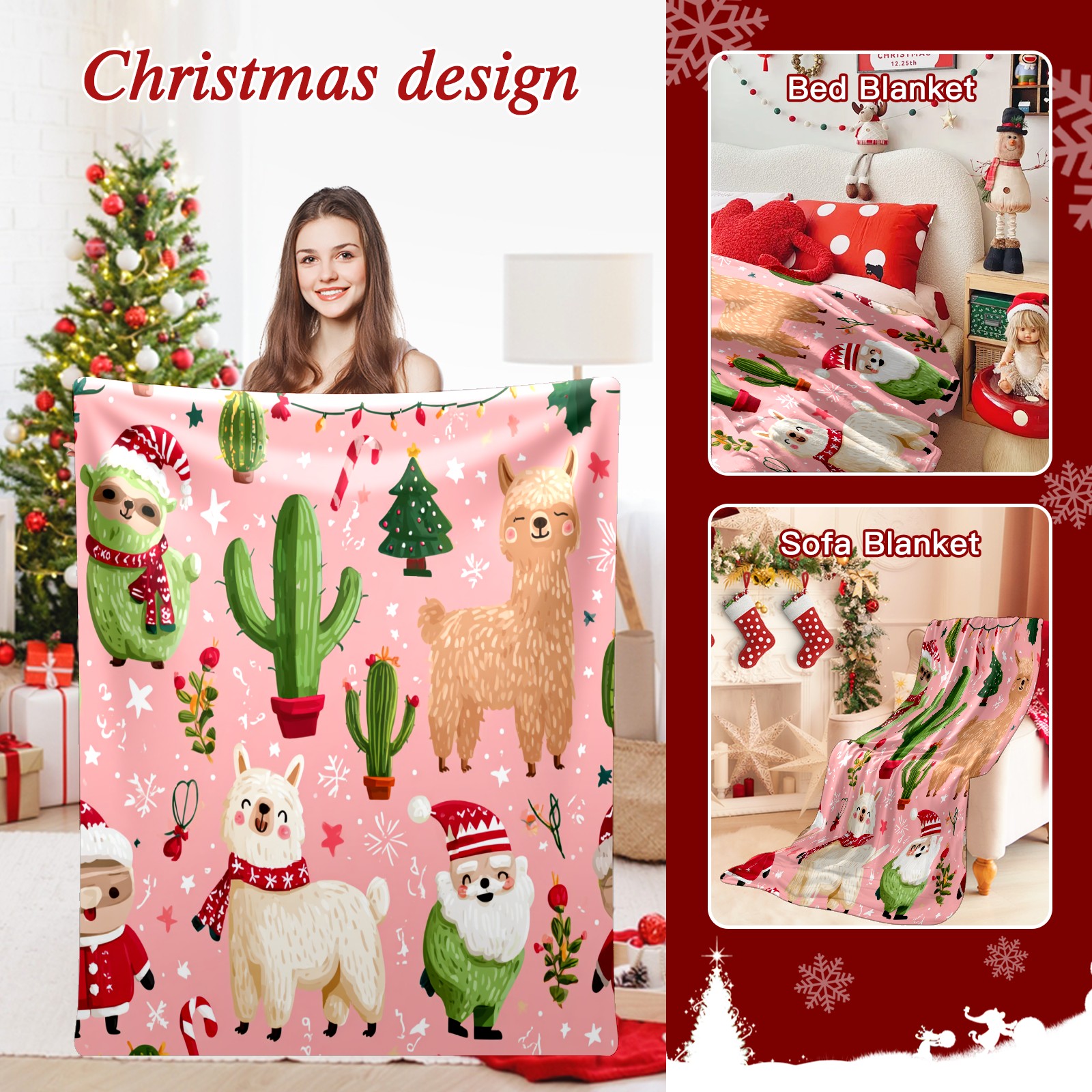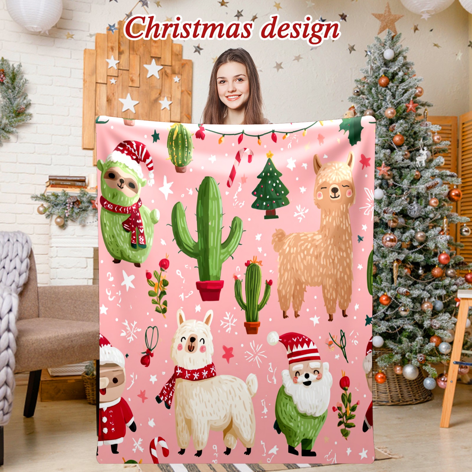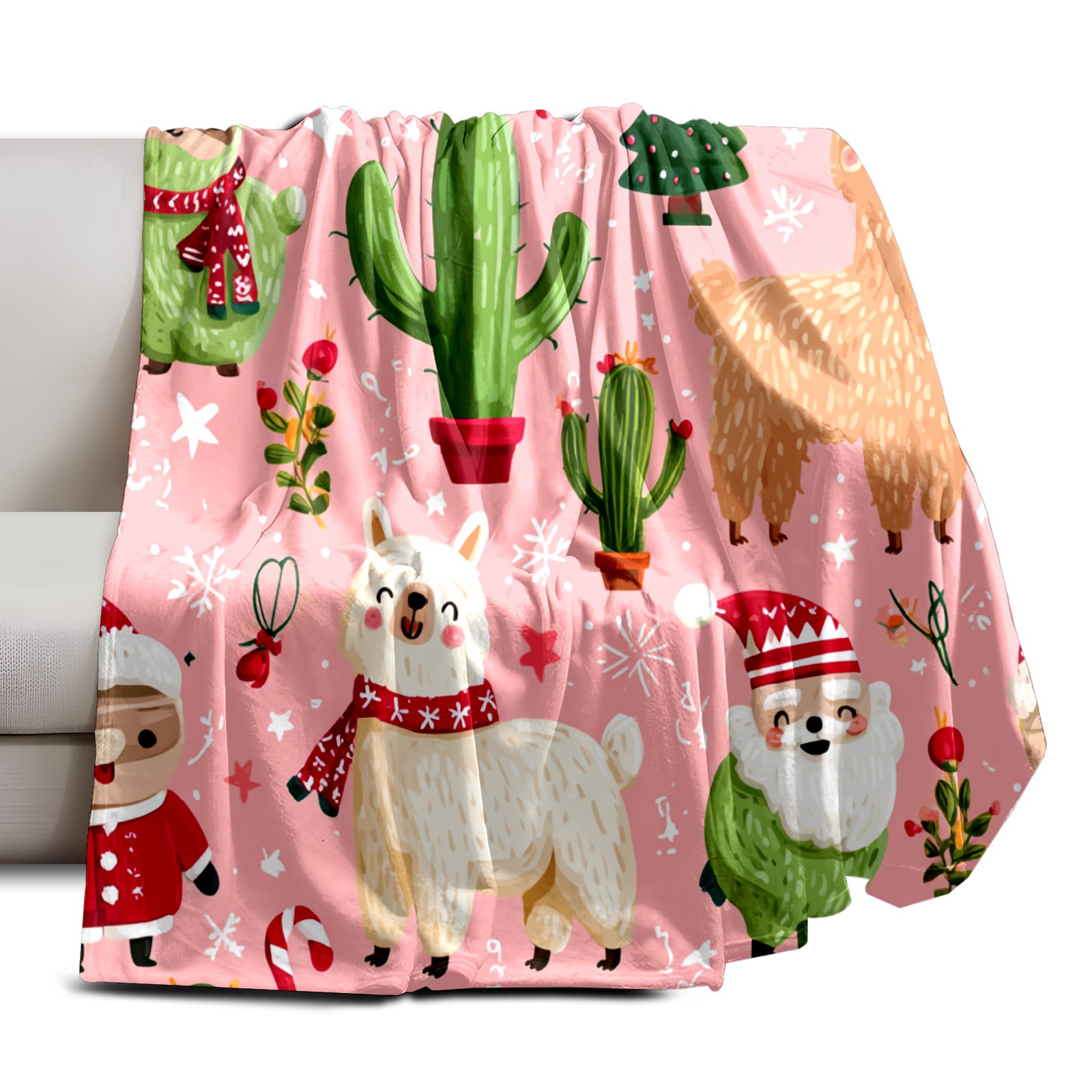 Премиальная фланелевая одеяло Christmas Llama Pink