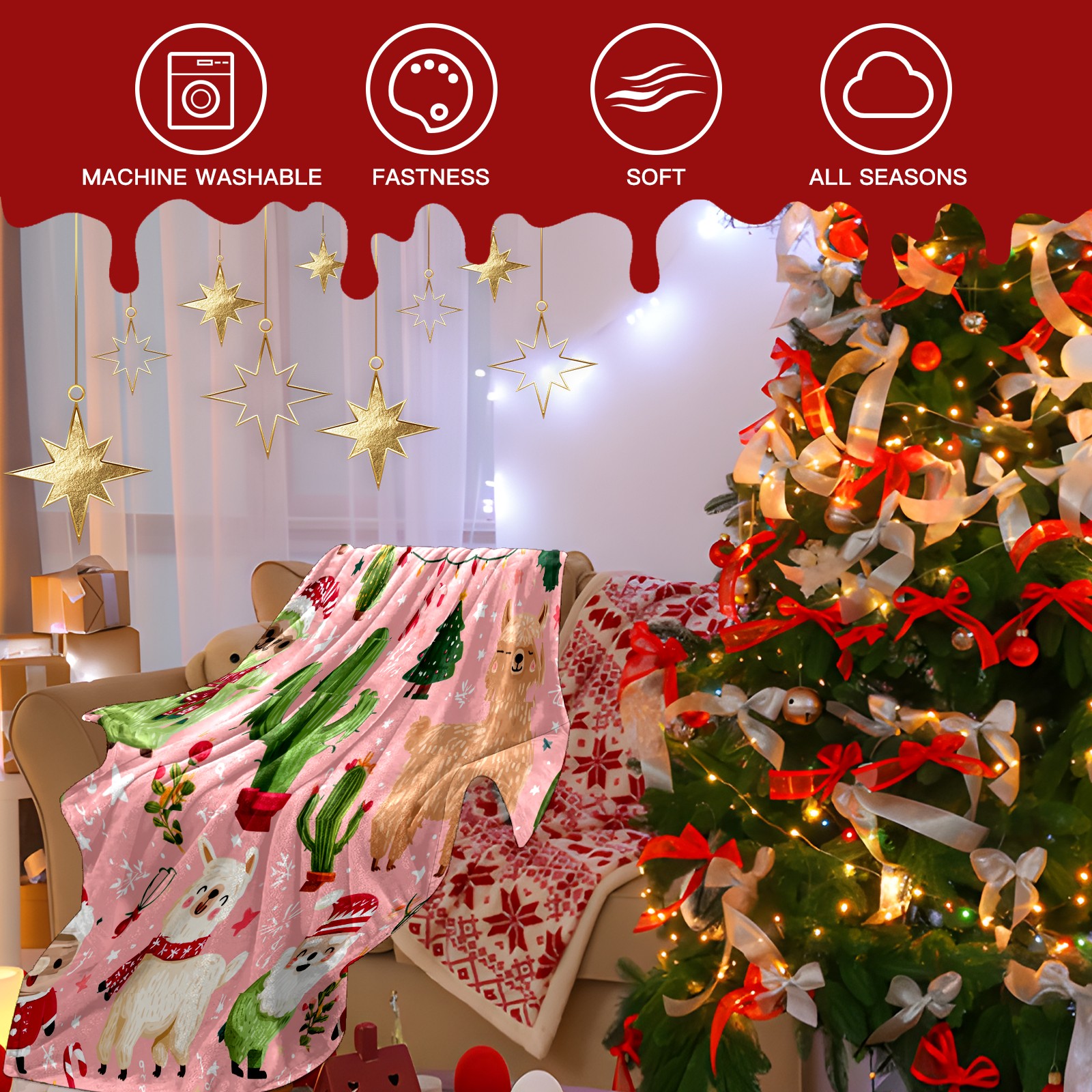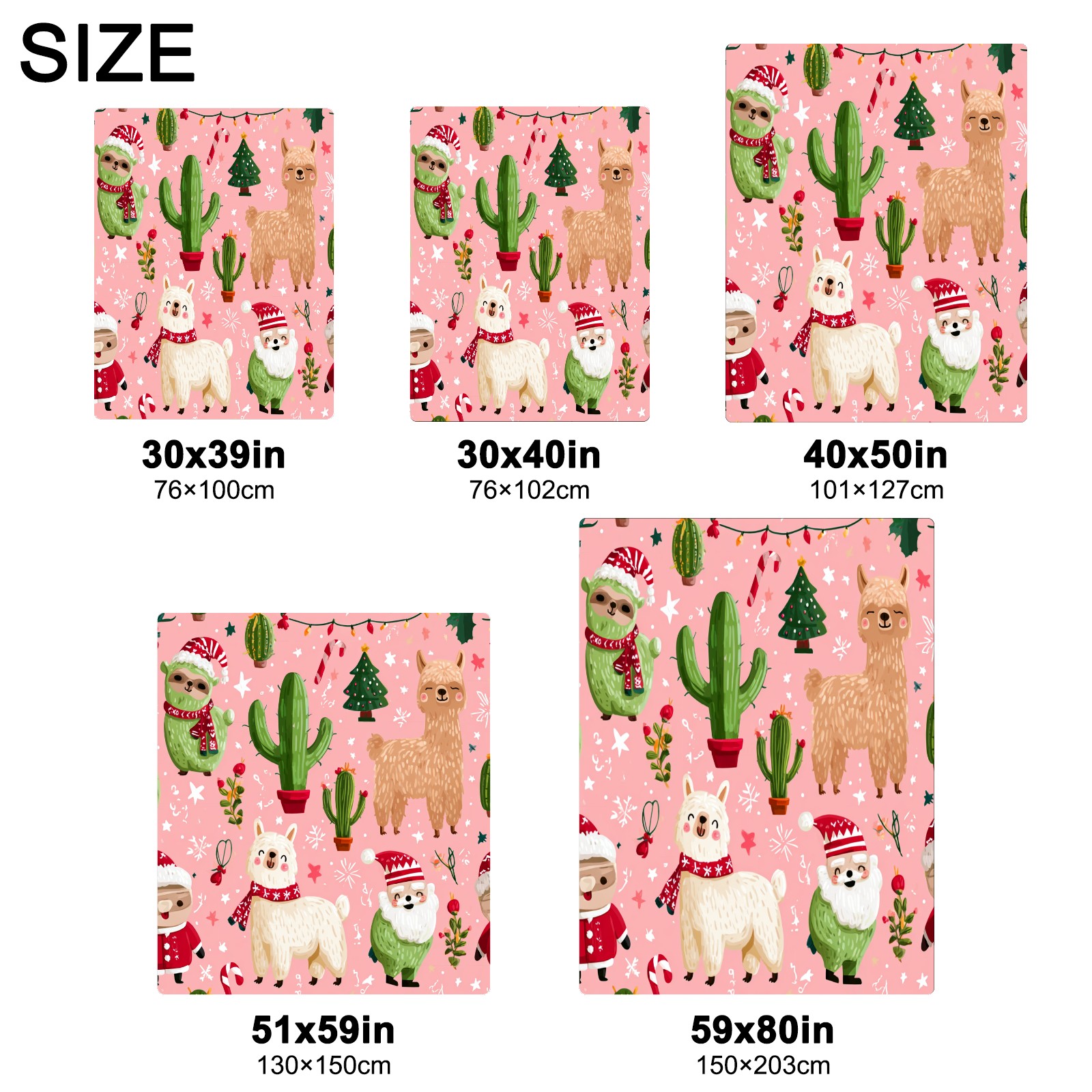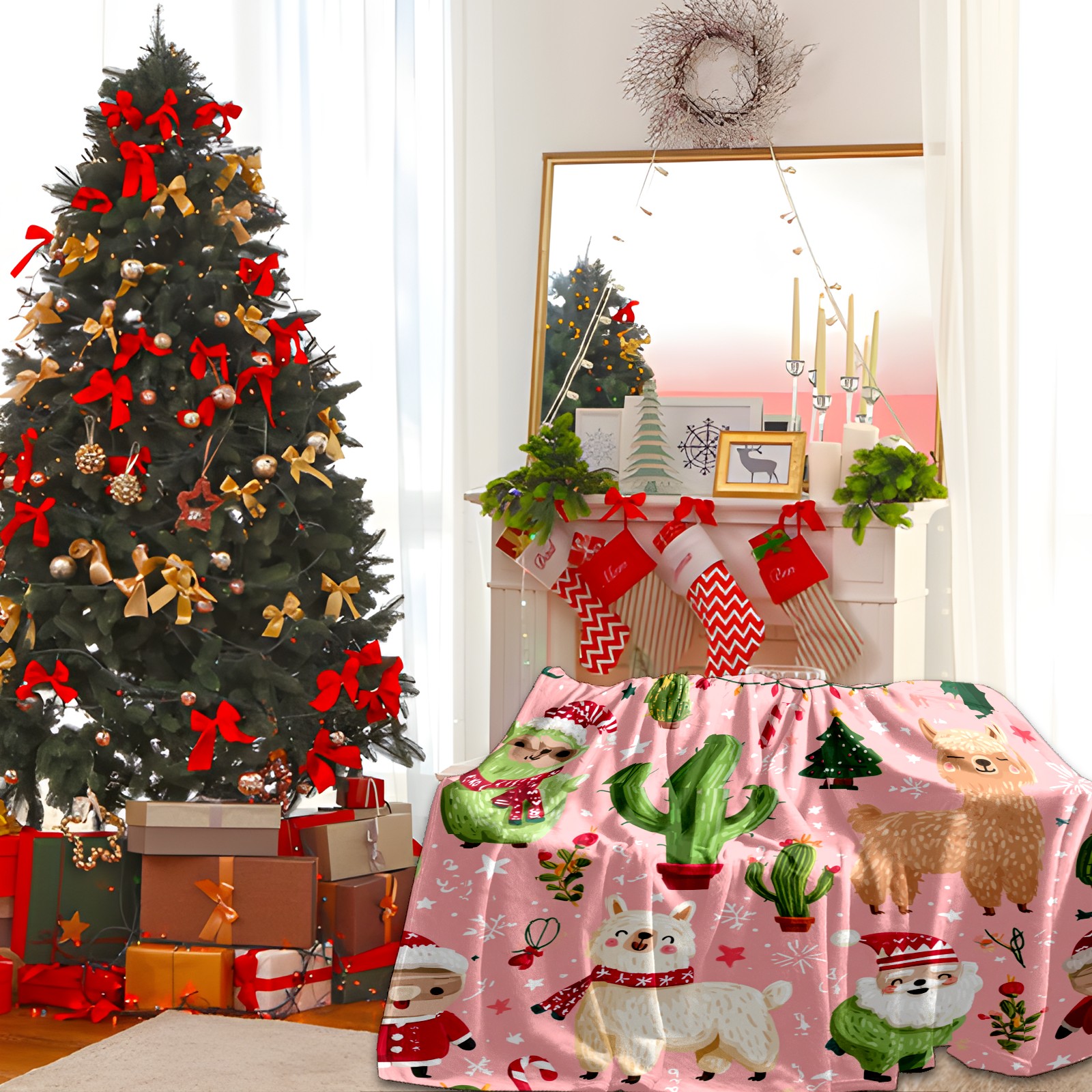 Премиальная фланелевая одеяло Christmas Llama Pink
