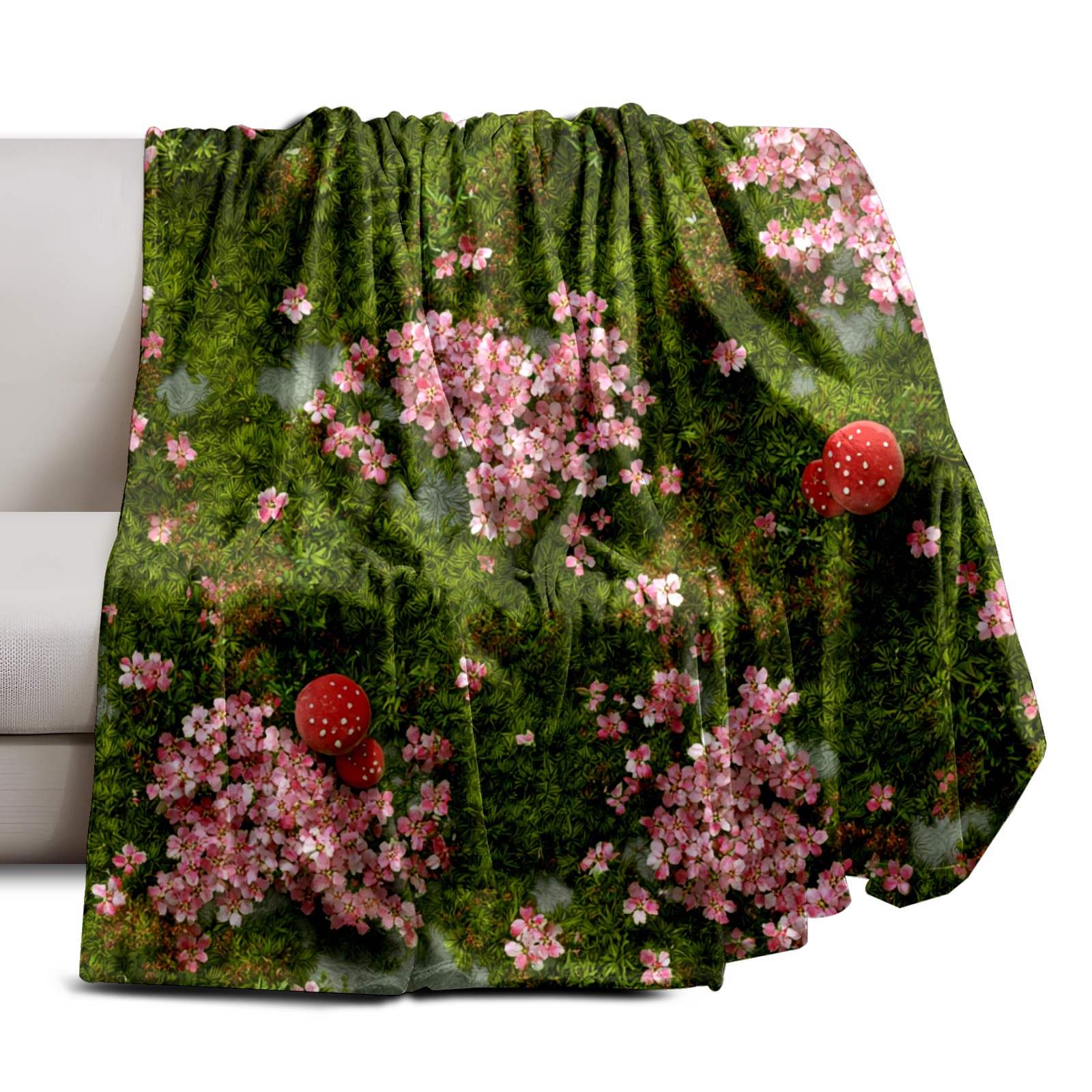 Премиальная фланелевая одеяло Strawberry Grass Green