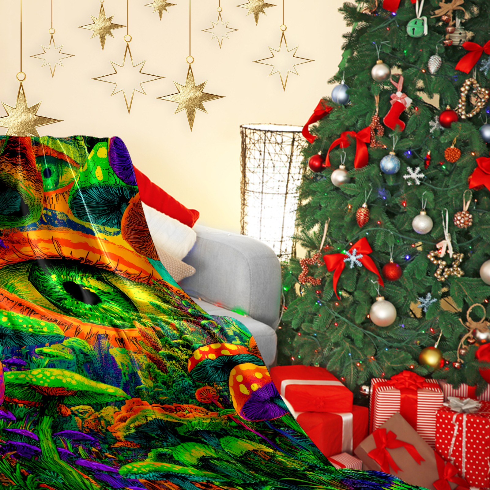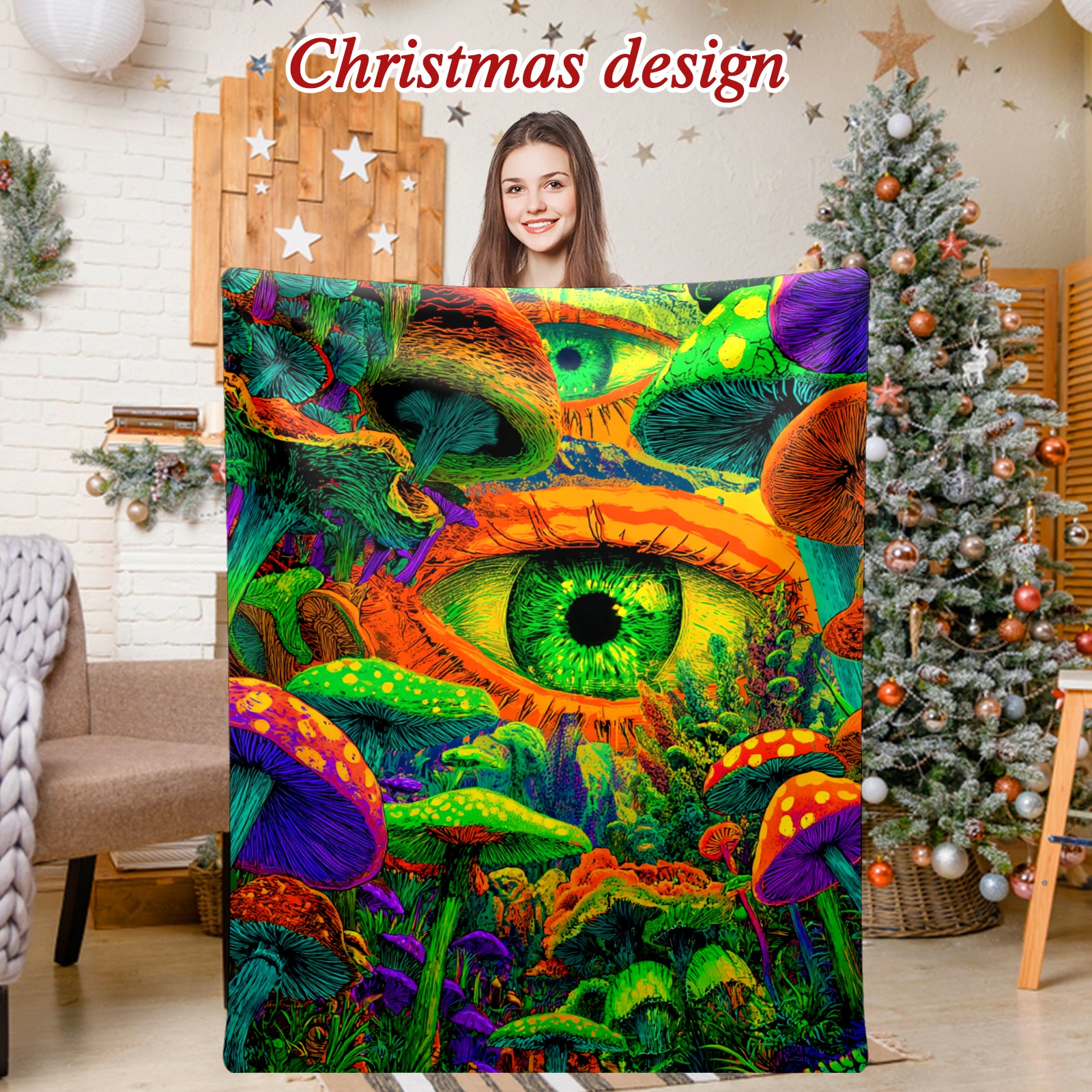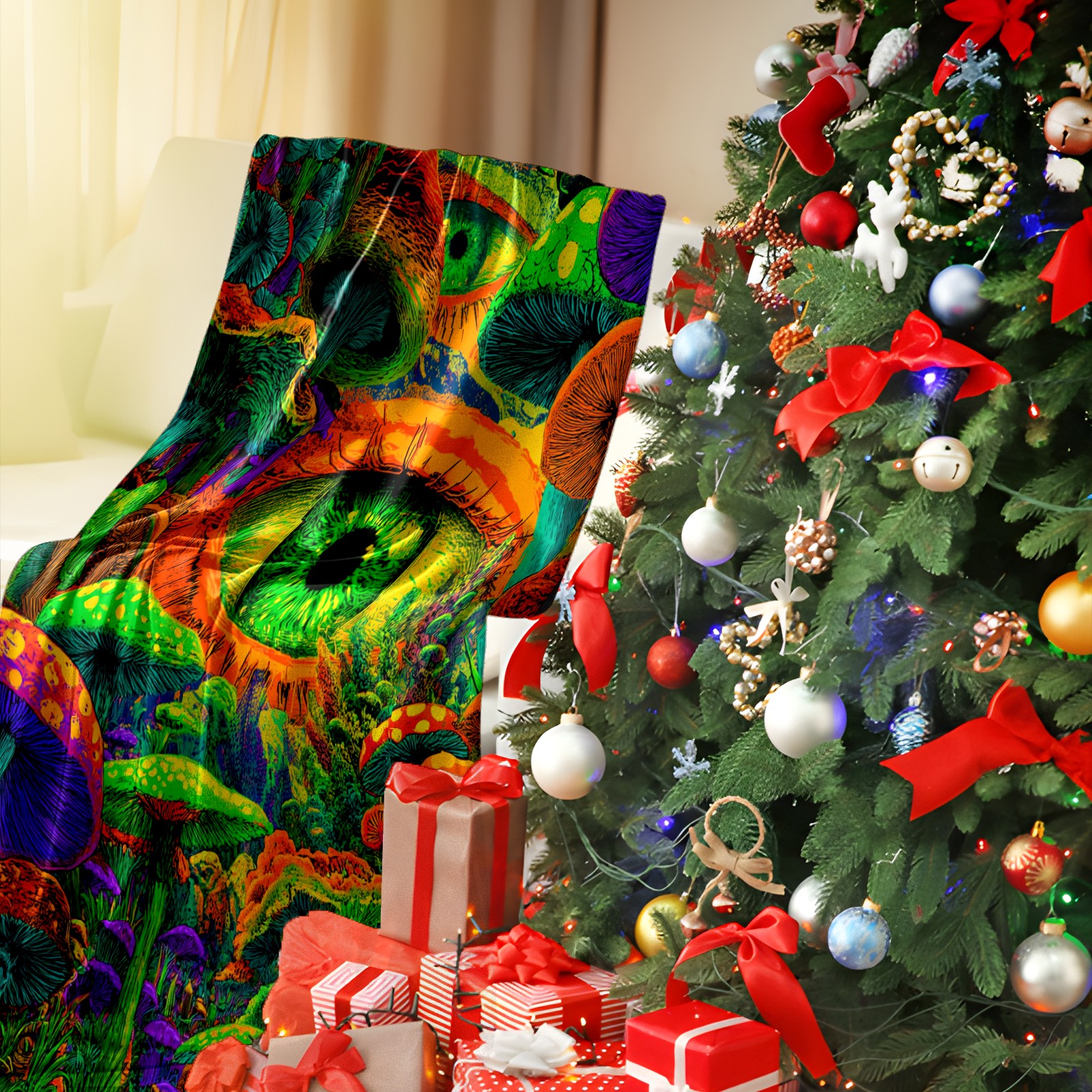 Премиальная фланелевая одеяло Eye Mushroom Multicolor