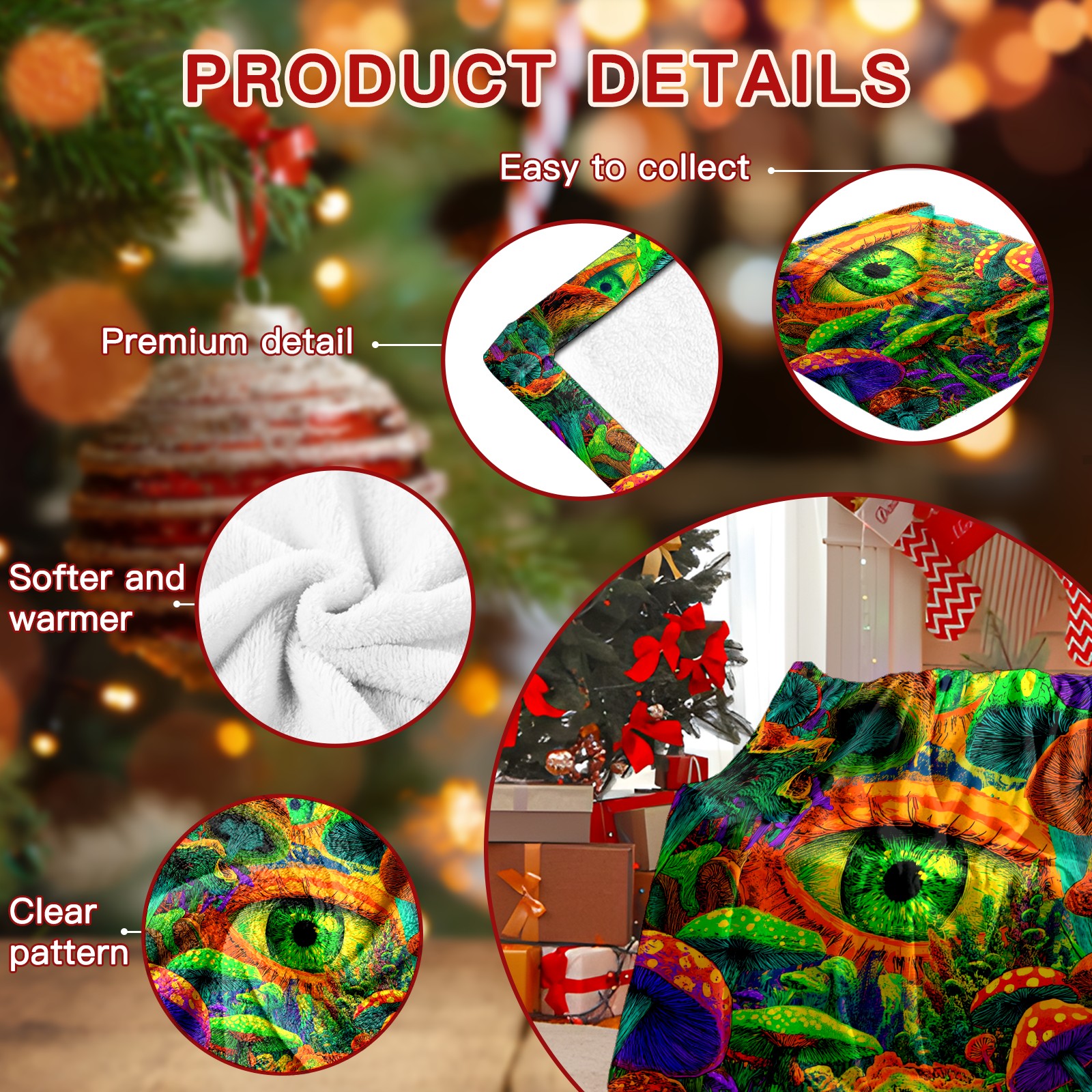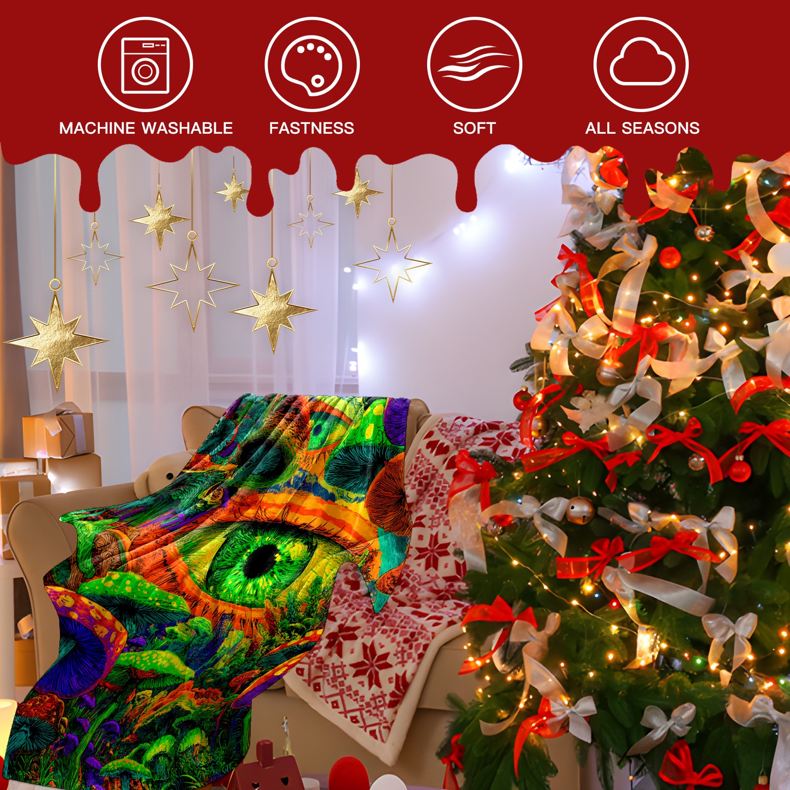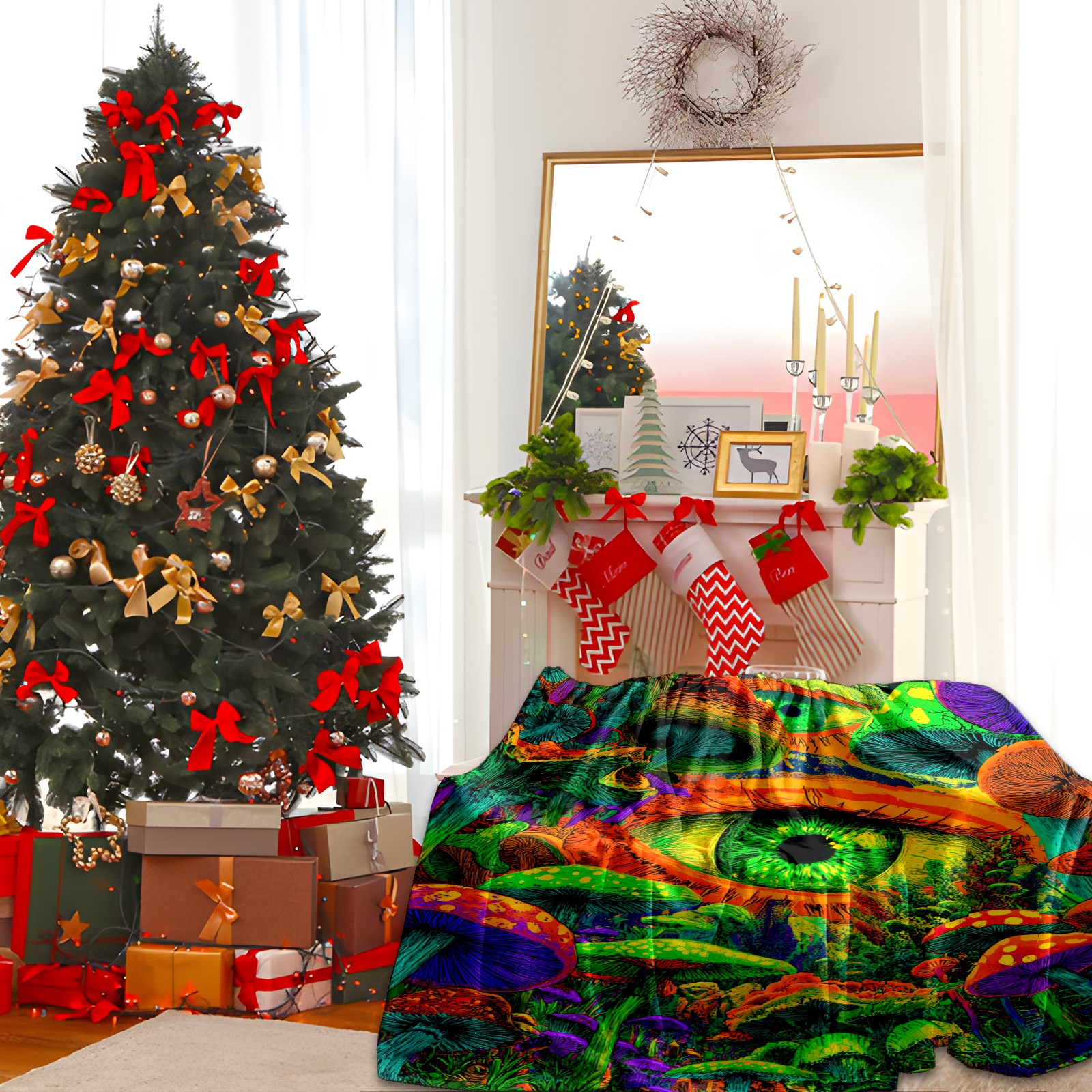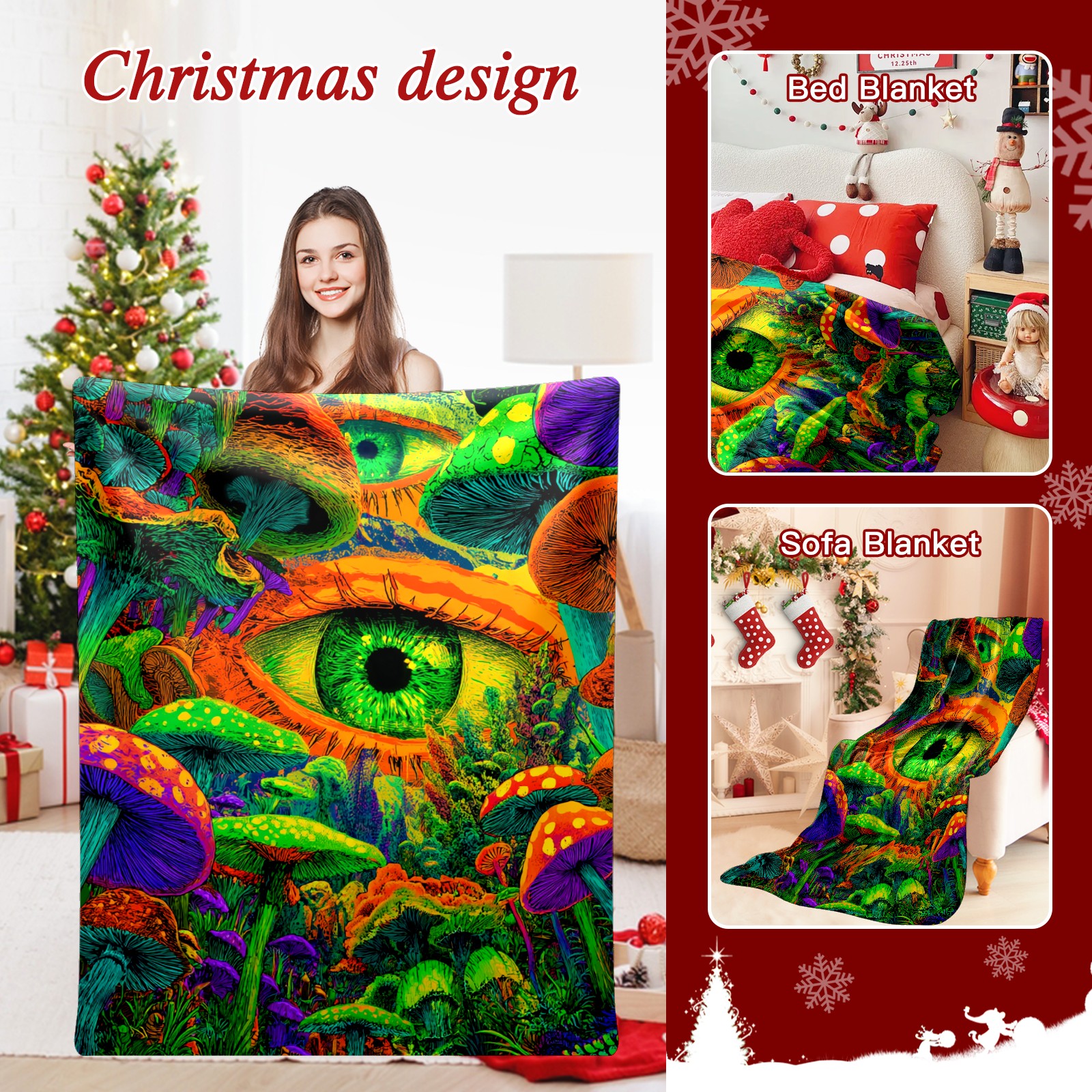 Премиальная фланелевая одеяло Eye Mushroom Multicolor