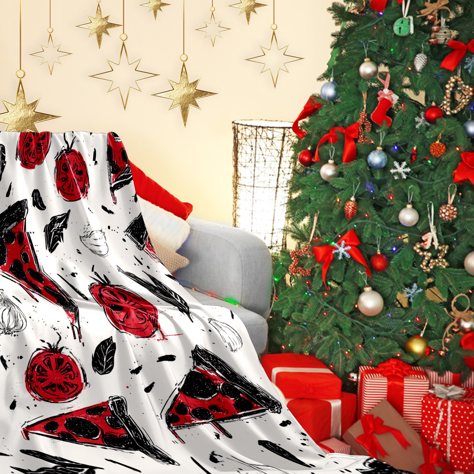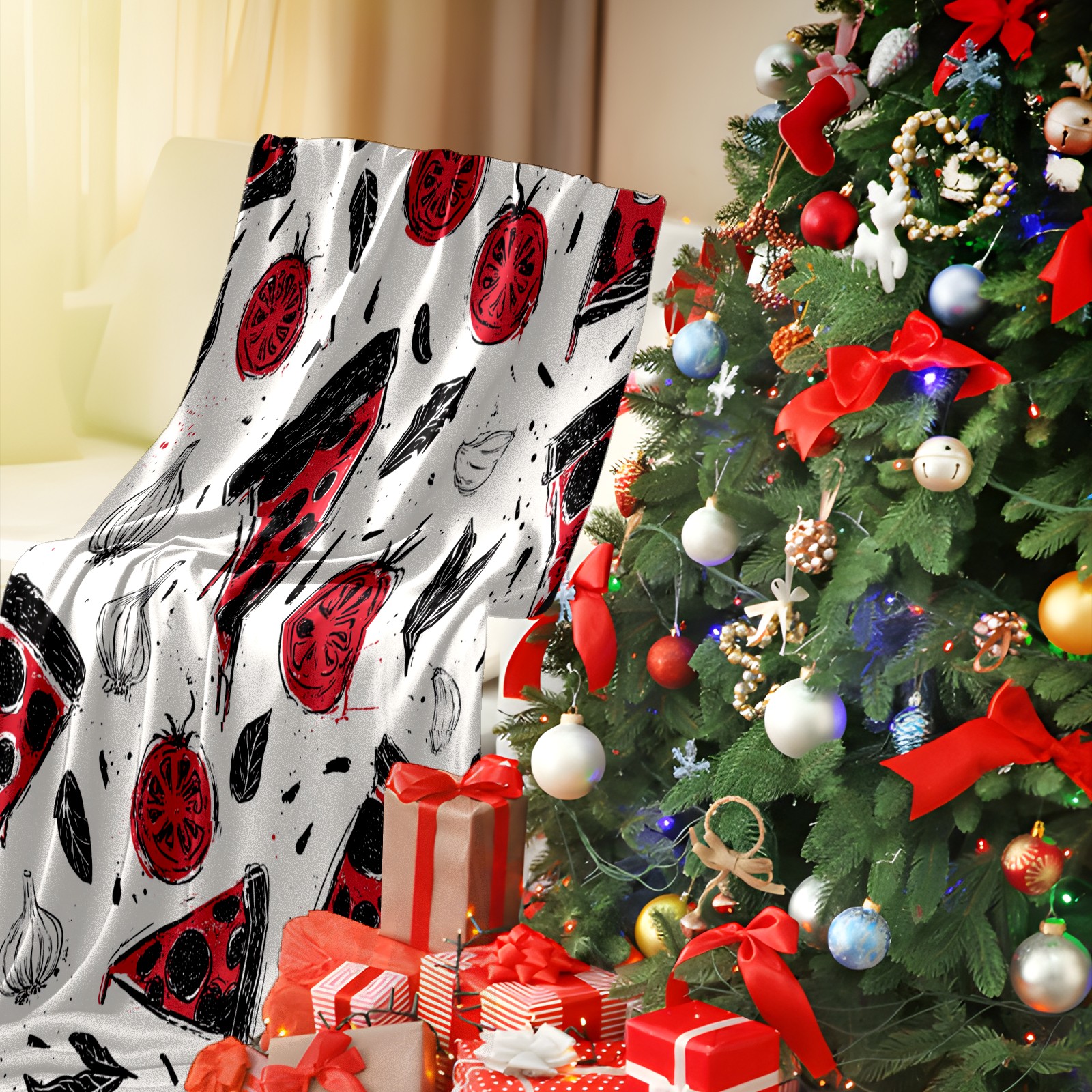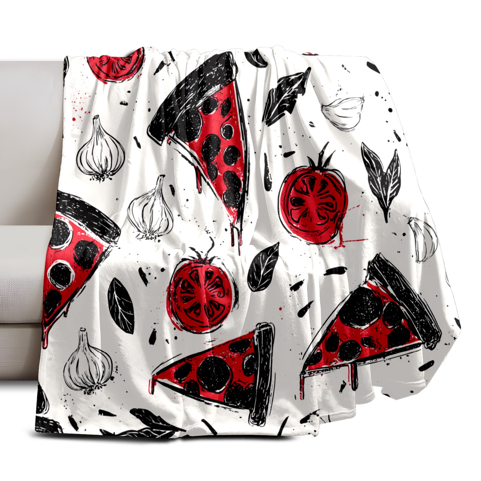 Премиальная фланелевая одеяло Pizza Veggies White