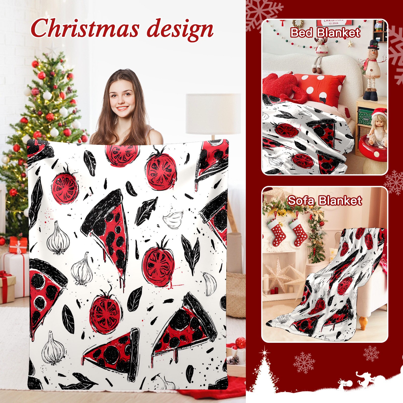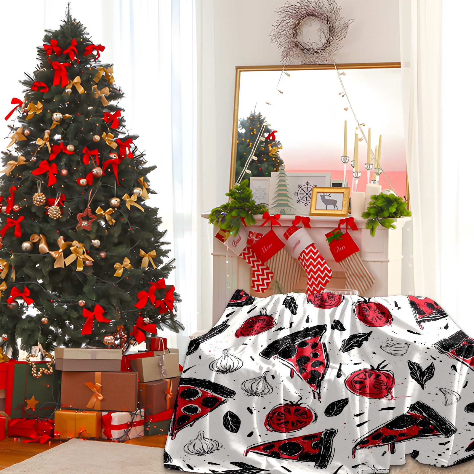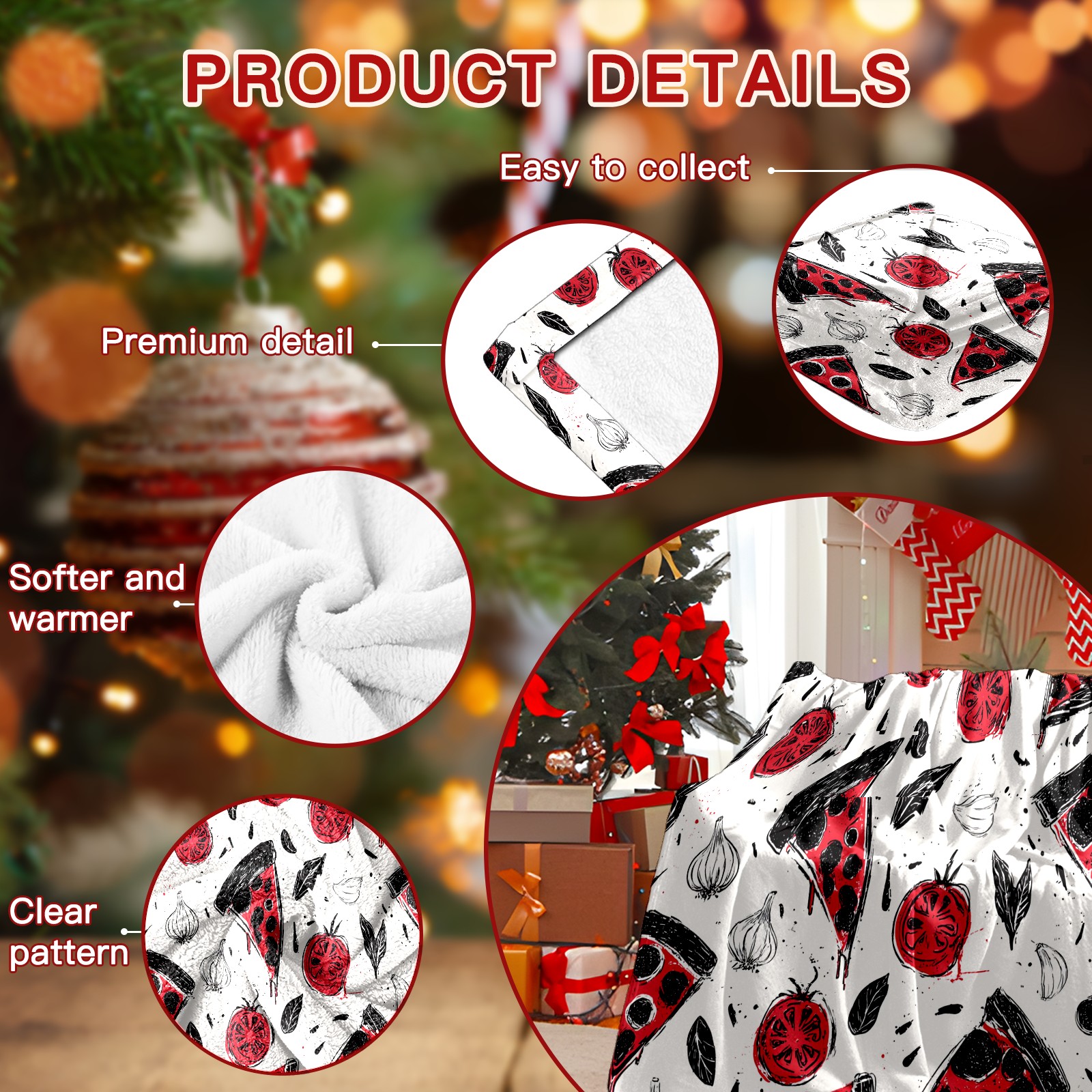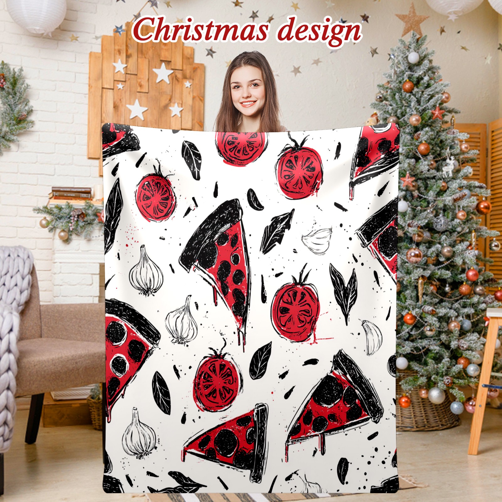 Премиальная фланелевая одеяло Pizza Veggies White