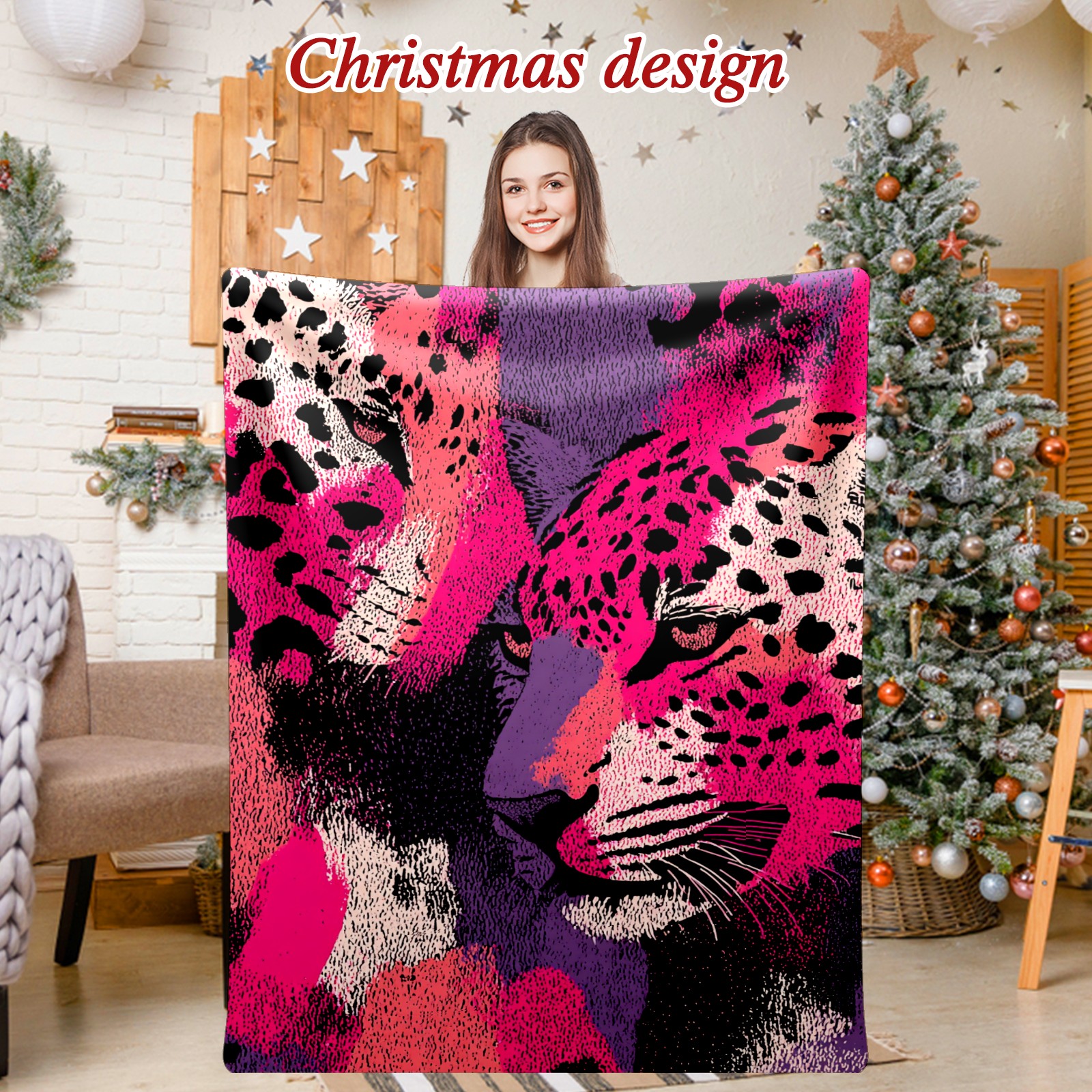 Премиальная фланелевая одеяло Leopard Print Pink