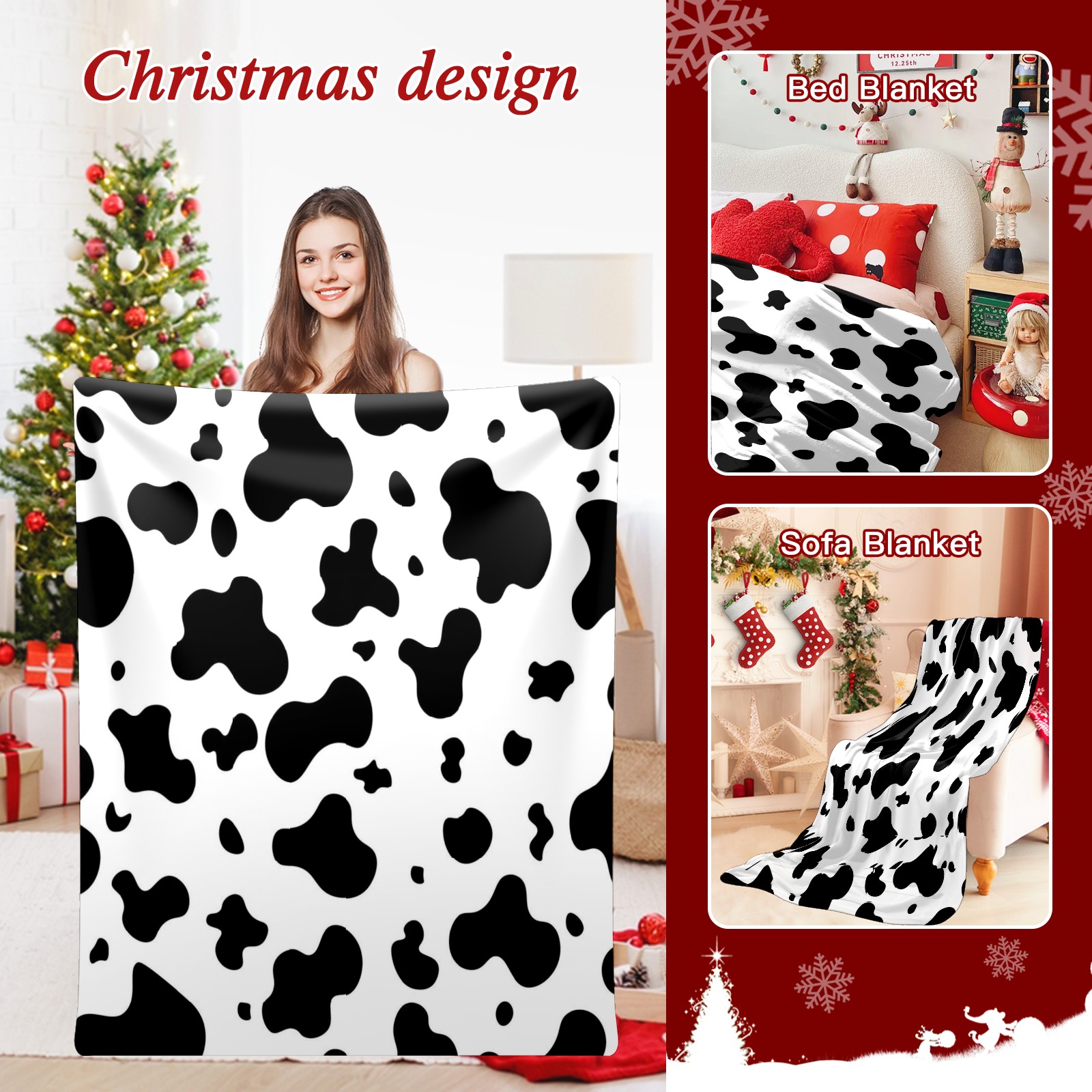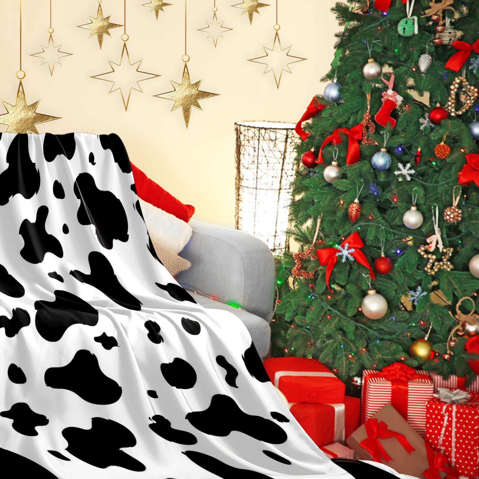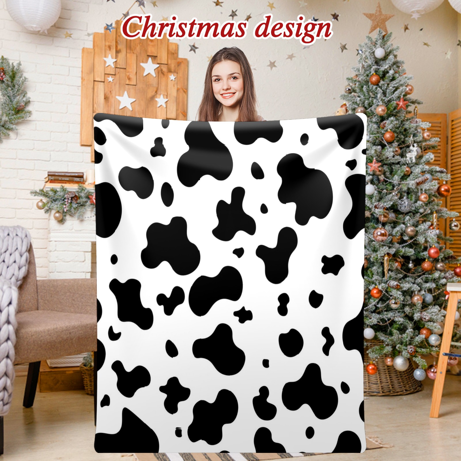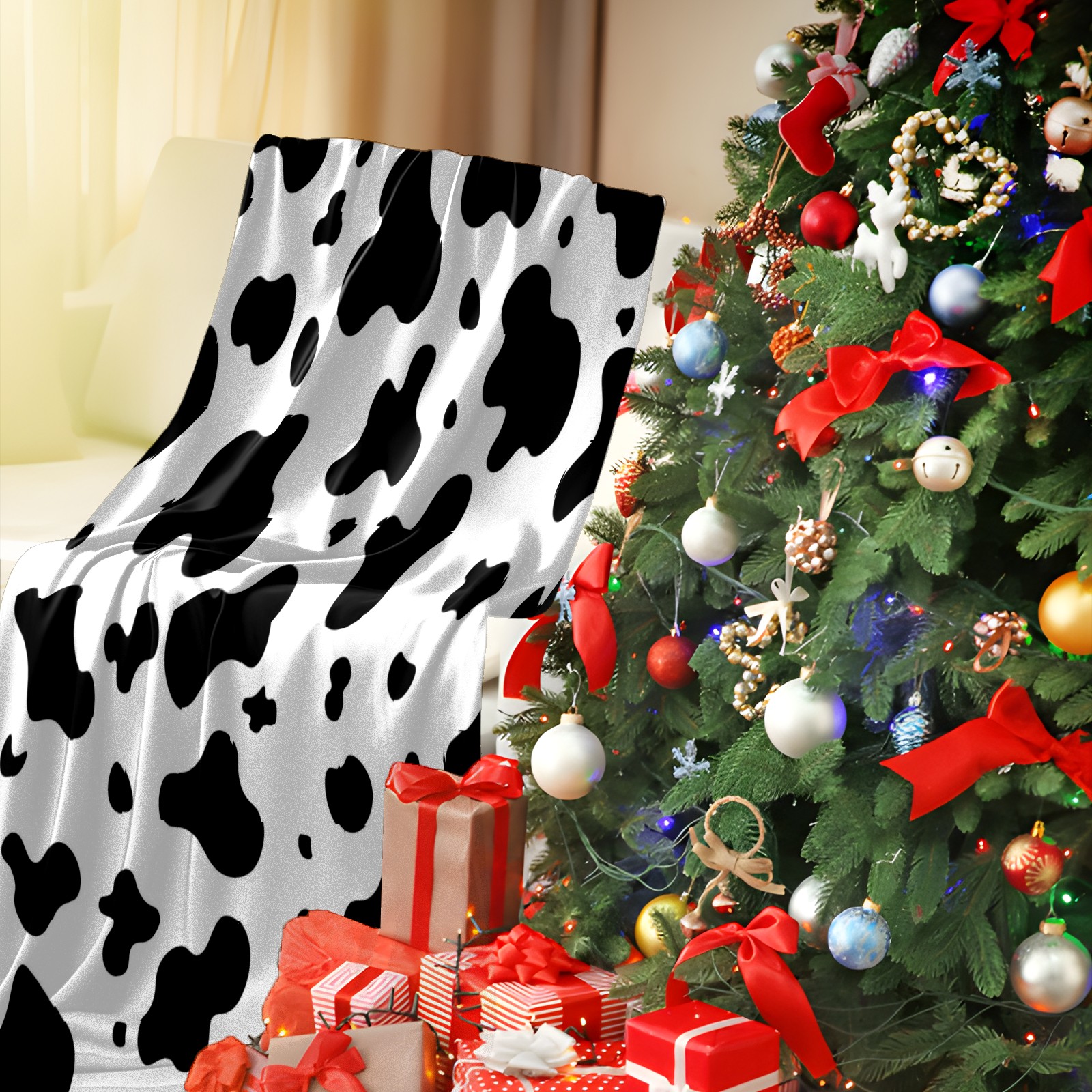 Премиальная фланелевая одеяло Black White Cow Animal