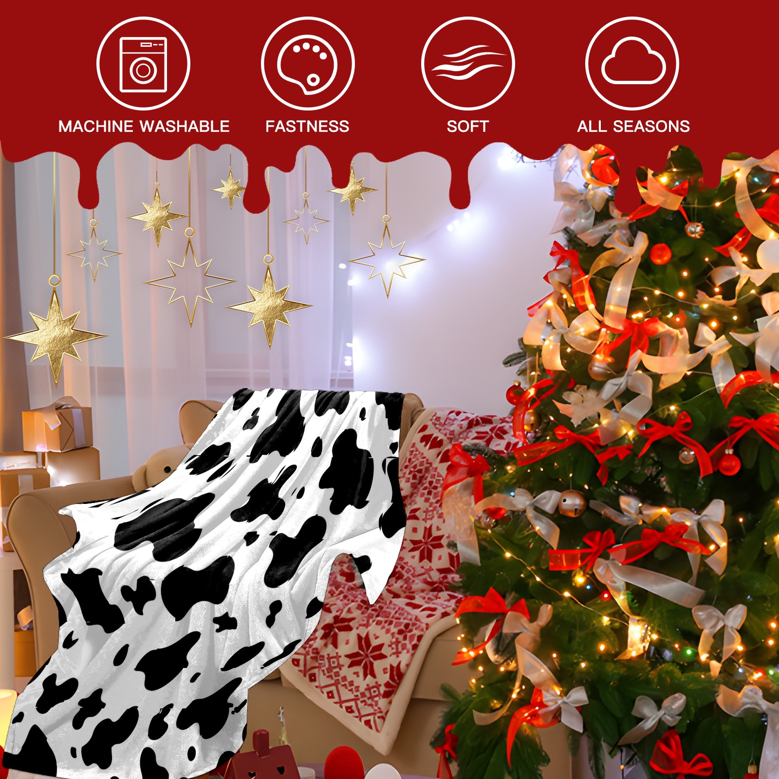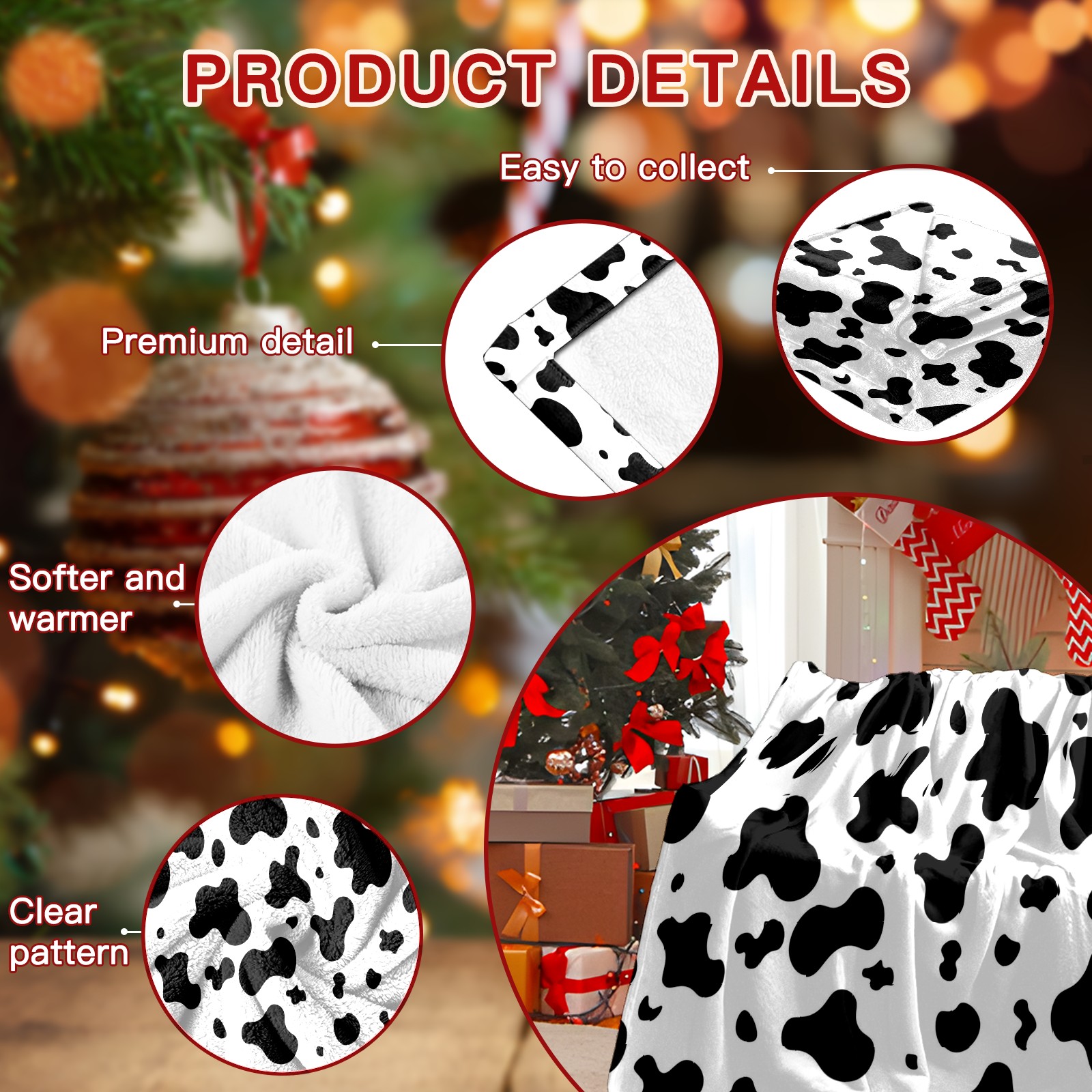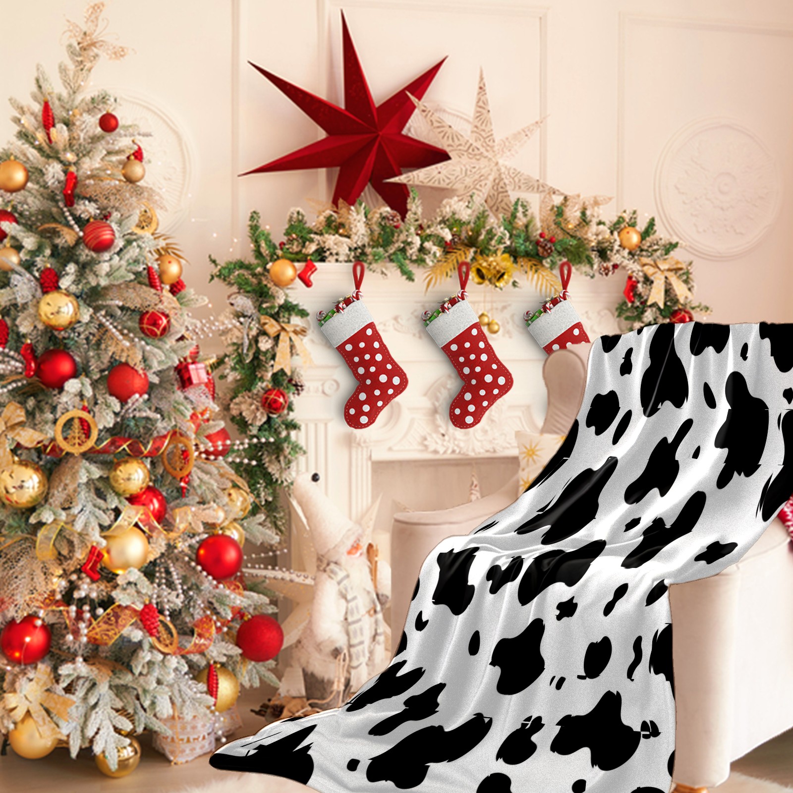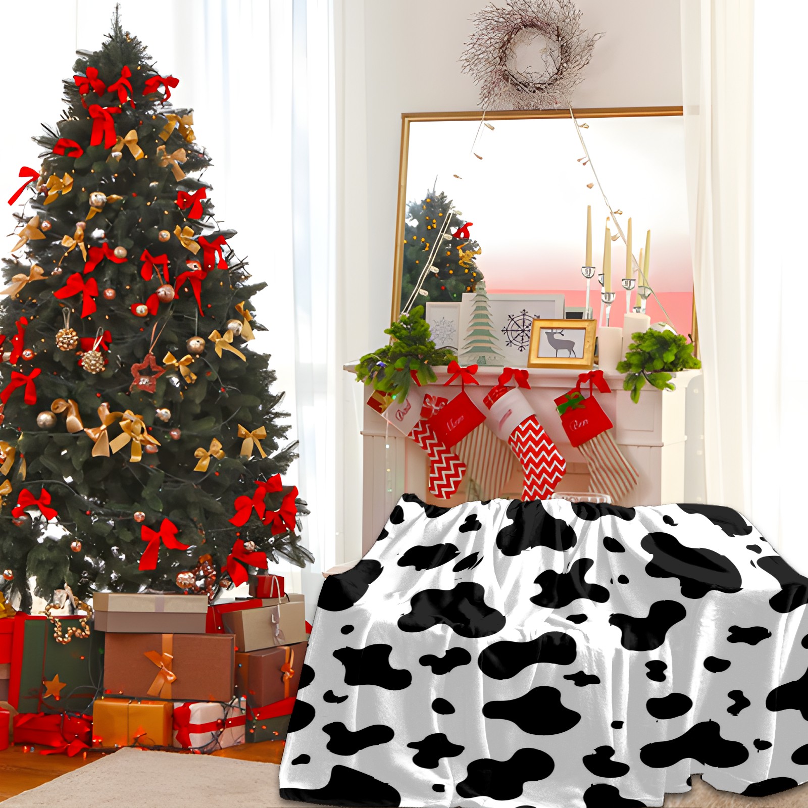 Премиальная фланелевая одеяло Black White Cow Animal