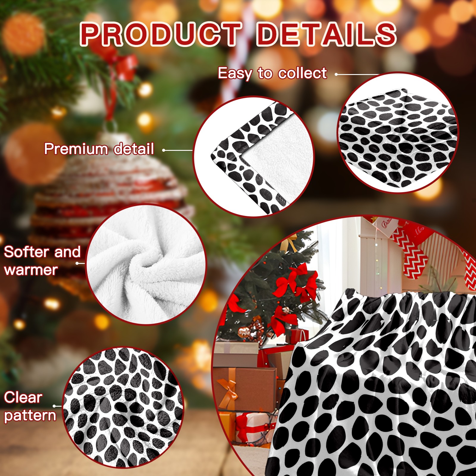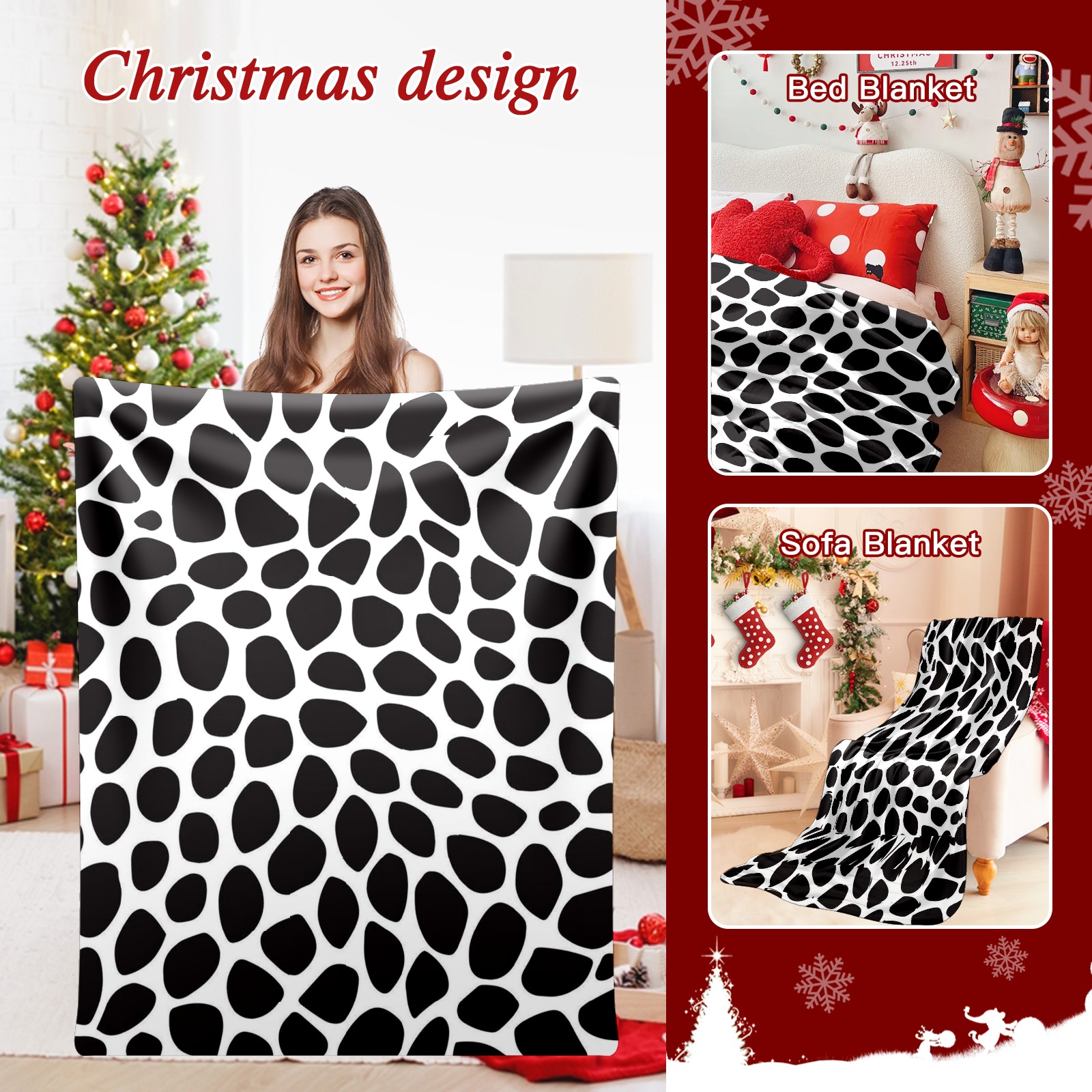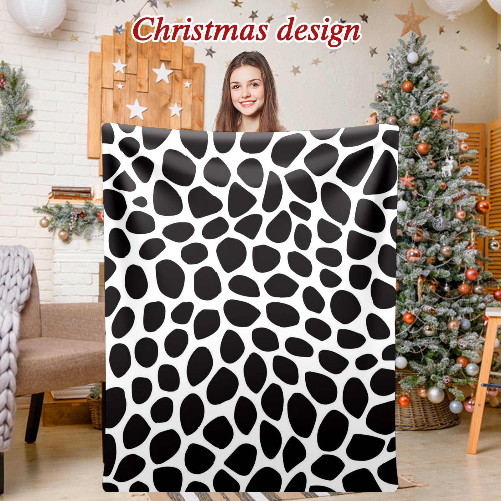 Премиальная фланелевая одеяло Black Spots Animals