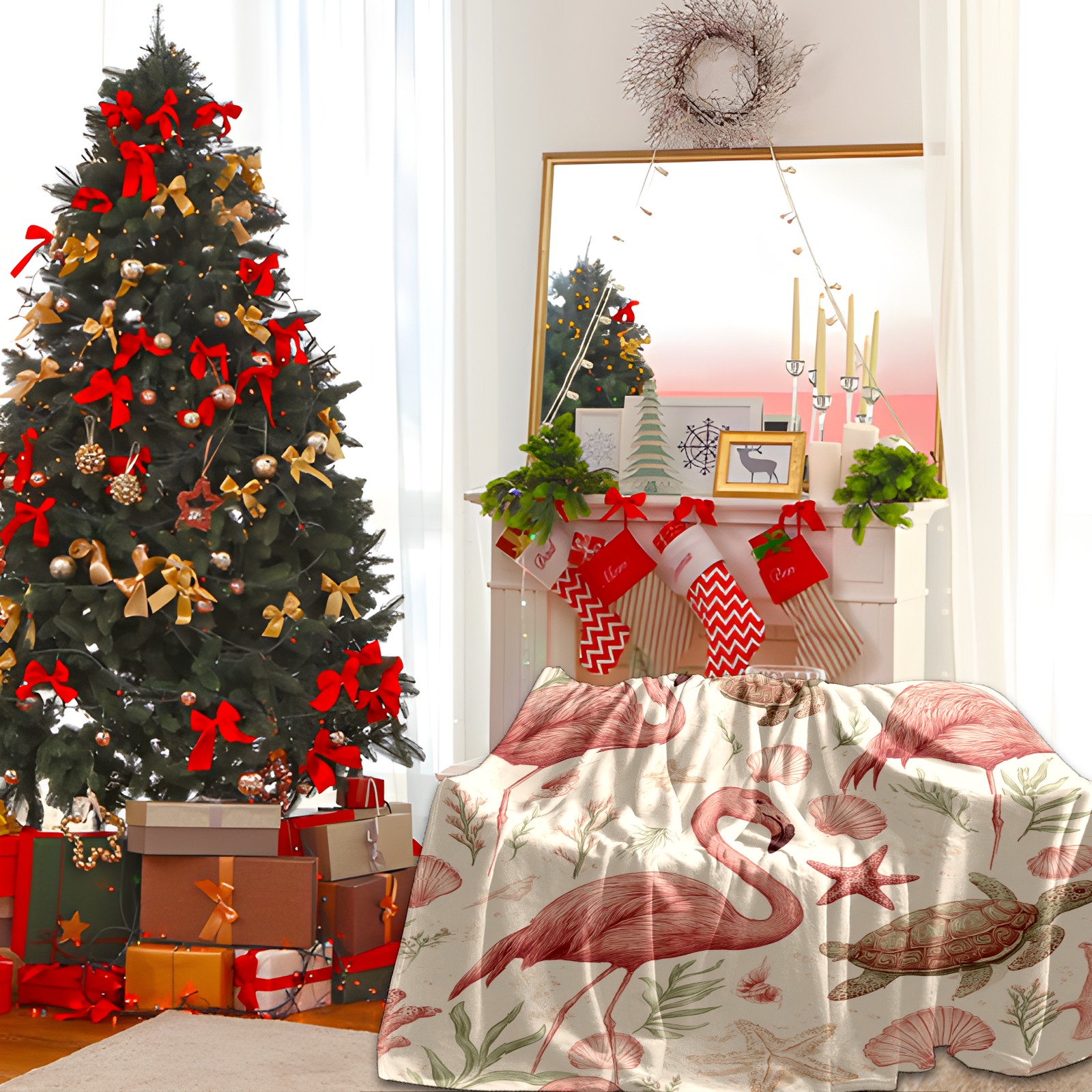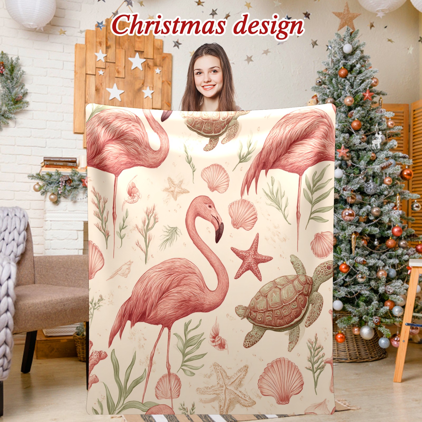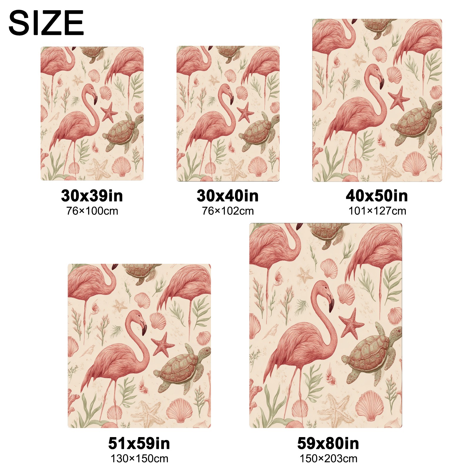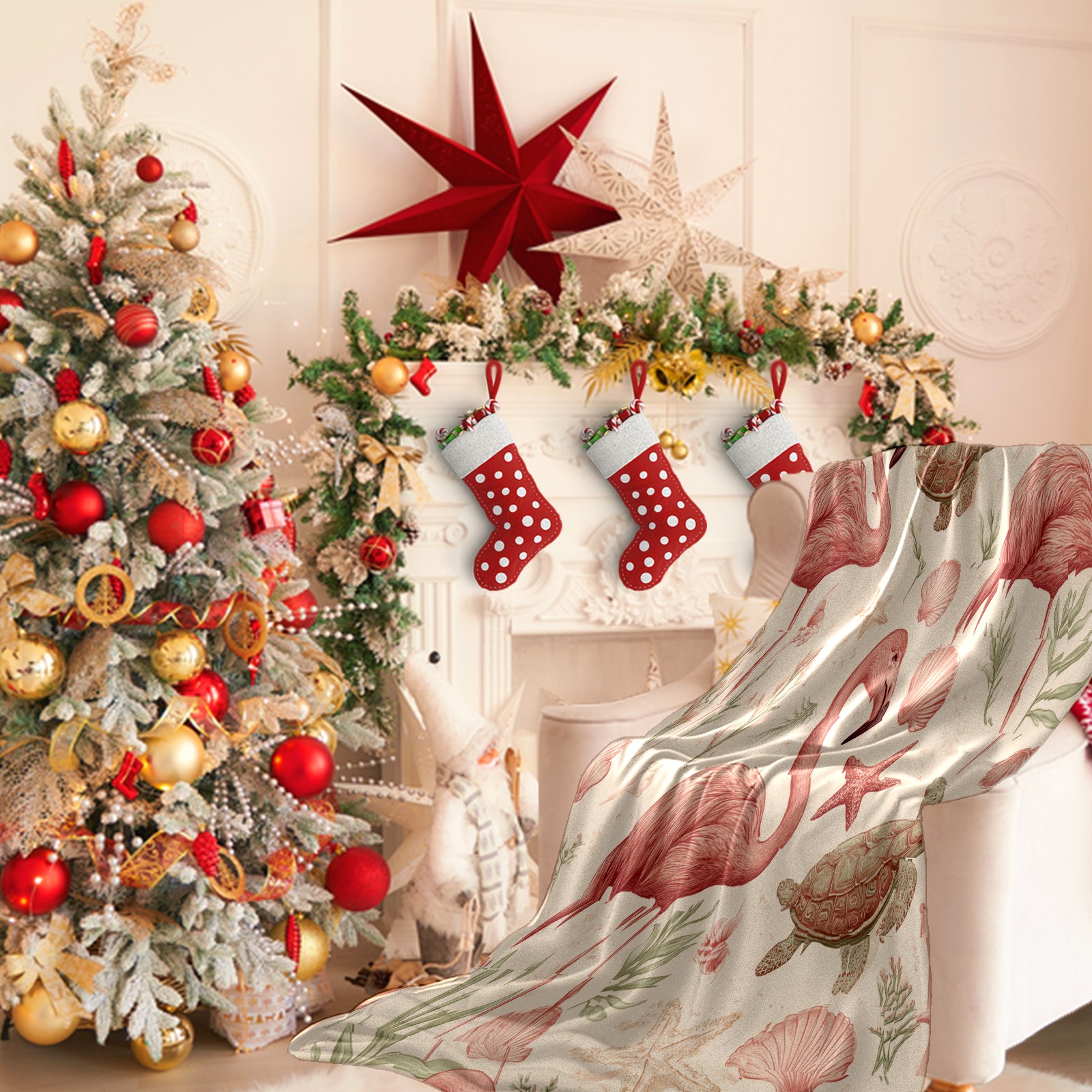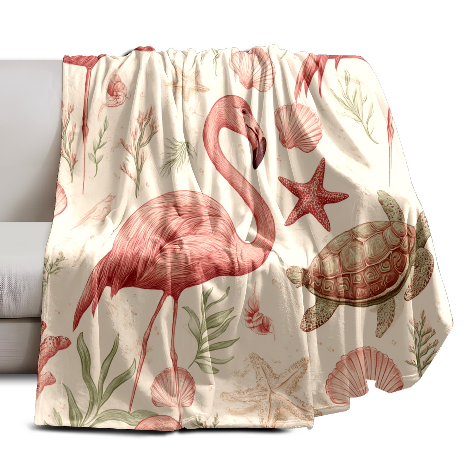 Премиальная фланелевая одеяло Flamingos Turtles Beige