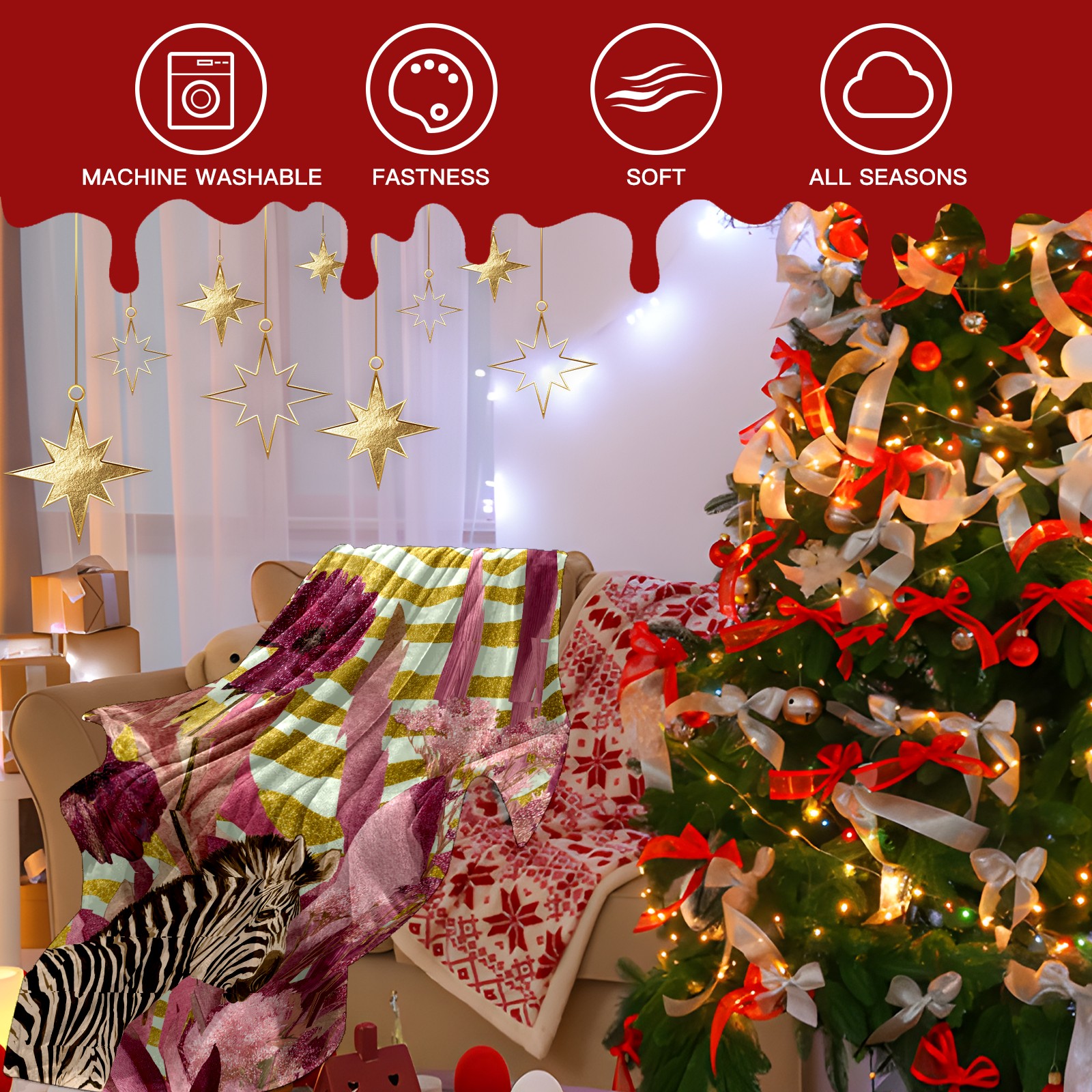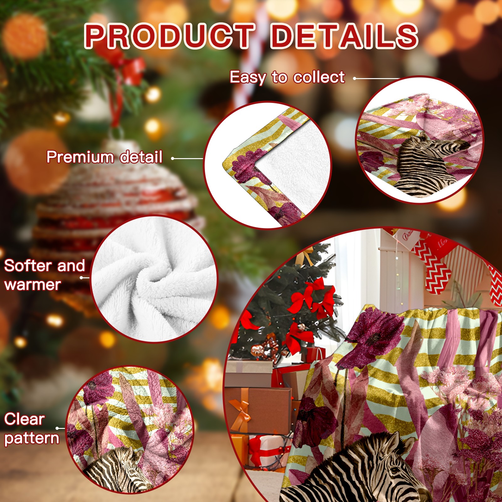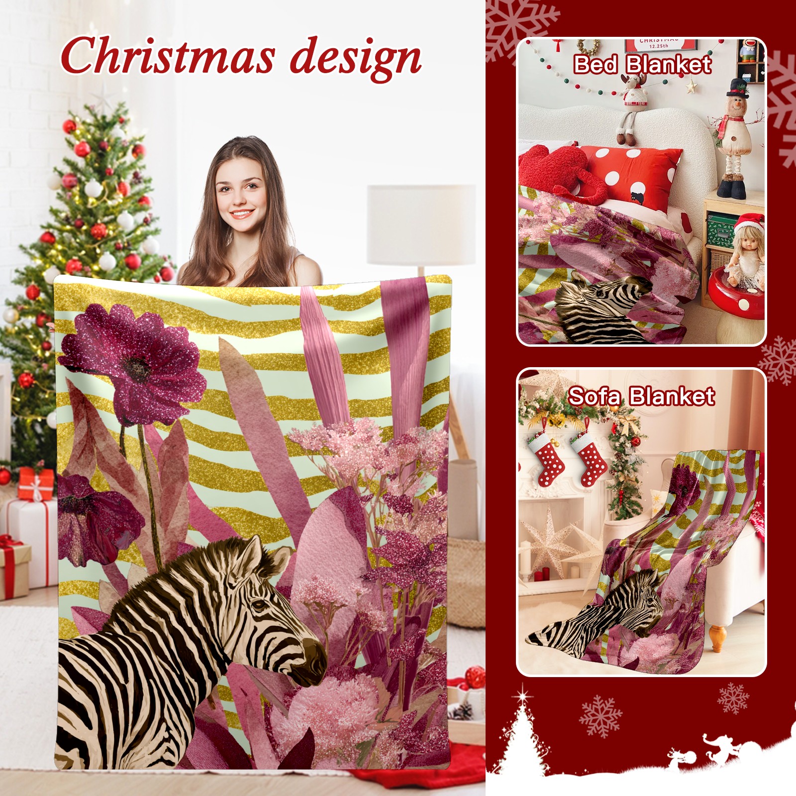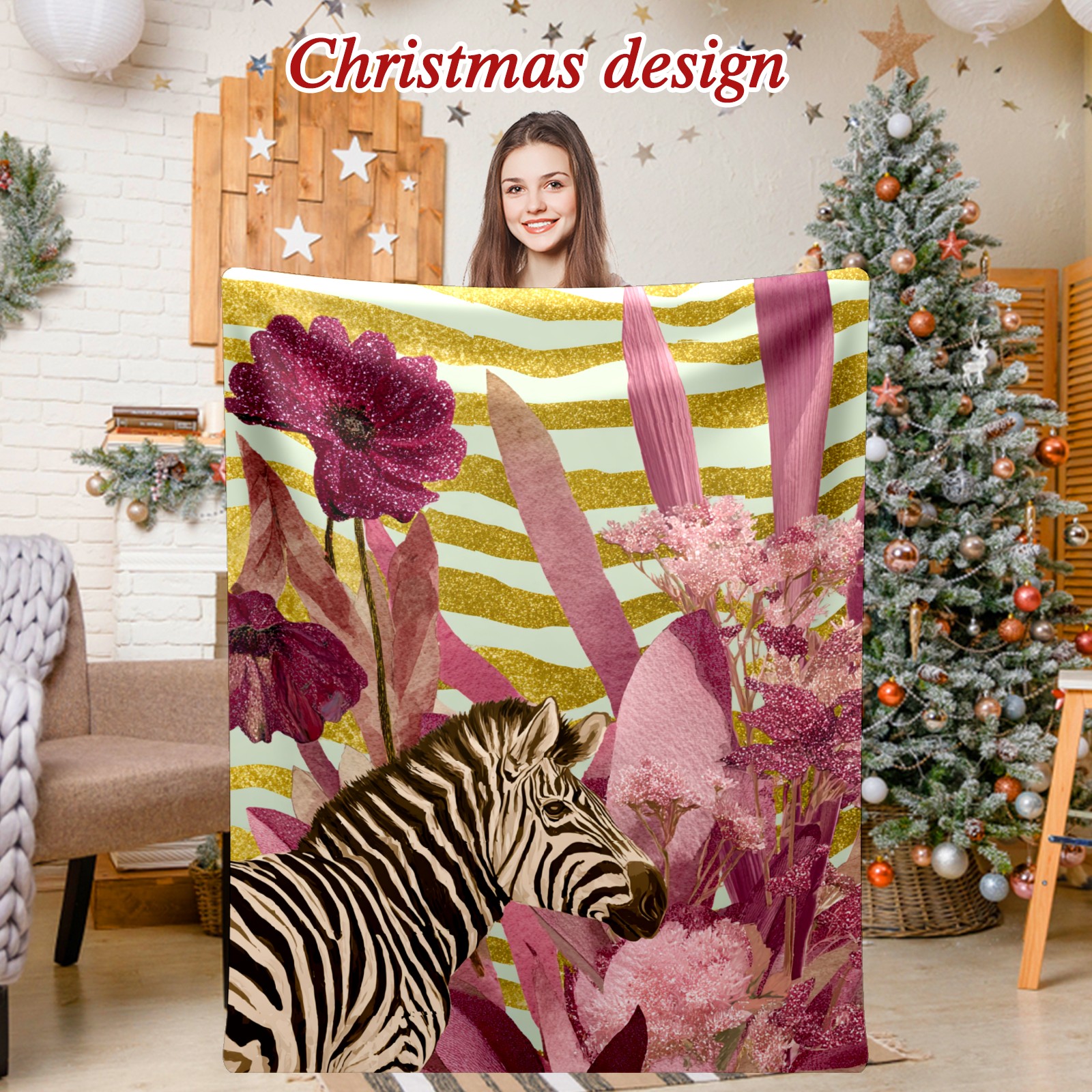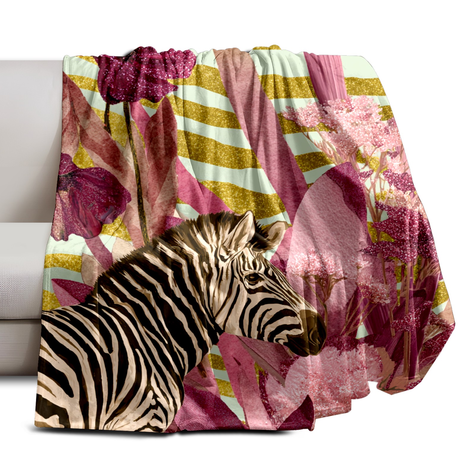 Премиальная фланелевая одеяло Zebra Floral Pink