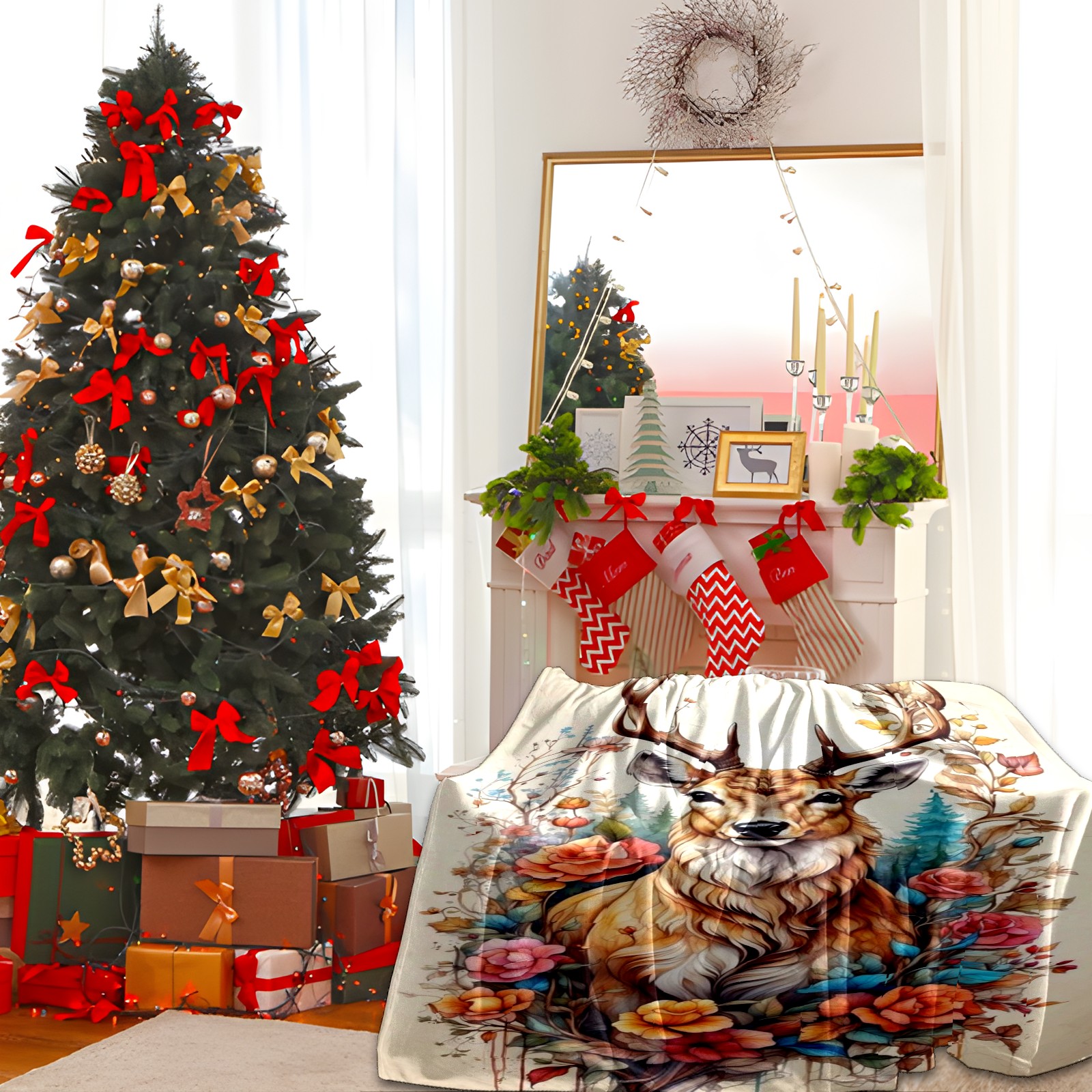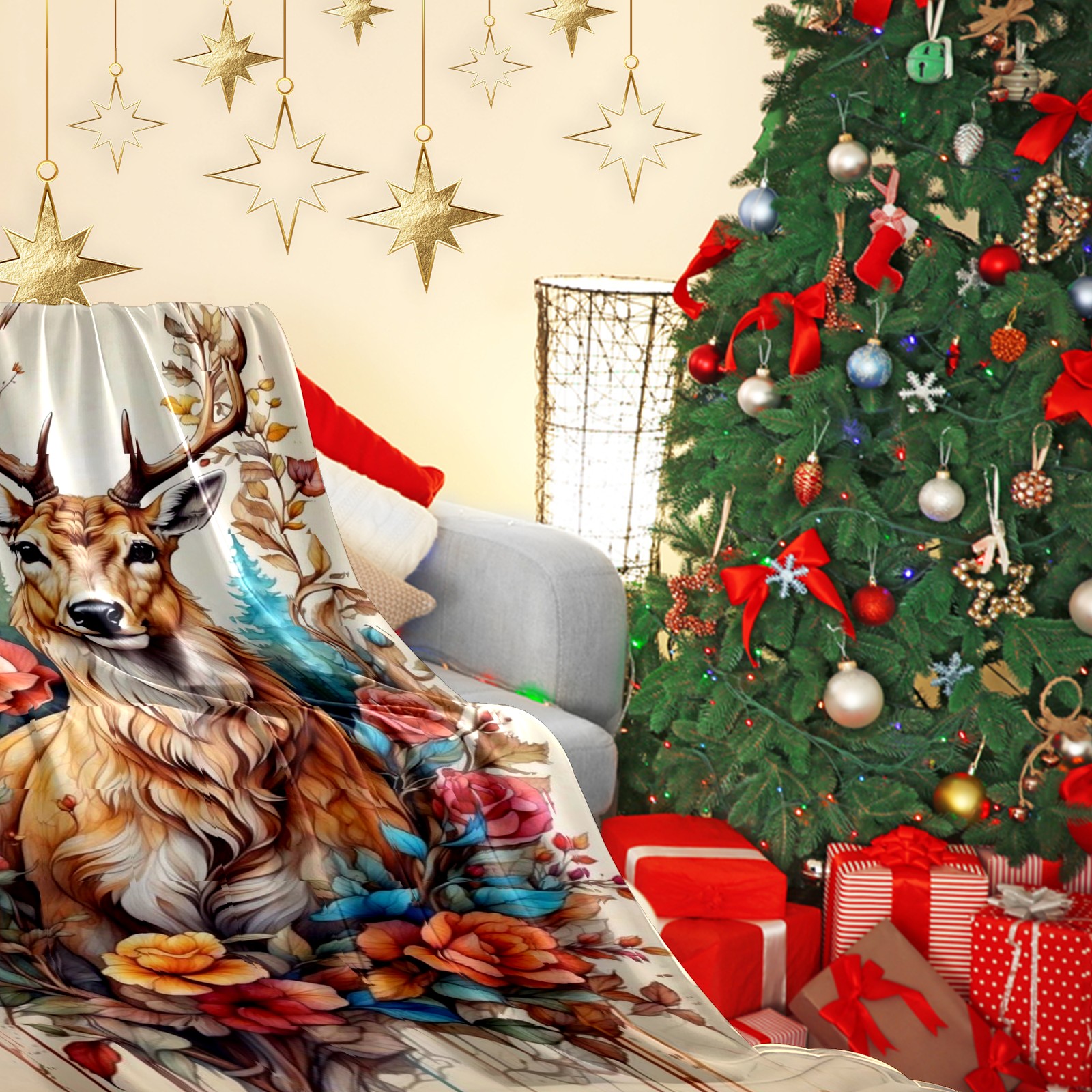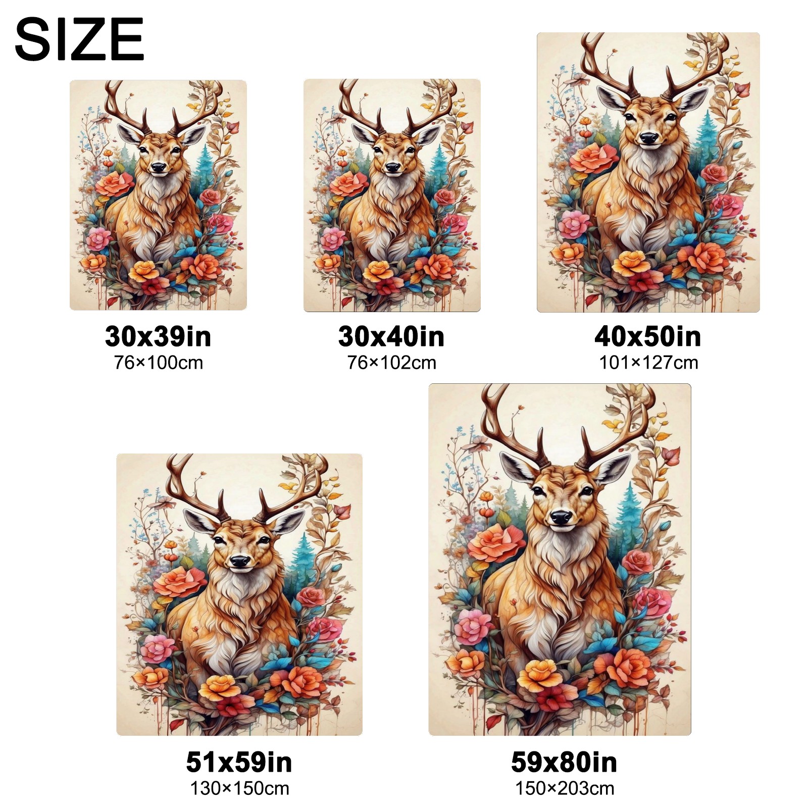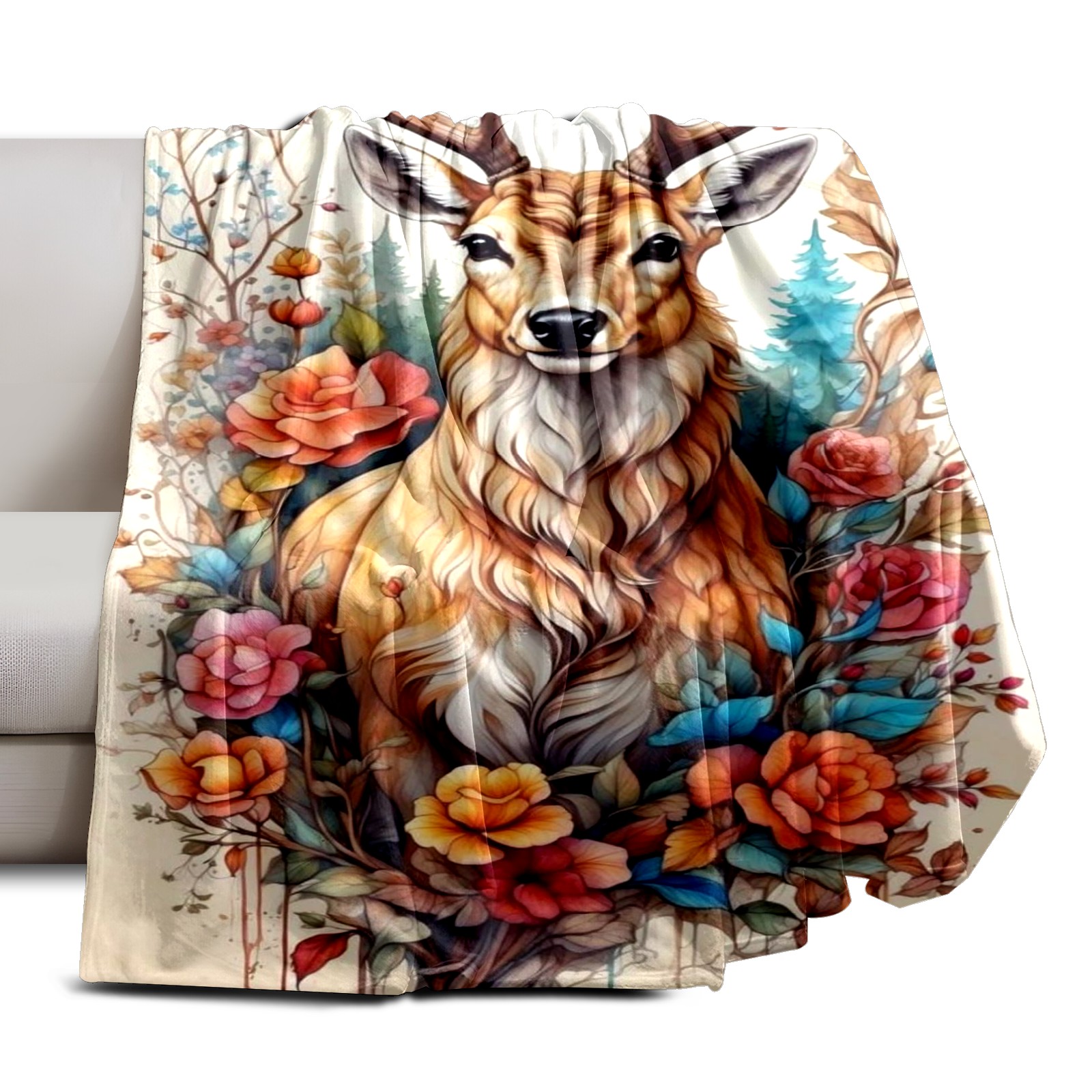 Премиальная фланелевая одеяло Colorful Flowers Deer